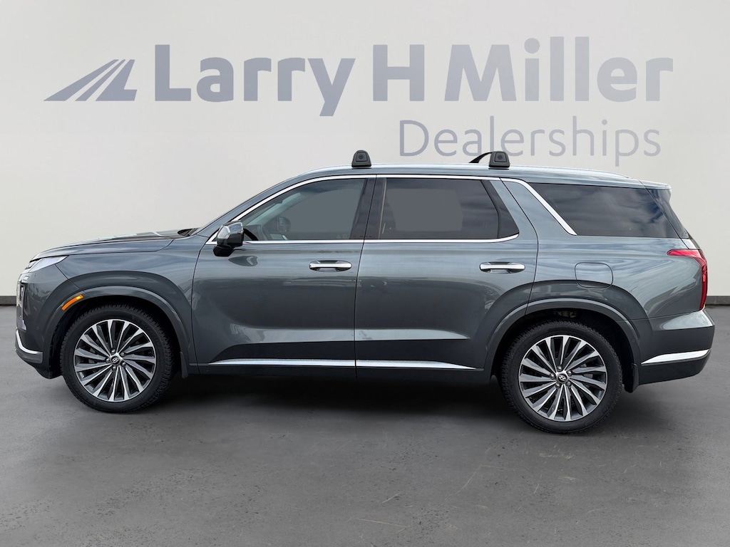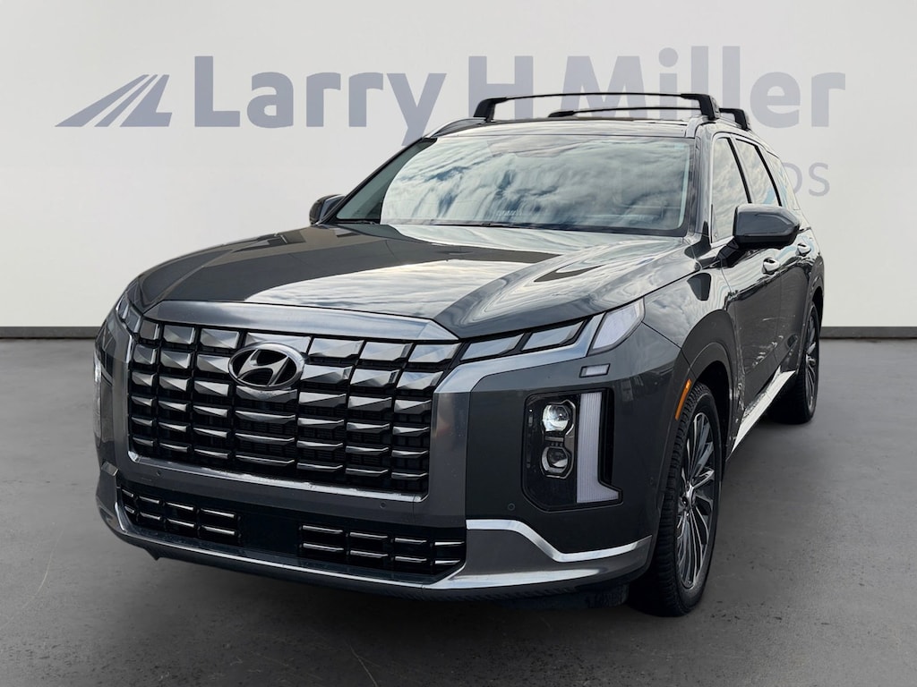 This 2024 Steel Graphite Hyundai Palisade Calligraphy FWD is well equipped and includes these features and benefits: Option Group 01, 12 Speakers, 3.510 Axle Ratio, 3rd row seats: split-bench, 4-Wheel Disc Brakes, ABS brakes, Air Conditioning, Alloy wheels, AM/FM radio: SiriusXM, Apple CarPlay & Android Auto, Auto High-beam Headlights, Auto-dimming door mirrors, Auto-dimming Rear-View mirror, Auto-leveling suspension, Automatic temperature control, Brake assist, Bumpers: body-color, Cargo Cover/Screen, Cargo Net, Cargo Tray, Carpeted Floor Mats, Compass, Delay-off headlights, Driver door bin, Driver vanity mirror, Dual front impact airbags, Dual front side impact airbags, Electronic Stability Control, Emergency communication system, Exterior Parking Camera Rear, Four wheel independent suspension, Front anti-roll bar, Front Bucket Seats, Front Center Armrest, Front dual zone A/C, Front reading lights, Fully automatic headlights, Garage door transmitter: HomeLink, harman/kardon® Speakers, Heads-Up Display, Heated & Ventilated Front Bucket Seats, Heated door mirrors, Heated front seats, Heated rear seats, Heated steering wheel, Illuminated entry, Knee airbag, Low tire pressure warning, Memory seat, Mudguards, Navigation System, Occupant sensing airbag, Outside temperature display, Overhead airbag, Overhead console, Panic alarm, Passenger door bin, Passenger vanity mirror, Power door mirrors, Power driver seat, Power Liftgate, Power moonroof, Power passenger seat, Power steering, Power windows, Premium Nappa Leather Seat Trim, Radio data system, Radio: AM/FM/MP3 Premium Audio System, Rain sensing wipers, Rear air conditioning, Rear anti-roll bar, Rear audio controls, Rear reading lights, Rear side impact airbag, Rear window defroster, Rear window wiper, Reclining 3rd row seat, Remote keyless entry, Security system, Speed control, Speed-sensing steering, Split folding rear seat, Spoiler, Steering wheel mounted audio controls, Tachometer, Telescoping steering wheel, Tilt steering wheel, Traction control, Trip computer, Turn signal indicator mirrors, Variably intermittent wipers, Ventilated front seats, Ventilated rear seats, Wheel Locks, and Wheels: 20 x 7.5J Calligraphy Exclusive Alloy. 12 Speakers, 3.510 Axle Ratio, 3rd row seats: split-bench, 4-Wheel Disc Brakes, ABS brakes, Air Conditioning, Alloy wheels, AM/FM radio: SiriusXM, Apple CarPlay & Android Auto, Auto High-beam Headlights, Auto-dimming door mirrors, Auto-dimming Rear-View mirror, Auto-leveling suspension, Automatic temperature control, Brake assist, Bumpers: body-color, Cargo Cover/Screen, Cargo Net, Cargo Tray, Carpeted Floor Mats, Compass, Delay-off headlights, Driver door bin, Driver vanity mirror, Dual front impact airbags, Dual front side impact airbags, Electronic Stability Control, Emergency communication system, Exterior Parking Camera Rear, Four wheel independent suspension, Front anti-roll bar, Front Bucket Seats, Front Center Armrest, Front dual zone A/C, Front reading lights, Fully automatic headlights, Garage door transmitter: HomeLink, harman/kardon® Speakers, Heads-Up Display, Heated & Ventilated Front Bucket Seats, Heated door mirrors, Heated front seats, Heated rear seats, Heated steering wheel, Illuminated entry, Knee airbag, Low tire pressure warning, Memory seat, Mudguards, Navigation System, Occupant sensing airbag, Option Group 01, Outside temperature display, Overhead airbag, Overhead console, Panic alarm, Passenger door bin, Passenger vanity mirror, Power door mirrors, Power driver seat, Power Liftgate, Power moonroof, Power passenger seat, Power steering, Power windows, Premium Nappa Leather Seat Trim, Radio data system, Radio: AM/FM/MP3 Premium Audio System, Rain sensing wipers, Rear air conditioning, Rear anti-roll bar, Rear audio controls, Rear reading lights, Rear side impact airbag, Rear window defroster, Rear window wiper, Reclining 3rd row seat, Remote keyless entry, Security system, Speed control, Speed-sensing steering, Split foldi