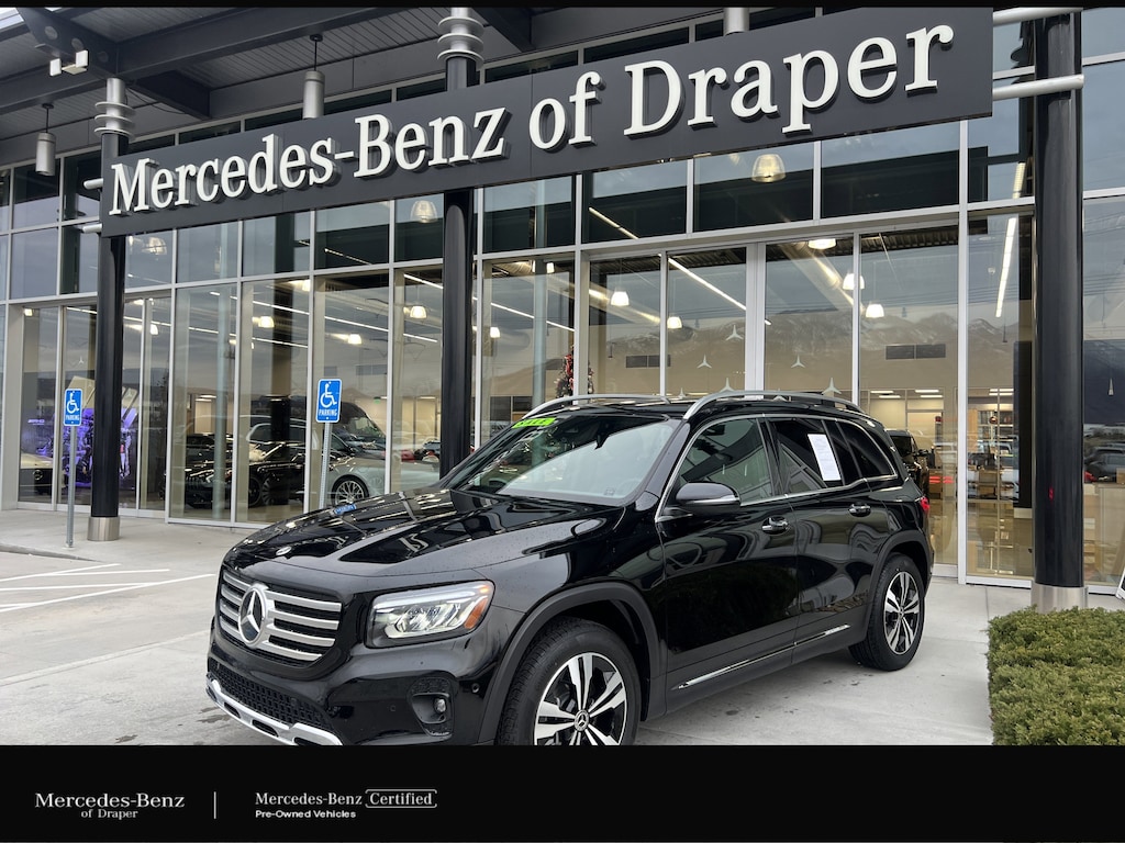 Mercedes-Benz of Draper proudly offers this 2025 Black Mercedes-Benz GLB GLB 250 AWD . It is well equipped and includes these features and benefits: Winter Package (Heated Steering Wheel and Heated Windshield Washer Fluid), 4-Wheel Disc Brakes, 8 Speakers, ABS brakes, Air Conditioning, All-Weather Mats, Alloy wheels, AM/FM radio: SiriusXM, Apple CarPlay®/Android Auto®, Auto High-beam Headlights, Auto-dimming door mirrors, Automatic temperature control, Brake assist, Bumpers: body-color, Child-Seat-Sensing Airbag, Delay-off headlights, Driver door bin, Driver vanity mirror, Dual front impact airbags, Dual front side impact airbags, Electronic Stability Control, Emergency communication system: Mercedes-Benz Emergency Call Service, Exterior Parking Camera Rear, First Aid Kit, Four wheel independent suspension, Front anti-roll bar, Front Bucket Seats, Front Center Armrest, Front Comfort Seats, Front dual zone A/C, Front fog lights, Front reading lights, Fully automatic headlights, Garage door transmitter, Heated door mirrors, Heated front seats, Heated Seats, Illuminated entry, Knee airbag, LED Logo Projector, Low tire pressure warning, MB-Tex Upholstery, Memory seat, Occupant sensing airbag, Outside temperature display, Overhead airbag, Overhead console, Panic alarm, Passenger door bin, Passenger vanity mirror, Power door mirrors, Power driver seat, Power Liftgate, Power passenger seat, Power steering, Power windows, Premium audio system: MBUX, Radio data system, Radio: Mercedes-Benz User Experience (MBUX), Rain sensing wipers, Rear anti-roll bar, Rear fog lights, Rear reading lights, Rear window defroster, Rear window wiper, Remote keyless entry, Security system, SiriusXM Satellite Radio, Speed control, Speed-sensing steering, Split folding rear seat, Spoiler, Steering wheel mounted audio controls, Tachometer, Telescoping steering wheel, Tilt steering wheel, Traction control, Trip computer, Turn signal indicator mirrors, Variably intermittent wipers, Wheel Locking Bolts, Wheels: 18 Twin 5-Spoke, and Wireless Charging.