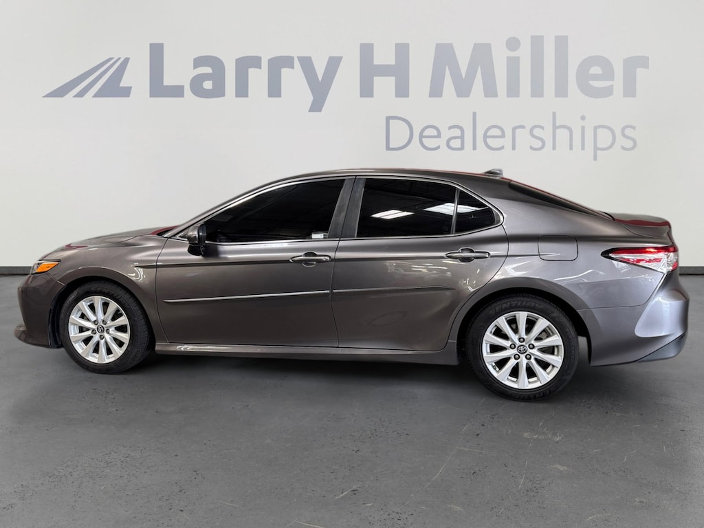 This 2019 Predawn Gray Mica Toyota Camry LE FWD is well equipped and includes these features and benefits: Cloth, 4-Wheel Disc Brakes, 6 Speakers, 7.5J x 17 Alloy Wheels, ABS brakes, Air Conditioning, Alloy wheels, AM/FM radio, Apple CarPlay, Auto High-beam Headlights, Brake assist, Bumpers: body-color, Delay-off headlights, Driver door bin, Driver vanity mirror, Dual front impact airbags, Dual front side impact airbags, Electronic Stability Control, Emergency communication system: Safety Connect, Exterior Parking Camera Rear, Fabric Seat Trim, Four wheel independent suspension, Front anti-roll bar, Front Bucket Seats, Front Center Armrest, Front reading lights, Fully automatic headlights, Illuminated entry, Knee airbag, Low tire pressure warning, Occupant sensing airbag, Outside temperature display, Overhead airbag, Overhead console, Panic alarm, Passenger door bin, Passenger vanity mirror, Power door mirrors, Power driver seat, Power steering, Power windows, Radio data system, Radio: Entune 3.0 Audio w/App Suite, Rear anti-roll bar, Rear reading lights, Rear seat center armrest, Rear side impact airbag, Rear window defroster, Remote keyless entry, Security system, Speed control, Speed-sensing steering, Split folding rear seat, Steering wheel mounted audio controls, Tachometer, Telescoping steering wheel, Tilt steering wheel, Traction control, Trip computer, and Variably intermittent wipers. Cloth, 4-Wheel Disc Brakes, 6 Speakers, 7.5J x 17 Alloy Wheels, ABS brakes, Air Conditioning, Alloy wheels, AM/FM radio, Apple CarPlay, Auto High-beam Headlights, Brake assist, Bumpers: body-color, Delay-off headlights, Driver door bin, Driver vanity mirror, Dual front impact airbags, Dual front side impact airbags, Electronic Stability Control, Emergency communication system: Safety Connect, Exterior Parking Camera Rear, Fabric Seat Trim, Four wheel independent suspension, Front anti-roll bar, Front Bucket Seats, Front Center Armrest, Front reading lights, Fully automatic headlights, Illuminated entry, Knee airbag, Low tire pressure warning, Occupant sensing airbag, Outside temperature display, Overhead airbag, Overhead console, Panic alarm, Passenger door bin, Passenger vanity mirror, Power door mirrors, Power driver seat, Power steering, Power windows, Radio data system, Radio: Entune 3.0 Audio w/App Suite, Rear anti-roll bar, Rear reading lights, Rear seat center armrest, Rear side impact airbag, Rear window defroster, Remote keyless entry, Security system, Speed control, Speed-sensing steering, Split folding rear seat, Steering wheel mounted audio controls, Tachometer, Telescoping steering wheel, Tilt steering wheel, Traction control, Trip computer, Variably intermittent wipers, Cloth.