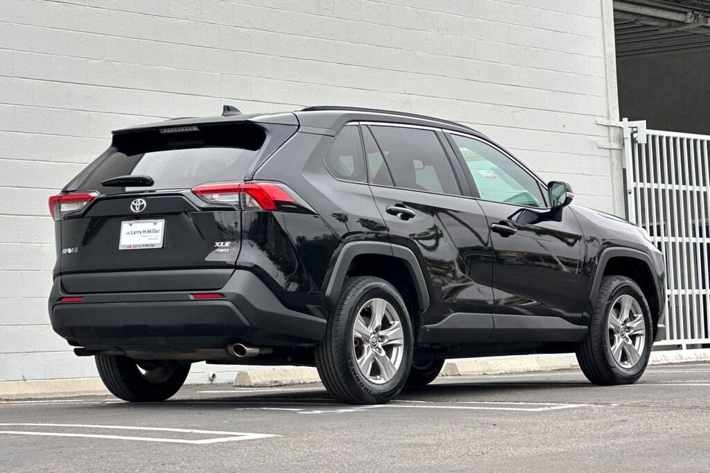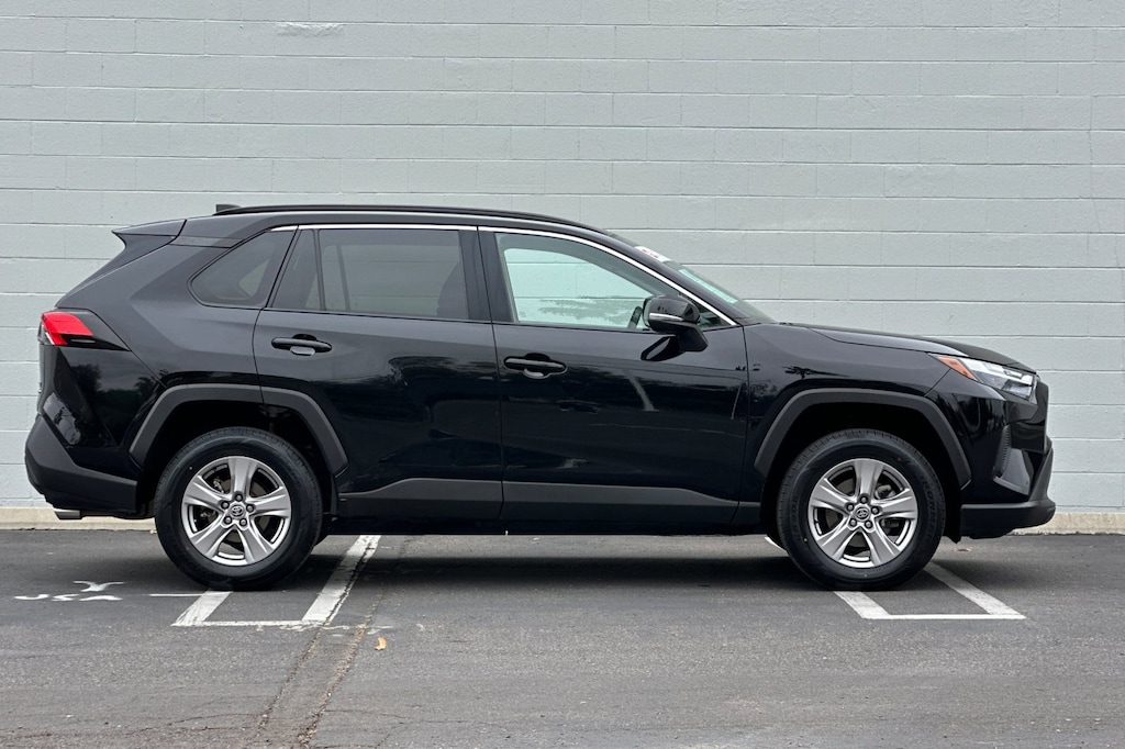 This 2022 Midnight Black Metallic Toyota RAV4 XLE AWD is well equipped and includes these features and benefits: Toyota Gold Certified Certified, AWD, Black w/Fabric Seat Trim, 4-Wheel Disc Brakes, 6 Speakers, ABS brakes, Air Conditioning, Alloy wheels, AM/FM radio: SiriusXM, AM/FM Stereo, Apple CarPlay/Android Auto, Auto High-beam Headlights, Automatic temperature control, Axle Ratio: 3.177, Brake assist, Bumpers: body-color, Delay-off headlights, Driver door bin, Driver vanity mirror, Dual front impact airbags, Dual front side impact airbags, Electronic Stability Control, Emergency communication system: Safety Connect with 1-year trial, Exterior Parking Camera Rear, Fabric Seat Trim, Four wheel independent suspension, Front anti-roll bar, Front Bucket Seats, Front Center Armrest, Front dual zone A/C, Front reading lights, Fully automatic headlights, Heated door mirrors, Illuminated entry, Knee airbag, Low tire pressure warning, Occupant sensing airbag, Outside temperature display, Overhead airbag, Overhead console, Panic alarm, Passenger door bin, Passenger vanity mirror, Power door mirrors, Power driver seat, Power steering, Power windows, Radio data system, Rear anti-roll bar, Rear seat center armrest, Rear window defroster, Rear window wiper, Remote keyless entry, Roof rack: rails only, Speed control, Speed-sensing steering, Split folding rear seat, Spoiler, Steering wheel mounted audio controls, Tachometer, Telescoping steering wheel, Tilt steering wheel, Traction control, Trip computer, Turn signal indicator mirrors, Variably intermittent wipers, and Wheels: 17 5-Spoke Silver Alloy.