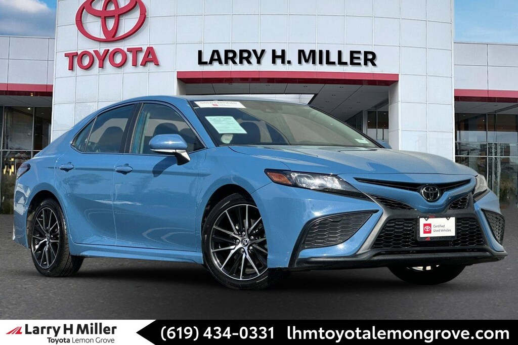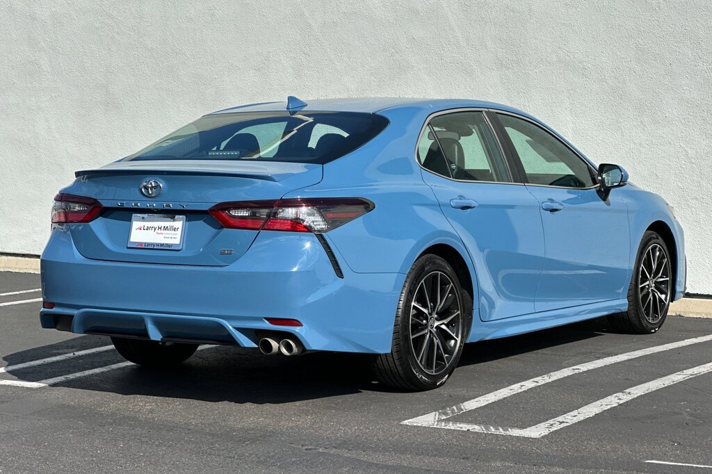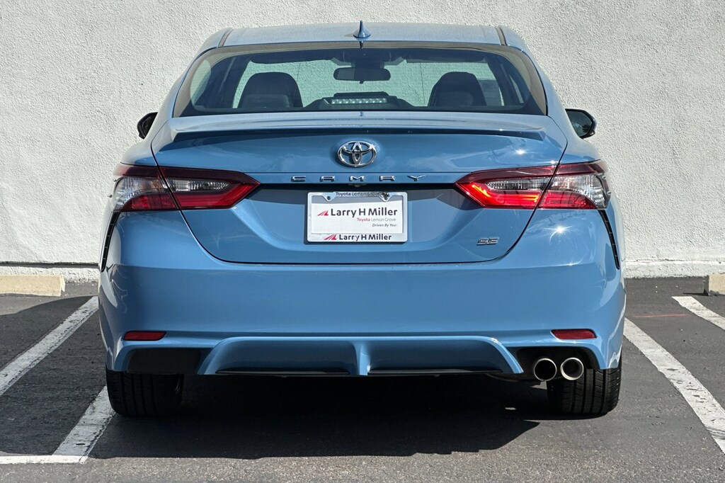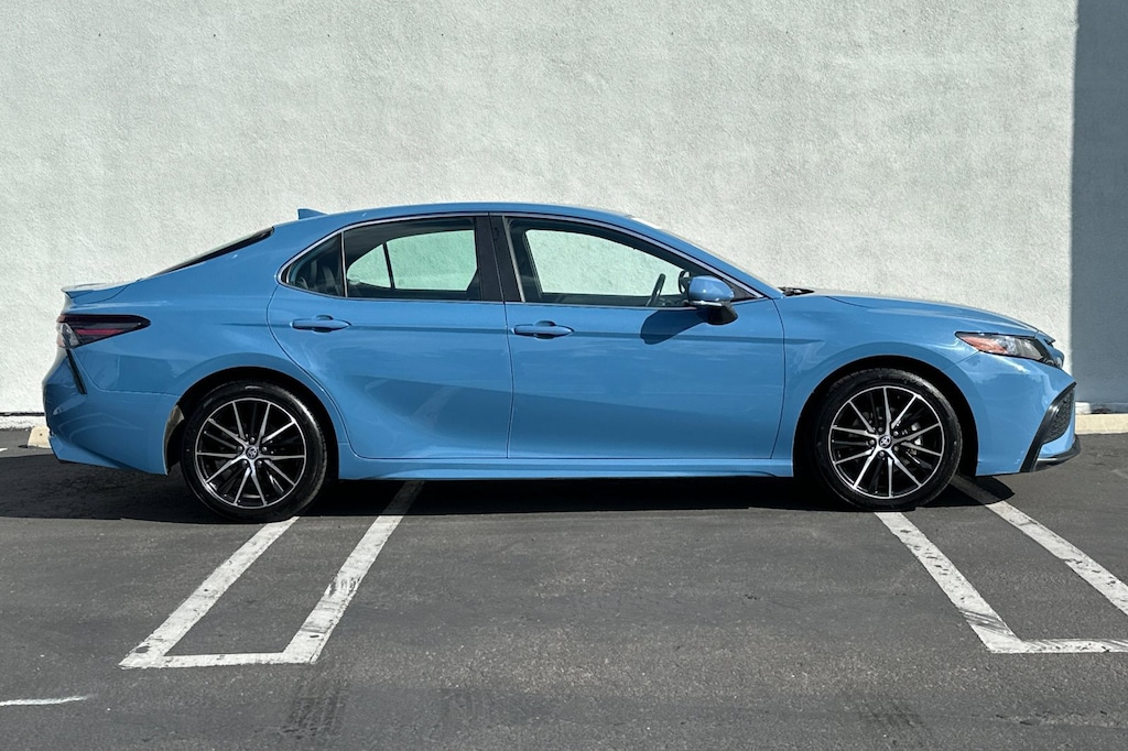 This 2024 Cavalry Blue Toyota Camry SE FWD is well equipped and includes these features and benefits: Toyota Gold Certified Certified, Black w/Sport SofTex Seat Trim w/Fabric Inserts, 18 x 8J Alloy Wheels, 4-Wheel Disc Brakes, 6 Speakers, ABS brakes, Air Conditioning, Alloy wheels, AM/FM radio: SiriusXM, Apple CarPlay/Android Auto, Auto High-beam Headlights, Automatic temperature control, Brake assist, Bumpers: body-color, Delay-off headlights, Driver door bin, Driver vanity mirror, Dual front impact airbags, Dual front side impact airbags, Electronic Stability Control, Emergency communication system: Safety Connect (1-year trial), Exterior Parking Camera Rear, Four wheel independent suspension, Front anti-roll bar, Front Bucket Seats, Front Center Armrest, Front dual zone A/C, Front reading lights, Fully automatic headlights, Heated door mirrors, Illuminated entry, Knee airbag, Leather steering wheel, Low tire pressure warning, Occupant sensing airbag, Outside temperature display, Overhead airbag, Overhead console, Panic alarm, Passenger door bin, Passenger vanity mirror, Power door mirrors, Power driver seat, Power steering, Power windows, Radio data system, Radio: Audio, Rear anti-roll bar, Rear seat center armrest, Rear side impact airbag, Rear window defroster, Remote keyless entry, Security system, Speed control, Speed-sensing steering, Split folding rear seat, Spoiler, Sport SofTex Seat Trim w/Fabric Inserts, Steering wheel mounted audio controls, Tachometer, Telescoping steering wheel, Tilt steering wheel, Traction control, Trip computer, Turn signal indicator mirrors, and Variably intermittent wipers.