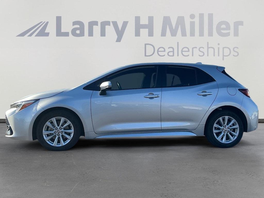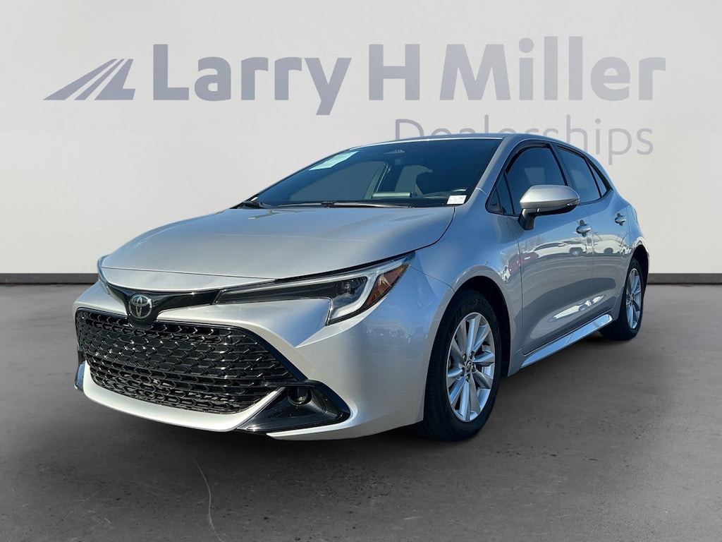 This 2024 Classic Silver Metallic Toyota Corolla Hatchback SE FWD is well equipped and includes these features and benefits: Toyota Gold Certified Certified, 16 Alloy Wheels, 4-Wheel Disc Brakes, 6 Speakers, ABS brakes, Air Conditioning, Alloy wheels, AM/FM radio: SiriusXM, Auto High-beam Headlights, Automatic temperature control, Brake assist, Bumpers: body-color, Compass, Delay-off headlights, Driver door bin, Driver vanity mirror, Dual front impact airbags, Dual front side impact airbags, Electronic Stability Control, Emergency communication system: Safety Connect (up to 10-year trial subscription), Exterior Parking Camera Rear, Fabric Seat Trim, Four wheel independent suspension, Front anti-roll bar, Front Bucket Seats, Front Center Armrest, Front reading lights, Heated door mirrors, Illuminated entry, Knee airbag, Leather Shift Knob, Leather steering wheel, Low tire pressure warning, Occupant sensing airbag, Outside temperature display, Overhead airbag, Overhead console, Panic alarm, Passenger door bin, Passenger vanity mirror, Power door mirrors, Power steering, Power windows, Radio data system, Radio: 8 Toyota Audio Multimedia, Rear anti-roll bar, Rear seat center armrest, Rear side impact airbag, Rear window defroster, Rear window wiper, Remote keyless entry, Security system, Speed control, Speed-sensing steering, Split folding rear seat, Spoiler, Sport Front Seats, Steering wheel mounted audio controls, Tachometer, Telescoping steering wheel, Tilt steering wheel, Traction control, Trip computer, Turn signal indicator mirrors, and Variably intermittent wipers. Toyota Gold Certified Certified, 16 Alloy Wheels, 4-Wheel Disc Brakes, 6 Speakers, ABS brakes, Air Conditioning, Alloy wheels, AM/FM radio: SiriusXM, Auto High-beam Headlights, Automatic temperature control, Brake assist, Bumpers: body-color, Compass, Delay-off headlights, Driver door bin, Driver vanity mirror, Dual front impact airbags, Dual front side impact airbags, Electronic Stability Control, Emergency communication system: Safety Connect (up to 10-year trial subscription), Exterior Parking Camera Rear, Fabric Seat Trim, Four wheel independent suspension, Front anti-roll bar, Front Bucket Seats, Front Center Armrest, Front reading lights, Heated door mirrors, Illuminated entry, Knee airbag, Leather Shift Knob, Leather steering wheel, Low tire pressure warning, Occupant sensing airbag, Outside temperature display, Overhead airbag, Overhead console, Panic alarm, Passenger door bin, Passenger vanity mirror, Power door mirrors, Power steering, Power windows, Radio data system, Radio: 8 Toyota Audio Multimedia, Rear anti-roll bar, Rear seat center armrest, Rear side impact airbag, Rear window defroster, Rear window wiper, Remote keyless entry, Security system, Speed control, Speed-sensing steering, Split folding rear seat, Spoiler, Sport Front Seats, Steering wheel mounted audio controls, Tachometer, Telescoping steering wheel, Tilt steering wheel, Traction control, Trip computer, Turn signal indicator mirrors, Variably intermittent wipers.