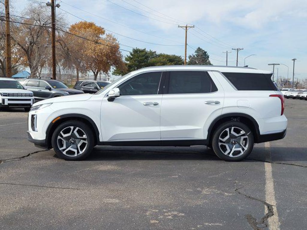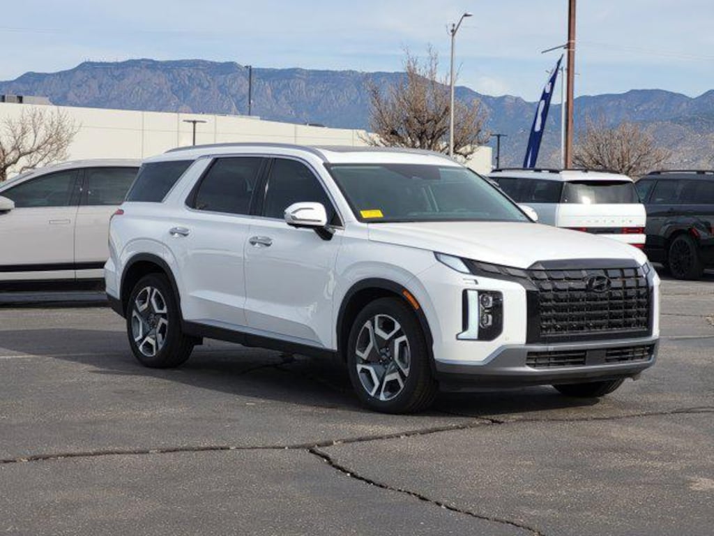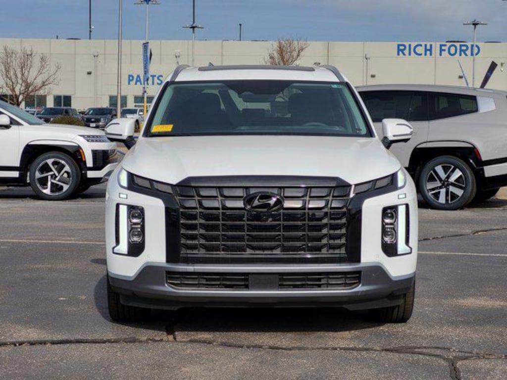 Option Group 01, 3rd row seats: split-bench, 4-Wheel Disc Brakes, 6 Speakers, ABS brakes, Air Conditioning, Alloy wheels, AM/FM radio: SiriusXM, Apple CarPlay & Android Auto, Auto High-beam Headlights, Auto-dimming door mirrors, Auto-dimming Rear-View mirror, Automatic temperature control, Brake assist, Bumpers: body-color, Cargo Blocks, Cargo Cover, Cargo Net, Cargo Tray, Carpeted Floor Mats, Delay-off headlights, Driver door bin, Driver vanity mirror, Dual front impact airbags, Dual front side impact airbags, Electronic Stability Control, Emergency communication system, Exterior Parking Camera Rear, First Aid Kit, Four wheel independent suspension, Front anti-roll bar, Front Bucket Seats, Front Center Armrest, Front dual zone A/C, Front reading lights, Fully automatic headlights, Garage door transmitter: HomeLink, H-Tex Leatherette Seat Trim, Heated & Ventilated Front Bucket Seats, Heated door mirrors, Heated front seats, Heated rear seats, Heated steering wheel, Illuminated entry, Knee airbag, Leather steering wheel, Low tire pressure warning, Memory seat, Navigation System, Occupant sensing airbag, Outside temperature display, Overhead airbag, Overhead console, Panic alarm, Passenger door bin, Passenger vanity mirror, Power door mirrors, Power driver seat, Power Liftgate, Power moonroof, Power passenger seat, Power steering, Power windows, Radio data system, Radio: AM/FM/MP3 Audio System, Rear air conditioning, Rear anti-roll bar, Rear audio controls, Rear reading lights, Rear side impact airbag, Rear window defroster, Rear window wiper, Reclining 3rd row seat, Remote keyless entry, Security system, Speed control, Speed-sensing steering, Split folding rear seat, Spoiler, Steering wheel mounted audio controls, Tachometer, Telescoping steering wheel, Tilt steering wheel, Traction control, Trip computer, Turn signal indicator mirrors, Variably intermittent wipers, Ventilated front seats, Ventilated rear seats, and Wheels: 20 x 7.5J Alloy. Price includes: $3500 - Hyundai HMF Dealer Choice : $3500 discount and 5.49% APR for 24 months. $44.09 per $1000 financed. Available to well qualified buyers who finance through Hyundai Motor Finance. H704. Exp. 01/02/2026