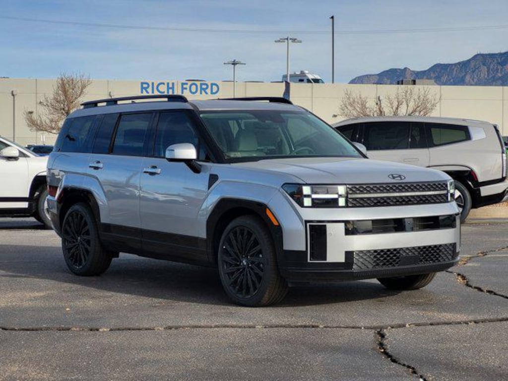 Option Group 01, 12 Speakers, 3rd row seats: bench, 4-Wheel Disc Brakes, ABS brakes, Air Conditioning, Alloy wheels, AM/FM radio: SiriusXM, Apple CarPlay & Android Auto, Auto High-beam Headlights, Auto-dimming Rear-View mirror, Automatic temperature control, Brake assist, Bumpers: body-color, Cargo Cover, Cargo Net, Carpeted Floor Mats, Delay-off headlights, Driver door bin, Driver vanity mirror, Dual front impact airbags, Dual front side impact airbags, Electronic Stability Control, Emergency communication system, Exterior Parking Camera Rear, First Aid Kit, Four wheel independent suspension, Front anti-roll bar, Front Bucket Seats, Front Center Armrest, Front dual zone A/C, Front reading lights, Fully automatic headlights, Garage door transmitter: HomeLink, Heads-Up Display, Heated & Ventilated Front Bucket Seats, Heated door mirrors, Heated front seats, Heated rear seats, Heated steering wheel, Illuminated entry, Knee airbag, Leather steering wheel, Low tire pressure warning, Memory seat, Navigation System, Occupant sensing airbag, Outside temperature display, Overhead airbag, Overhead console, Panic alarm, Passenger door bin, Passenger vanity mirror, Power door mirrors, Power driver seat, Power Liftgate, Power moonroof, Power passenger seat, Power steering, Power windows, Premium Nappa Leather Seat Trim, Radio: AM/FM/HD Bose Premium Audio System, Rain sensing wipers, Rear anti-roll bar, Rear side impact airbag, Rear window defroster, Rear window wiper, Remote keyless entry, Security system, Speed control, Speed-sensing steering, Split folding rear seat, Spoiler, Steering wheel mounted audio controls, Tachometer, Telescoping steering wheel, Tilt steering wheel, Traction control, Trip computer, Turn signal indicator mirrors, Variably intermittent wipers, Ventilated front seats, and Wheels: 21 x 8.5J Unique Dark Finish Alloy. Price includes: $4000 - Hyundai HMF Dealer Choice : $4000 discount and 5.49% APR for 24 months. $44.09 per $1000 financed. Available to well qualified buyers who finance through Hyundai Motor Finance. H704. Exp. 01/02/2026