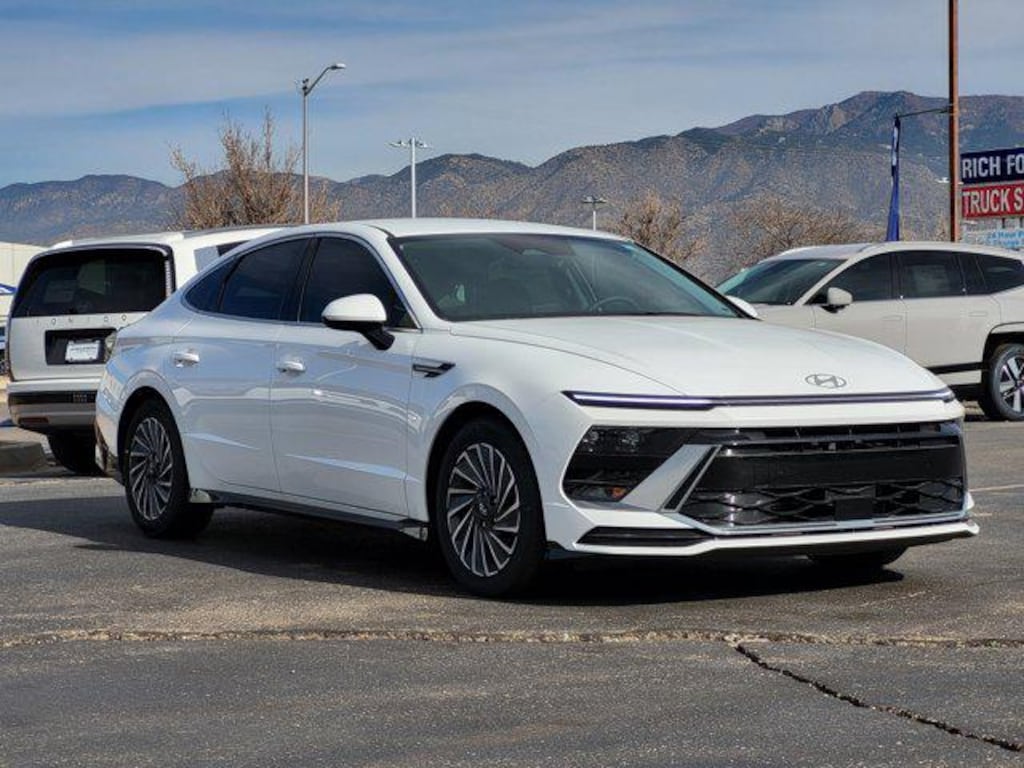 Serenity White 2025 Hyundai Sonata Hybrid SEL FWD 6-Speed Automatic with Shiftronic 44/51 City/Highway MPG I4