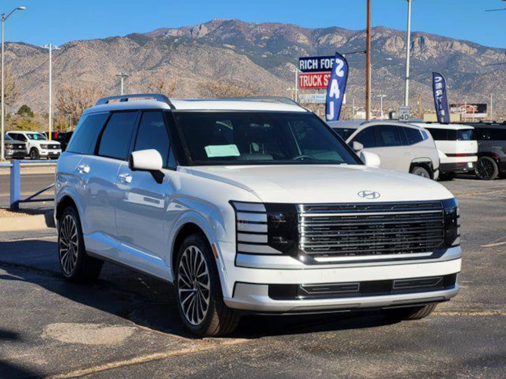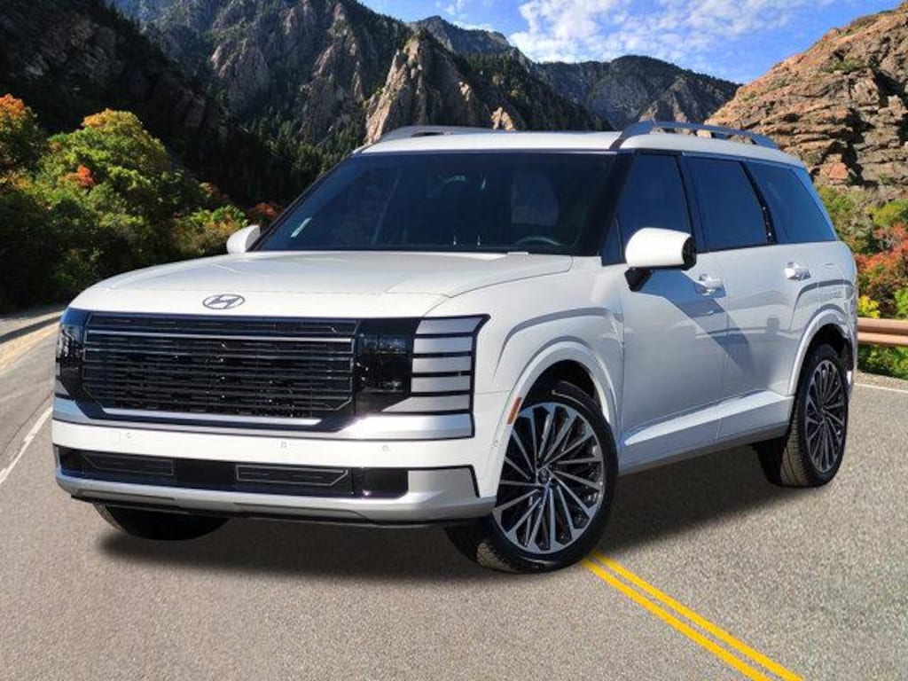 Option Group 01, 14 Speakers, 3rd row seats: split-bench, 4-Wheel Disc Brakes, ABS brakes, Air Conditioning, All-Season Fitted Liners, Alloy wheels, AM/FM radio: SiriusXM, Apple CarPlay & Android Auto, Audio memory, Auto High-beam Headlights, Auto-dimming door mirrors, Auto-dimming Rear-View mirror, Auto-leveling suspension, Automatic temperature control, Brake assist, Bumpers: body-color, Cargo Tray, Carpeted Floor Mats, Compass, Delay-off headlights, Driver door bin, Driver vanity mirror, Dual front impact airbags, Dual front side impact airbags, Electronic Stability Control, Emergency communication system: None, Exterior Parking Camera Rear, First Aid Kit, Four wheel independent suspension, Front anti-roll bar, Front Bucket Seats, Front Center Armrest, Front dual zone A/C, Front reading lights, Fully automatic headlights, Garage door transmitter: HomeLink, Genuine wood console insert, Genuine wood dashboard insert, Heads-Up Display, Heated and Ventilated Front Bucket Seats, Heated door mirrors, Heated front seats, Heated rear seats, Heated steering wheel, HVAC memory, Illuminated entry, Knee airbag, Leather steering wheel, Low tire pressure warning, Memory seat, Navigation System, Occupant sensing airbag, Outside temperature display, Overhead airbag, Overhead console, Panic alarm, Passenger door bin, Passenger vanity mirror, Power door mirrors, Power driver seat, Power Liftgate, Power moonroof, Power passenger seat, Power steering, Power windows, Premium Nappa Leather Seat Trim, Radio data system, Radio: Infotainment Navigation System, Rain sensing wipers, Rear air conditioning, Rear anti-roll bar, Rear audio controls, Rear reading lights, Rear side impact airbag, Rear window defroster, Rear window wiper, Reclining 3rd row seat, Remote keyless entry, Security system, Speed control, Split folding rear seat, Spoiler, Steering wheel mounted audio controls, Tachometer, Telescoping steering wheel, Tilt steering wheel, Traction control, Trip computer, Turn signal indicator mirrors, Variably intermittent wipers, Ventilated front seats, Ventilated rear seats, and Wheels: 21 x 8.5J Alloy. Price includes: $1000 - Hyundai HMF Dealer Choice : $1000 discount and 5.49% APR for 24 months. $44.09 per $1000 financed. Available to well qualified buyers who finance through Hyundai Motor Finance. H704. Exp. 01/02/2026