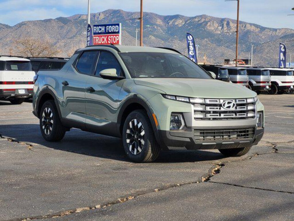 Option Group 01, 18 x 7.5J Alloy Wheels, 4-Wheel Disc Brakes, 4.081 Axle Ratio, 6 Speakers, ABS brakes, Air Conditioning, Alloy wheels, AM/FM radio: SiriusXM, Apple CarPlay & Android Auto, Auto High-beam Headlights, Auto-leveling suspension, Automatic temperature control, Bed Cargo Net, Bed Fence, Brake assist, Bumpers: body-color, Carpeted Floor Mats, Compass, Delay-off headlights, Driver door bin, Driver vanity mirror, Dual front impact airbags, Dual front side impact airbags, Electronic Stability Control, Emergency communication system: Bluelink+, Exterior Parking Camera Rear, First Aid Kit, Four wheel independent suspension, Front anti-roll bar, Front Bucket Seats, Front Center Armrest, Front dual zone A/C, Front reading lights, Fully automatic headlights, H-Tex Leatherette Seat Trim, Heated door mirrors, Heated Front Bucket Seats, Heated front seats, Illuminated entry, Low tire pressure warning, Occupant sensing airbag, Outside temperature display, Overhead airbag, Overhead console, Panic alarm, Passenger door bin, Passenger vanity mirror, Power door mirrors, Power driver seat, Power steering, Power windows, Radio data system, Radio: AM/FM/HD Audio System, Rear anti-roll bar, Rear reading lights, Rear side impact airbag, Rear step bumper, Rear window defroster, Remote keyless entry, Roadside Assistance Kit, Security system, Speed control, Speed-sensing steering, Split folding rear seat, Spoiler, Steering wheel mounted audio controls, Tachometer, Tailgate Protector, Telescoping steering wheel, Tilt steering wheel, Traction control, Trip computer, Turn signal indicator mirrors, and Variably intermittent wipers. Price includes: $250 - Hyundai HMF Dealer Choice : $250 discount and 5.49% APR for 24 months. $44.09 per $1000 financed. Available to well qualified buyers who finance through Hyundai Motor Finance. H704. Exp. 01/02/2026 $750 - Sales Event Cash. Exp. 01/02/2026