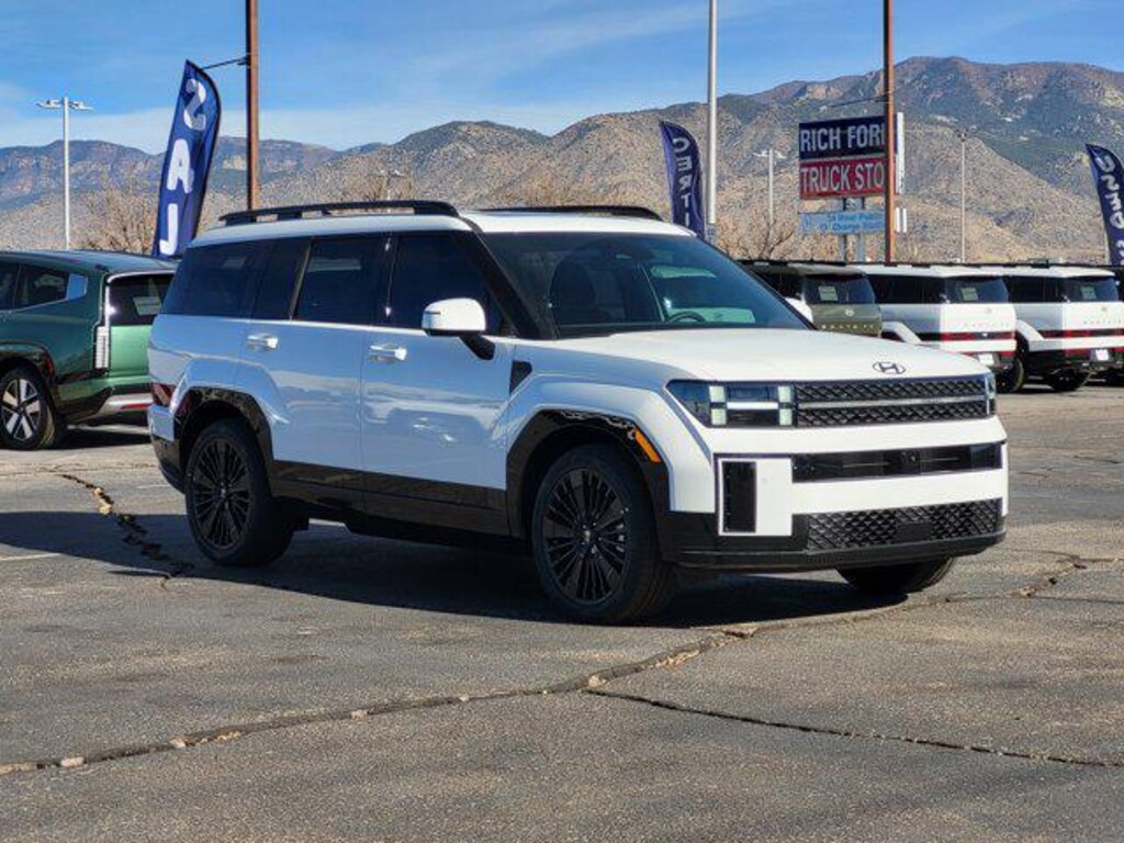 Option Group 01, 12 Speakers, 3rd row seats: bench, 4-Wheel Disc Brakes, ABS brakes, Air Conditioning, All Season Fitted Liners, Alloy wheels, AM/FM radio: SiriusXM, Apple CarPlay & Android Auto, Auto High-beam Headlights, Auto-dimming Rear-View mirror, Automatic temperature control, Brake assist, Bumpers: body-color, Cargo Cover/Screen, Cargo Net, Cargo Tray, Carpeted Floor Mats, Delay-off headlights, Driver door bin, Driver vanity mirror, Dual front impact airbags, Dual front side impact airbags, Electronic Stability Control, Emergency communication system, Exterior Parking Camera Rear, First Aid Kit, Four wheel independent suspension, Front anti-roll bar, Front Bucket Seats, Front Center Armrest, Front dual zone A/C, Front reading lights, Fully automatic headlights, Garage door transmitter: HomeLink, Heads-Up Display, Heated & Ventilated Front Bucket Seats, Heated door mirrors, Heated front seats, Heated rear seats, Heated steering wheel, Illuminated entry, Knee airbag, Leather steering wheel, Low tire pressure warning, Memory seat, Navigation System, Occupant sensing airbag, Outside temperature display, Overhead airbag, Overhead console, Panic alarm, Passenger door bin, Passenger vanity mirror, Power door mirrors, Power driver seat, Power Liftgate, Power moonroof, Power passenger seat, Power steering, Power windows, Quilted Premium Nappa Leather Seat Trim, Radio: AM/FM/HD Bose Premium Audio System, Rain sensing wipers, Rear anti-roll bar, Rear side impact airbag, Rear window defroster, Rear window wiper, Remote keyless entry, Roadside Assistance Kit, Security system, Speed control, Speed-sensing steering, Split folding rear seat, Spoiler, Steering wheel mounted audio controls, Tachometer, Telescoping steering wheel, Tilt steering wheel, Traction control, Trip computer, Turn signal indicator mirrors, Variably intermittent wipers, Ventilated front seats, and Wheels: 20 x 8.5J Unique Dark Finish Alloy. Price includes: $4250 - Hyundai HMF Dealer Choice : $4250 discount and 5.49% APR for 24 months. $44.09 per $1000 financed. Available to well qualified buyers who finance through Hyundai Motor Finance. H704. Exp. 01/02/2026