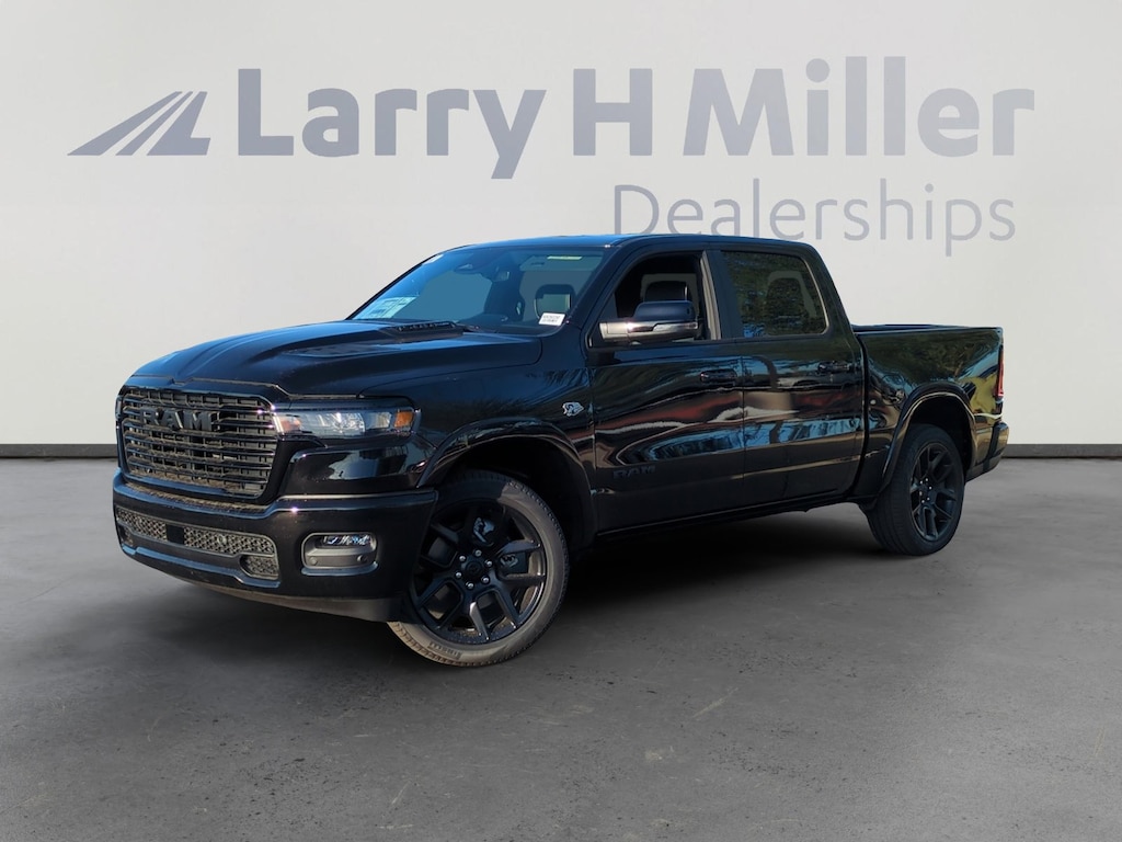 Diamond Black Crystal Pearlcoat 2026 Ram 1500 Laramie 4WD 8-Speed Automatic HEMI 5.7L V8 Multi Displacement VVT eTorque 10 Speakers, 14.4 Touchscreen Display, 4-Wheel Disc Brakes, 4G LTE Wi-Fi Hot Spot, ABS brakes, Accent Color Door Handles, Accent Color Premium Power Mirrors, Accent Color Tailgate Handle, Active Noise Control System, Adjustable pedals, Air Conditioning, Alloy wheels, AM/FM radio: SiriusXM with 360L, Anti-Spin Differential Rear Axle, Apple CarPlay/Android Auto, Audio memory, Auto High-beam Headlights, Auto Power-Folding Mirrors, Auto-dimming door mirrors, Auto-Dimming Exterior Driver Mirror, Auto-dimming Rear-View mirror, Automatic temperature control, Black Exterior Truck Badging, Black Headlamp Bezels, Black Interior Accents, Black Painted Exterior Mirrors Caps, Black Tail Lamp Bezels, Body Color Front Bumper, Body Color Rear Bumper with Step Pads, Brake assist, Bumpers: chrome, Chrome Exterior Mirrors, Cluster 12 TFT Color Display, Compass, Connected Travel and Traffic Services, Connectivity - US/Canada, Convex Wide-Angle Exterior Mirror Insert, Delay-off headlights, Driver door bin, Driver vanity mirror, Dual Exhaust with Black Tips, Dual front impact airbags, Dual front side impact airbags, Electronic Stability Control, Exterior Mirrors Approach Lamps, Exterior Mirrors Courtesy Lamps, Exterior Mirrors with Heating Element, Exterior Mirrors with Memory, Exterior Mirrors with Supplemental Signals, Front anti-roll bar, Front Bucket Seats, Front Center Armrest w/Storage, Front dual zone A/C, Front fog lights, Front Passenger Interactive Display, Front reading lights, Front wheel independent suspension, Fully automatic headlights, Garage door transmitter, GPS Navigation, Grille Surround 3 Black Texture 2 Black, Harman/Kardon 19 Speaker Premium Sound, Heated door mirrors, Heated front seats, Heated rear seats, Heated steering wheel, Illuminated entry, Integrated Center Stack Radio, Integrated Voice Command with Bluetooth, Laramie Level 2 Equipment Group, Leather steering wheel, Leather Trimmed Bucket Seats, Low tire pressure warning, Manufacturer's Statement of Origin, Memory seat, MOPAR Front and Rear Rubber Floor Mats, Navigation System, Night Edition, Occupant sensing airbag, Off-Road Information Pages, Outside temperature display, Overhead airbag, Overhead console, Panic alarm, ParkView Rear Back-Up Camera, Passenger door bin, Passenger vanity mirror, Pedal memory, Pirelli Brand Tires, Power door mirrors, Power driver seat, Power passenger seat, Power steering, Power Tailgate, Power windows, Proximity Approach/Departure Lamps, Quick Order Package 27H Laramie, Radio data system, Radio: Uconnect 5 Nav with 14.4 Display, Radio: Uconnect 5 Navigation with 12.0 Display, Rain Sensitive Windshield Wipers, RAM Grille Badge - Black, RAM Grille Badge - Chrome, Rear anti-roll bar, Rear reading lights, Rear seat center armrest, Rear step bumper, Remote keyless entry, Security system, SiriusXM Radio Service, SiriusXM with 360L, Speed control, Split folding rear seat, Sport Performance Hood, Steering wheel mounted audio controls, Tachometer, Telescoping steering wheel, Tilt steering wheel, Traction control, Trailer Brake Control, Trip computer, Turn signal indicator mirrors, USB Host Flip, Variably intermittent wipers, Ventilated front seats, Voltmeter, Wheels: 20 x 9 Premium Paint/Polish, Wheels: 22 x 9 Forged Aluminum.