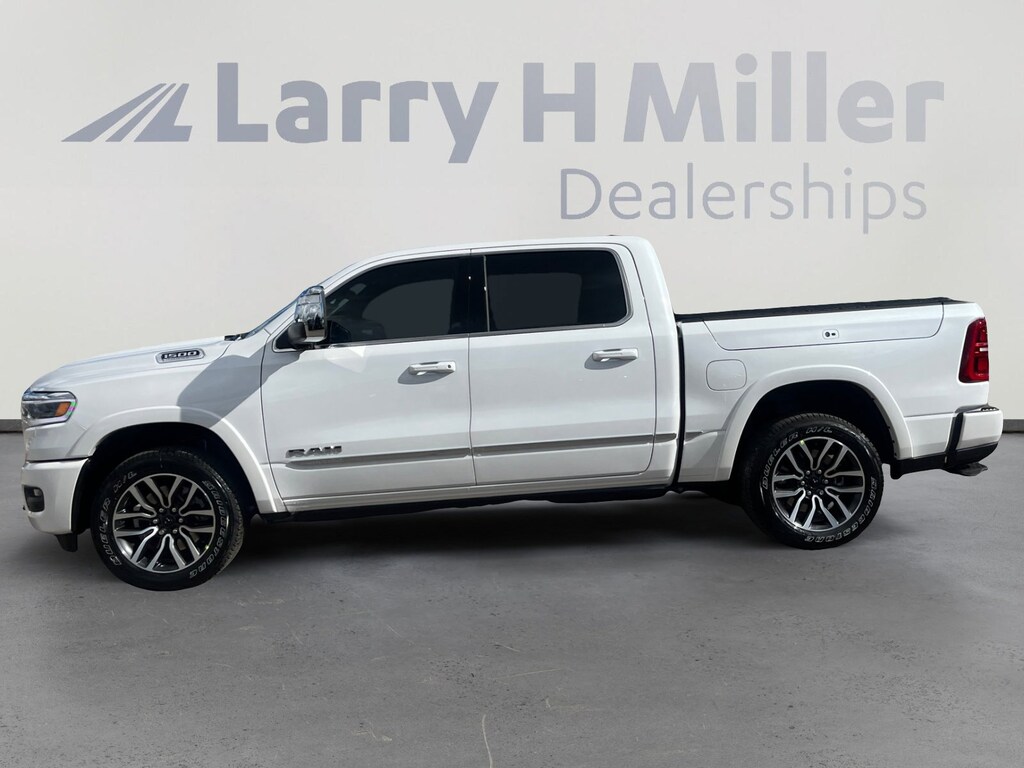 Ivory White Tri-Coat Pearlcoat 2026 Ram 1500 Limited 4WD 8-Speed Automatic 3.0L I6 12-Way/1-Way Trailer Connector, 14.4 Touchscreen Display, 19 Speakers, 240 Amp Alternator, 3.92 Rear Axle Ratio, 4-Wheel Disc Brakes, 4G LTE Wi-Fi Hot Spot, ABS brakes, Active Noise Control System, Adjustable pedals, Air Conditioning, Alloy wheels, AM/FM radio, Apple CarPlay, Apple CarPlay/Android Auto, Audio memory, Auto High-beam Headlights, Auto Power-Folding Mirrors, Auto-dimming door mirrors, Auto-Dimming Exterior Driver Mirror, Auto-Dimming Exterior Passenger Mirror, Auto-dimming Rear-View mirror, Auto-leveling suspension, Automatic temperature control, Bed Utility Group, Body Color Bumper Group, Body Color Front Bumper, Body Color Rear Bumper w/Step Pads, Bodyside moldings, Brake assist, Bumpers: chrome, Chrome Exterior Mirrors, Chrome Power-Fold Trailer Tow Mirrors, Compass, Connected Travel & Traffic Services, Connectivity - US/Canada, Convex Wide-Angle Exterior Mirror Insert, Delay-off headlights, Disassociated Touchscreen Display, Dome Dual LED Reading Lamp, Driver door bin, Driver vanity mirror, Drowsy Driver Detection, Dual front impact airbags, Dual front side impact airbags, Dual-Pane Panoramic Sunroof, Electronic Stability Control, Evasive Steer Assist, Exterior 115V AC Outlet, Exterior Mirrors Courtesy Lamps, Exterior Mirrors w/Heating Element, Exterior Mirrors w/Memory, Exterior Mirrors w/Supplemental Signals, Exterior Parking Camera Rear, Forward & Reverse Utility Lights, Front anti-roll bar, Front Bucket Seats, Front Center Armrest w/Storage, Front dual zone A/C, Front fog lights, Front License Plate Bracket, Front reading lights, Front wheel independent suspension, Fully automatic headlights, Garage door transmitter, Genuine wood console insert, Genuine wood dashboard insert, Genuine wood door panel insert, Global Telematics Box Module (TBM), Google Android Auto, GPS Antenna Input, GPS Navigation, Hands-Free Active Driving Assist System, HD Radio, Heads-Up Display, Heated door mirrors, Heated front seats, Heated rear seats, Heated steering wheel, Illuminated entry, Integrated Center Stack Radio, Integrated Voice Command w/Bluetooth, Intersection Collision Assist System, Leather steering wheel, LED CHMSL Lamp, LED Dome/Reading Lamp, Limited Level A Equipment Group, Low tire pressure warning, Manufacturer's Statement of Origin, Memory seat, Mirror Clearance/Running Lights, MOPAR 4 Adjustable Cargo Tie-Down Hooks, MyFlexCare Service Plan, Navigation System, Occupant sensing airbag, Outside temperature display, Overhead airbag, Overhead console, Panic alarm, Passenger door bin, Passenger vanity mirror, Pedal memory, Power door mirrors, Power driver seat, Power passenger seat, Power steering, Power Telescoping Mirrors, Power windows, Power-Adjustable Convex Aux Mirrors, Premium Quilted Leather Bucket Seats, Quick Order Package 22M Limited, Radio data system, Radio: Uconnect 5 Nav w/12.0 Display, Radio: Uconnect 5 Nav w/14.4 Display, Rain sensing wipers, RamBox Cargo Management System, Rear anti-roll bar, Rear reading lights, Rear seat center armrest, Rear step bumper, Rear window defroster, Remote keyless entry, Security system, SiriusXM Radio Service, SiriusXM w/360L, Smartphone As A Key Capable, Speed control, Split folding rear seat, Steering wheel mounted audio controls, Surround View Camera System, Tachometer, Telescoping steering wheel, Tilt steering wheel, Traction control, Traffic Sign Recognition, Trailer Brake Control, Trailer Light Check, Trailer Reverse Steering Control, Trailer Tire Pressure Monitoring System, Trailer Tow Group, Trailer Tow Mirrors, Tri-Fold Tonneau Cover, Trip computer, Turn signal indicator mirrors, USB Host Flip, Variably intermittent wipers, Ventilated front seats, Ventilated rear seats, Voltmeter, Wheels: 20 x 9 Premium Paint/Polished.