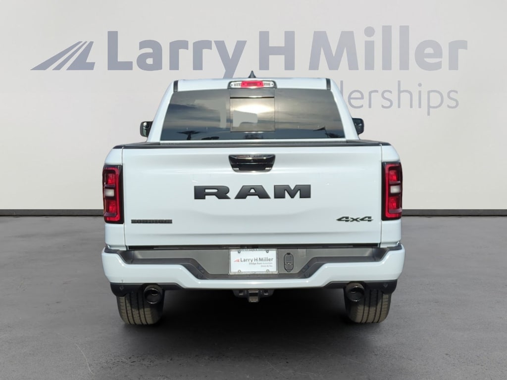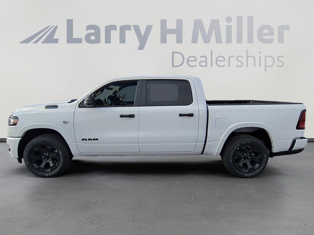 Bright White Clearcoat 2026 Ram 1500 Big Horn/Lone Star 4WD 8-Speed Automatic HEMI 5.7L V8 Multi Displacement VVT eTorque 115V Auxiliary Power Outlet, 115V Auxiliary Rear Power Outlet, 12 Touchscreen Display, 2nd Row in Floor Storage Bins, 3 Rear Seat Head Restraints, 4 Way Front Headrests, 4-Wheel Disc Brakes, 400W Inverter, 48V Belt Starter Generator, 4G LTE Wi-Fi Hot Spot, 6 Speakers, 9 Amplified Speakers with Subwoofer, ABS brakes, Accent Color Door Handles, Accent Color Premium Power Mirrors, Accent Color Tailgate Handle, Air Conditioning, Air Conditioning ATC with Dual Zone Control, Alloy wheels, AM/FM radio, Anti-Spin Differential Rear Axle, Apple CarPlay, Apple CarPlay/Android Auto, Auto High-beam Headlights, Auto Power-Folding Mirrors, Auto-Dimming Exterior Driver Mirror, Auto-Dimming Rear-View Mirror, Big Horn Level 2 Equipment Group, Black Exterior Mirrors, Black Exterior Truck Badging, Black Headlamp Bezels, Black Interior Accents, Black Painted Exterior Mirrors Caps, Black Premium Power Mirrors, Black Tail Lamp Bezels, Body Color Fender Flares, Body Color Front Bumper, Body Color Rear Bumper with Step Pads, Brake assist, Bucket Seats, Bumpers: chrome, Center Console Parts Module, Cloth Bucket Seats, Cluster 7.0 TFT Color Display, Compass, Configurable Drive Mode, Connected Travel and Traffic Services, Connectivity - US/Canada, Convex Wide-Angle Exterior Mirror Insert, Delay-off headlights, Deluxe Cloth Bucket Seats, Disassociated Touchscreen Display, Driver door bin, Dual Exhaust with Black Tips, Dual front impact airbags, Dual front side impact airbags, Electronic Stability Control, Exterior Mirrors Courtesy Lamps, Exterior Mirrors with Heating Element, Exterior Mirrors with Supplemental Signals, Front anti-roll bar, Front Bucket Seats, Front Center Armrest w/Storage, Front fog lights, Front reading lights, Front Seat Back Map Pockets, Front wheel independent suspension, Full Length Floor Console, Fully automatic headlights, Global Telematics Box Module, Glove Box Lamp, Google Android Auto, GPS Antenna Input, GPS Navigation, Grille Black Surround Black Mesh, HD Radio, Heated door mirrors, Heated Front Seats, Heated Steering Wheel, Illuminated entry, Integrated Center Stack Radio, Integrated Voice Command with Bluetooth, Leather Wrapped Steering Wheel, LED Dome Lamp with on/Off Switch, LED Footwell Lighting, Low tire pressure warning, Manual Adjust 4-Way Driver Seat, Manual Adjust 4-Way Front Passenger Seat, Manual Folding Exterior Mirrors, Manufacturer's Statement of Origin, Media Hub with 2 Charge Only USBs, MOPAR Front and Rear Rubber Floor Mats, Night Edition, Occupant sensing airbag, Outside temperature display, Overhead airbag, Overhead console, Overhead LED Lamps, Panic alarm, ParkView Rear Back-Up Camera, Passenger door bin, Passenger vanity mirror, Power 2-Way Driver Lumbar Adjust, Power Adjust 8-Way Driver Seat, Power Adjustable Pedals, Power door mirrors, Power steering, Power windows, Premium Overhead Console, Quick Order Package 27Z Big Horn, Radio data system, Radio: Uconnect 5 Navigation with 12.0 Display, Radio: Uconnect 5 W with 8.4 Display, RAM Grille Badge - Black, RAM Grille Badge - Chrome, Rear 60/40 Folding Seat, Rear anti-roll bar, Rear Center Armrest, Rear Power Sliding Window, Rear step bumper, Rear Window Defroster, Remote keyless entry, Remote Tailgate Release, Security Alarm, SiriusXM Radio Service, SiriusXM with 360L, Speed control, Steering Wheel Mounted Audio Controls, Sun Visors with Illuminated Vanity Mirrors, Supplier Part Tracking (J-1), Tachometer, Telescoping steering wheel, Tilt steering wheel, Traction control, Trailer Brake Control, Trip computer, Universal Garage Door Opener, USB Host Flip, Variably intermittent wipers, Voltmeter, Wheels: 20 x 9.0 Aluminum Painted Clad.