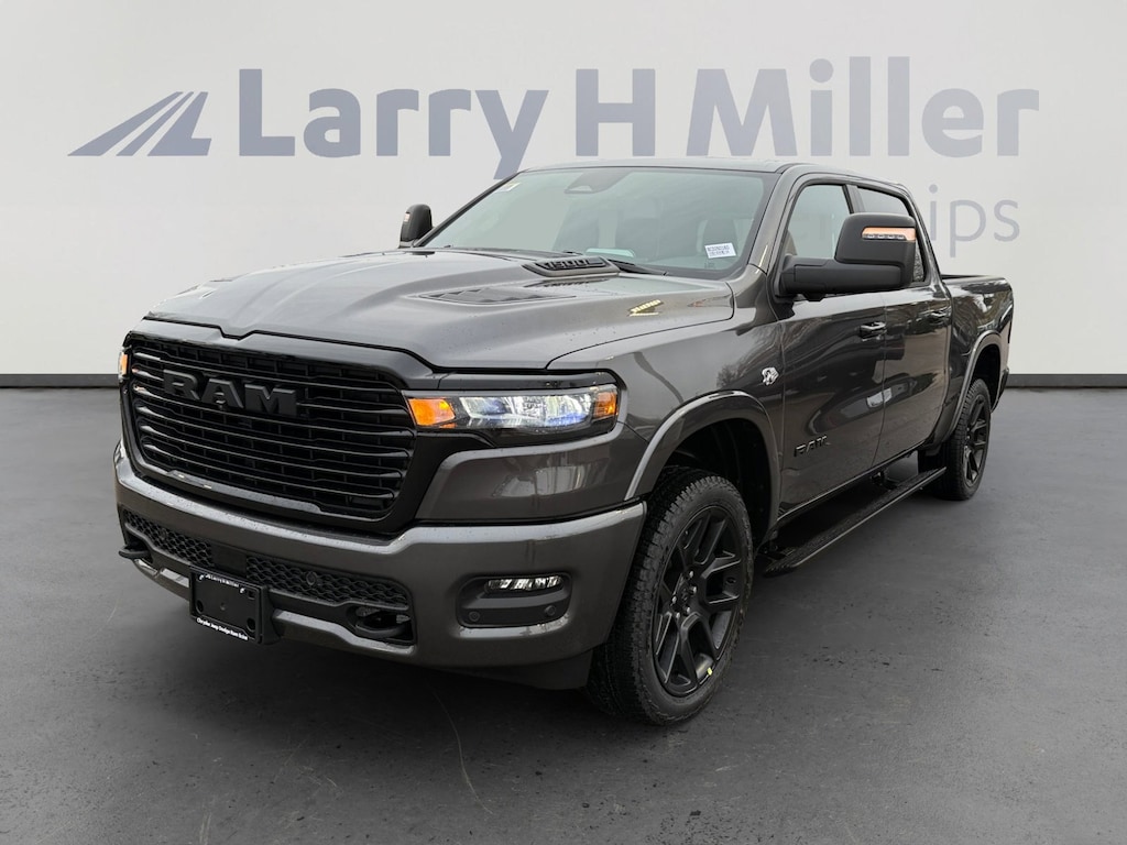 27H 2S6 2TH 4NU 4UQ A67 AHC ALQ ASH AWL CLF DFR DMH EZL GJX9 GWJ MY7 PAU YGE, 3.92 REAR AXLE RATIO, MYFLEXCARE SERVICE PLAN, POWER DEPLOYABLE RUNNING BOARDS, TIRES: 285/45R22XL BSW ALL TERRAIN, BLACK POWER-FOLD TRAILER TOW MIRRORS -inc: Forward & Reverse Utility Lights Trailer Tow Mirrors Mirror Clearance/Running Lights Black Exterior Mirrors Power Telescoping Mirrors Auto Dim Exterior Passenger Mirror Power-Adjustable Convex Aux Mirrors, LARAMIE LEVEL 2 EQUIPMENT GROUP -inc: Rain Sensitive Windshield Wipers 14.4" Touchscreen Display Front Passenger Interactive Display Radio: Uconnect 5 Nav w/14.4" Display harman/kardon 19 Speaker Premium Sound Cluster 12" TFT Color Display Power Tailgate, TRAILER TOW GROUP -inc: Trailer Reverse Steering Control Trailer Brake Control Trailer Tire Pressure Monitoring System, WHEELS: 22" X 9" FORGED ALUMINUM -inc: Tires: 285/45R22XL BSW All Season Pirelli Brand Tires, BLACK LEATHER TRIMMED BUCKET SEATS, NIGHT EDITION -inc: Black Headlamp Bezels Wheels: 22" x 9" Forged Aluminum Tires: 285/45R22XL BSW All Season Pirelli Brand Tires Proximity Approach/Departure Lamps Anti-Spin Differential Rear Axle Accent Color Door Handles Black Interior Accents Body Color Front Bumper Grille Surround 3 Black Texture 2 Black Body Color Rear Bumper w/Step Pads RAM Grille Badge - Black Black Painted Exterior Mirrors Caps Exterior Mirrors Approach Lamps Accent Color Premium Power Mirrors Sport Performance Hood Black Exterior Truck Badging Accent Color Tailgate Handle Dual Exhaust w/Black Tips Black Tail Lamp Bezels, MANUFACTURER'S STATEMENT OF ORIGIN, RADIO: UCONNECT 5 NAV W/14.4" DISPLAY, DUAL-PANE PANORAMIC SUNROOF -inc: LED Dome/Reading Lamp Dome Dual LED Reading Lamp, ADVANCED SAFETY GROUP II -inc: Exterior Mirrors Approach Lamps Active Driving Assist System Surround View Camera System Evasive Steer Assist Drowsy Driver Detection Intersection Collision Assist System Traffic Sign Recognition 12-Way/1-Way Trailer Connector, OFF ROAD GROUP -inc: Off Road Decals Steering Gear Skid Plate Falken Brand Tires Raised Ride Height Front Extra HD Shock Absorbers Rear Extra HD Shock Absorbers Full Size Spare Tire Tow Hooks E-Locker Rear Axle Transfer Case Skid Plate Fuel Tank Skid Plate Selec-Speed Control, TRANSMISSION: 8-SPEED AUTOMATIC (8HP75) (STD), MOPAR FRONT & REAR RUBBER FLOOR MATS, QUICK ORDER PACKAGE 27H LARAMIE -inc: Engine: 5.7L V8 HEMI MDS VVT eTorque Transmission: 8-Speed Automatic (8HP75), TRAILER BRAKE CONTROL, ENGINE: 5.7L V8 HEMI MDS VVT ETORQUE -inc: 48V Belt Starter Generator Heavy Duty Engine Cooling Passive Tuned Mass Damper Delete Alternator Passive Cold End Exhaust 18" Aluminum Spare Wheel, FRONT LICENSE PLATE BRACKET, E-LOCKER REAR AXLE, GRANITE CRYSTAL METALLIC CLEARCOAT, Four Wheel Drive, Tow Hitch, Power Steering, ABS, 4-Wheel Disc Brakes, Brake Assist, Aluminum Wheels, Tires - Front Performance, Tires - Rear Performance, Conventional Spare Tire, Power Mirror(s), Integrated Turn Signal Mirrors, Power Folding Mirrors, Heated Mirrors, Privacy Glass, Intermittent Wipers, Variable Speed Intermittent Wipers, Power Door Locks, Daytime Running Lights, Automatic Headlights, LED Headlights, Fog Lamps, Automatic Highbeams, AM/FM Stereo, Navigation System, Satellite Radio, Bluetooth Connection, HD Radio, Requires Subscription, Premium Sound System, MP3 Capability, Steering Wheel Audio Controls, Auxiliary Audio Input, Premium Sound System, Satellite Radio, Requires Subscription, Power Driver Seat, Power Passenger Seat, Driver Adjustable Lumbar, Seat Memory, Heated Front Seat(s), Cooled Front Seat(s), Power Driver Seat, Driver Adjustable Lumbar, Power Passenger Seat, Passenger Adjustable Lumbar, Pass-Through Rear Seat, Heated Rear Seat(s), Rear Bench Seat, Adjustable Steering Wheel, Trip Computer, Power Windows, Leather Steering Wheel, Heated Steering Wheel, Keyless Entry, Power Door Locks, Keyless Entry, Power Door Locks, Keyless Start, Universal Garage Door Opener, Cruise Control, Adaptive Cruise Control, Climate Control, Multi-Zone A/C, A/C, Woodgrain Interior Trim, Leather Seats, Bucket Seats, Premium Synthetic Seats, Auto-Dimming Rearview Mirror, Driver Vanity Mirror, Passenger Vanity Mirror, Driver Illuminated Vanity Mirror, Passenger Illuminated Visor Mirror, Floor Mats, Remote Engine Start, Keyless Start, Remote Engine Start, Smart Device Integration, Requires Subscription, Smart Device Integration, Seat Memory, Navigation System, Mirror Memory, WiFi Hotspot, Bluetooth Connection, Power Windows, Power Door Locks, Trip Computer, Immobilizer, Security System, Traction Control, Stability Control, Traction Control, Front Side Air Bag, Rear Parking Aid, Blind Spot Monitor, Cross-Traffic Alert, Front Collision Mitigation, Lane Departure Warning, Lane Keeping Assist, Lane Departure Warning, Tire Pressure Monitor, Driver Air Bag, Passenger Air Bag, Front Head Air Bag, Rear Head Air Bag, Passenger Air Bag Sensor, Child Safety Locks, Back-Up Camera