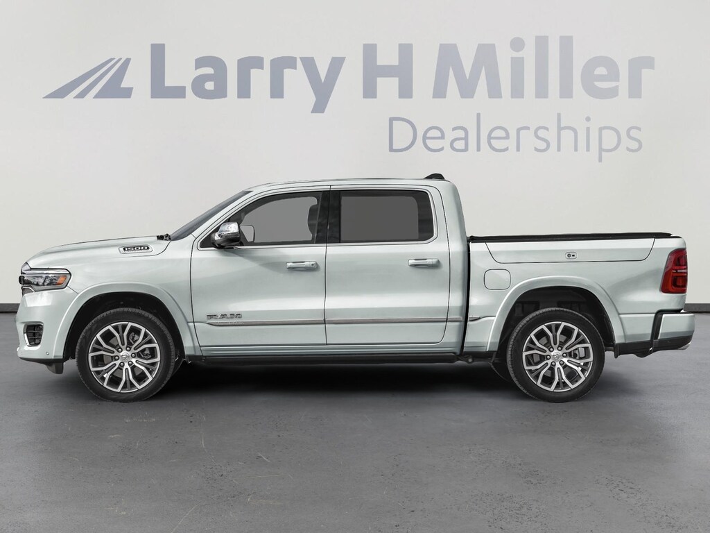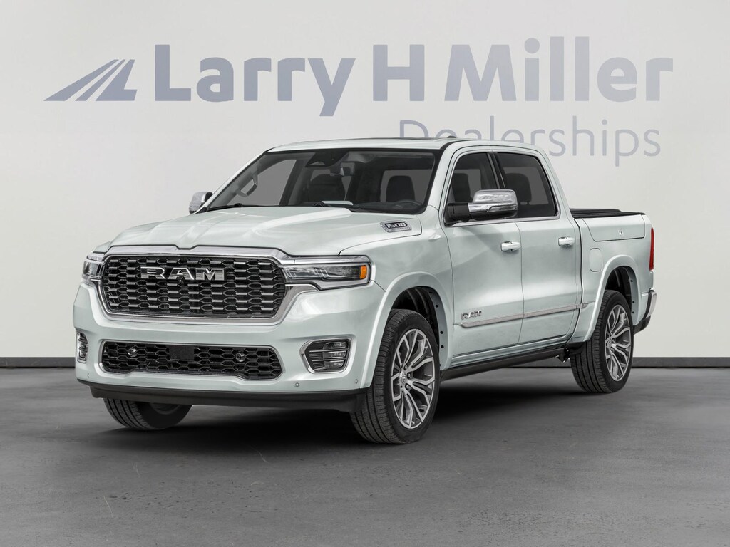 Ivory White Tri-Coat Pearlcoat 2026 Ram 1500 Tungsten 4WD 8-Speed Automatic 3.0L I6 12-Way/1-Way Trailer Connector, 3.92 Rear Axle Ratio, 4-Wheel Disc Brakes, ABS brakes, Adjustable pedals, Air Conditioning, Alloy wheels, AM/FM radio, Apple CarPlay/Android Auto, Audio memory, Auto High-beam Headlights, Auto Power-Folding Mirrors, Auto-dimming door mirrors, Auto-Dimming Exterior Driver Mirror, Auto-Dimming Exterior Passenger Mirror, Auto-dimming Rear-View mirror, Auto-leveling suspension, Automatic temperature control, Bodyside moldings, Brake assist, Bumpers: body-color, Chrome Exterior Mirrors, Chrome Power-Fold Trailer Tow Mirrors, Compass, Delay-off headlights, Digital 3.0 Rear View Auto Dim Mirror, Driver door bin, Driver vanity mirror, Dual front impact airbags, Dual front side impact airbags, Electronic Stability Control, Exterior Mirrors Courtesy Lamps, Exterior Mirrors w/Heating Element, Exterior Mirrors w/Memory, Exterior Mirrors w/Supplemental Signals, Exterior Parking Camera Rear, Forward & Reverse Utility Lights, Front anti-roll bar, Front Bucket Seats, Front Center Armrest w/Storage, Front dual zone A/C, Front fog lights, Front License Plate Bracket, Front reading lights, Front wheel independent suspension, Fully automatic headlights, Garage door transmitter, Heads-Up Display, Heated door mirrors, Heated front seats, Heated rear seats, Heated steering wheel, Illuminated entry, Leather steering wheel, Low tire pressure warning, Manufacturer's Statement of Origin, Memory seat, Mirror Clearance/Running Lights, Multi-Function Tailgate, MyFlexCare Service Plan, Navigation System, Occupant sensing airbag, Outside temperature display, Overhead airbag, Overhead console, Panic alarm, Passenger door bin, Passenger vanity mirror, Pedal memory, Power adjustable front head restraints, Power door mirrors, Power driver seat, Power moonroof, Power passenger seat, Power steering, Power Telescoping Mirrors, Power windows, Power-Adjustable Convex Aux Mirrors, Premium Leather Bucket Seats, Quick Order Package 22V Tungsten, Radio data system, Radio: Uconnect 5 Nav w/14.4 Display, Rain sensing wipers, RAM's Head Badge, Rear anti-roll bar, Rear reading lights, Rear seat center armrest, Rear step bumper, Rear window defroster, Remote keyless entry, Remote Tailgate Release, Security system, Speed control, Split folding rear seat, Steering wheel mounted audio controls, Tachometer, Telescoping steering wheel, Tilt steering wheel, Towing Technology Group, Traction control, Trailer Brake Control, Trailer Hitch Line-Up Assist, Trailer Light Check, Trailer Reverse Guidance, Trailer Reverse Steering Control, Trailer Tire Pressure Monitoring System, Trailer Tow Group, Trailer Tow Mirrors, Trip computer, Turn signal indicator mirrors, Variably intermittent wipers, Ventilated front seats, Ventilated rear seats, Voltmeter, Wheels: 22 x 9 Polish/Painted w/Inserts.
