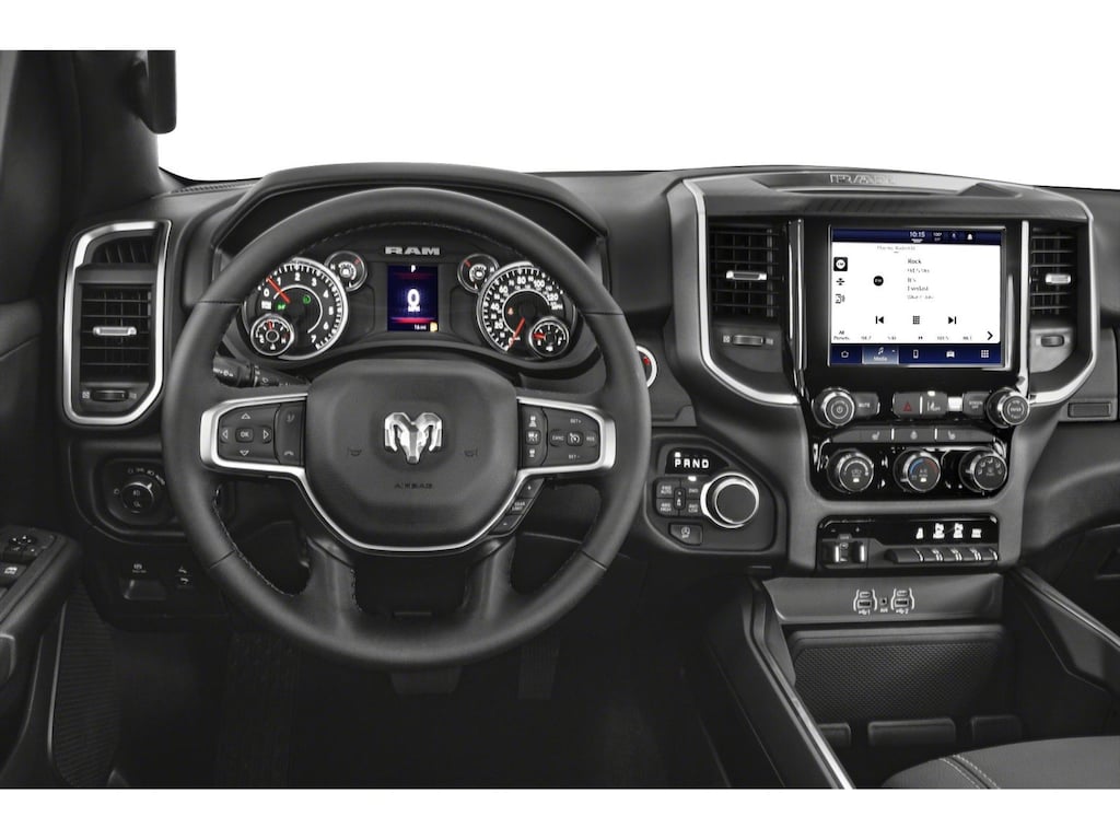 Diamond Black Crystal Pearlcoat 2026 Ram 1500 Big Horn/Lone Star 4WD 8-Speed Automatic HEMI 5.7L V8 Multi Displacement VVT eTorque 115V Auxiliary Power Outlet, 115V Auxiliary Rear Power Outlet, 12 Touchscreen Display, 2nd Row in Floor Storage Bins, 3 Rear Seat Head Restraints, 4 Way Front Headrests, 4-Wheel Disc Brakes, 400W Inverter, 48V Belt Starter Generator, 4G LTE Wi-Fi Hot Spot, 6 Speakers, 9 Amplified Speakers with Subwoofer, ABS brakes, Accent Color Tailgate Handle, Air Conditioning, Air Conditioning ATC with Dual Zone Control, Alloy wheels, AM/FM radio, Apple CarPlay, Apple CarPlay/Android Auto, Auto High-beam Headlights, Auto Power-Folding Mirrors, Auto-Dimming Exterior Driver Mirror, Auto-Dimming Rear-View Mirror, Big Horn Level 2 Equipment Group, Black Exterior Mirrors, Black Premium Power Mirrors, Body Color Fender Flares, Brake assist, Bucket Seats, Bumpers: chrome, Center Console Parts Module, Cloth Bucket Seats, Cluster 12 TFT Color Display, Cluster 7.0 TFT Color Display, Compass, Configurable Drive Mode, Connected Travel and Traffic Services, Connectivity - US/Canada, Convex Wide-Angle Exterior Mirror Insert, Delay-off headlights, Deluxe Cloth Bucket Seats, Disassociated Touchscreen Display, Driver door bin, Dual front impact airbags, Dual front side impact airbags, E-Locker Rear Axle, Electronic Stability Control, Exterior Mirrors Courtesy Lamps, Exterior Mirrors with Heating Element, Exterior Mirrors with Supplemental Signals, Front anti-roll bar, Front Bucket Seats, Front Center Armrest w/Storage, Front fog lights, Front reading lights, Front Seat Back Map Pockets, Front wheel independent suspension, Full Length Floor Console, Fully automatic headlights, Global Telematics Box Module, Glove Box Lamp, Google Android Auto, GPS Antenna Input, GPS Navigation, HD Radio, Heated door mirrors, Heated Front Seats, Heated Steering Wheel, Illuminated entry, Integrated Center Stack Radio, Integrated Voice Command with Bluetooth, Leather Wrapped Steering Wheel, LED Dome Lamp with on/Off Switch, LED Footwell Lighting, Low tire pressure warning, Manual Adjust 4-Way Driver Seat, Manual Adjust 4-Way Front Passenger Seat, Manual Folding Exterior Mirrors, Manufacturer's Statement of Origin, Media Hub with 2 Charge Only USBs, MOPAR Front and Rear Rubber Floor Mats, Occupant sensing airbag, Outside temperature display, Overhead airbag, Overhead console, Overhead LED Lamps, Panic alarm, ParkView Rear Back-Up Camera, Passenger door bin, Passenger vanity mirror, Power 2-Way Driver Lumbar Adjust, Power Adjust 8-Way Driver Seat, Power Adjustable Pedals, Power door mirrors, Power steering, Power windows, Premium Overhead Console, Quick Order Package 27Z Big Horn, Radio data system, Radio: Uconnect 5 Navigation with 12.0 Display, Radio: Uconnect 5 W with 8.4 Display, RAM Grille Badge - Chrome, Rear 60/40 Folding Seat, Rear anti-roll bar, Rear Center Armrest, Rear Power Sliding Window, Rear step bumper, Rear Window Defroster, Remote keyless entry, Remote Tailgate Release, Security Alarm, SiriusXM Radio Service, SiriusXM with 360L, Speed control, Steering Wheel Mounted Audio Controls, Sun Visors with Illuminated Vanity Mirrors, Supplier Part Tracking (J-1), Tachometer, Telescoping steering wheel, Tilt steering wheel, Traction control, Trailer Brake Control, Trailer Reverse Steering Control, Trailer Tire Pressure Monitoring System, Trailer Tow Group II, Trip computer, Universal Garage Door Opener, USB Host Flip, Variably intermittent wipers, Voltmeter.