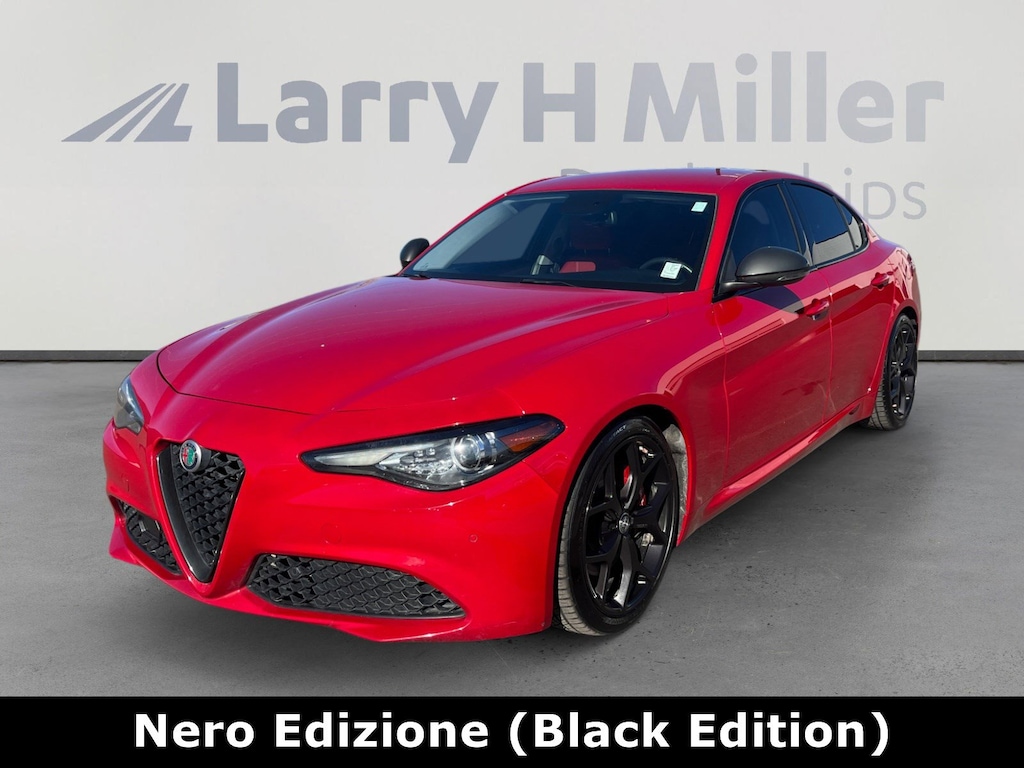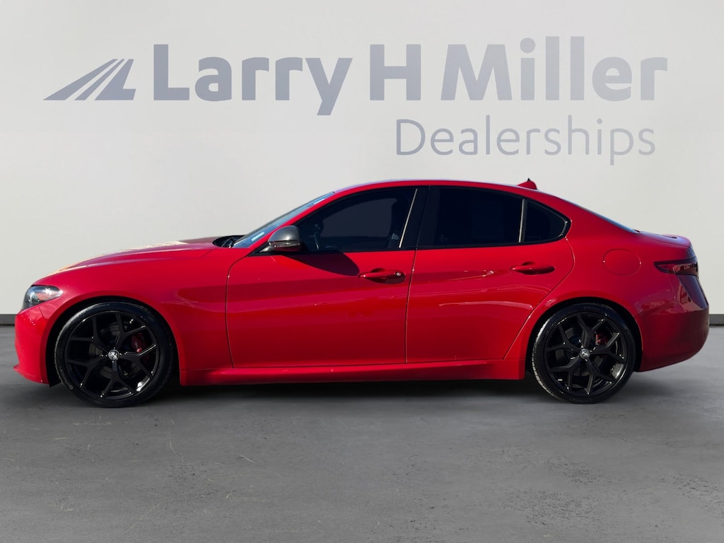Larry H. MIller Chrysler Dodge Ram Fiat offers this 2019 Alfa Rosso Alfa Romeo Giulia Ti RWD. It is well equipped and includes these standard and optional features and benefits: 8 Speakers, 8.8 Widescreen Color Display, Apple CarPlay/Android Auto, Auto-dimming Rear-View mirror, Dual front impact airbags, Dual front side impact airbags, Exterior Parking Camera Rear, Front dual zone A/C, Garage door transmitter, Heated door mirrors, Heated front seats, Heated steering wheel, Illuminated entry, Knee airbag, Leather Seats, Leather steering wheel, Memory seat, Outside temperature display, Panic alarm, Power door mirrors, Power driver seat, Radio: AM/FM Bluetooth 8.8, Rain sensing wipers, Rear fog lights, Security system, Speed-Sensitive Wipers, Telescoping steering wheel, Tilt steering wheel, Turn signal indicator mirrors, Wheels: 18 x 8.0 Double Y-Spoke Aluminum, 4-Wheel Disc Brakes, ABS brakes, Air Conditioning, Alloy wheels, AM/FM radio: SiriusXM, Automatic temperature control, Brake assist, Bumpers: body-color, Compass, Delay-off headlights, Driver door bin, Driver vanity mirror, Electronic Stability Control, Four wheel independent suspension, Front anti-roll bar, Front Bucket Seats, Front Center Armrest, Front reading lights, Fully automatic headlights, Genuine wood console insert, Genuine wood dashboard insert, Genuine wood door panel insert, High intensity discharge headlights: Bi-Xenon, Low tire pressure warning, Occupant sensing airbag, Overhead airbag, Overhead console, Passenger door bin, Passenger vanity mirror, Power passenger seat, Power steering, Power windows, Radio data system, Rear anti-roll bar, Rear reading lights, Rear seat center armrest, Rear window defroster, Remote keyless entry, Speed control, Speed-sensing steering, Split folding rear seat, Steering wheel mounted audio controls, Tachometer, Traction control, Trip computer, and Variably intermittent wipers.
