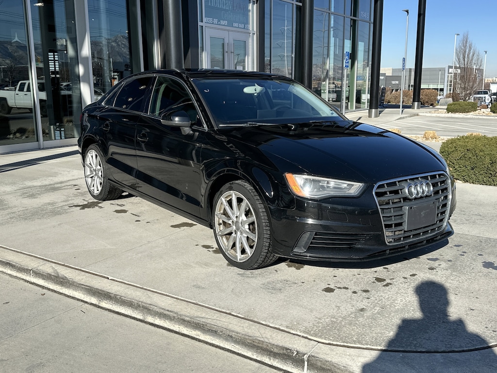 Mercedes-Benz of Draper proudly offers this 2015 Brilliant Black Audi A3 2.0T Premium Plus AWD . It is well equipped and includes these features and benefits: Aluminum Interior Package, Aluminum Style Package (Aluminum Mistral Decorative Inlays and High-Gloss Aluminum Window Surrounds), Audi MMI Navigation Plus w/Audi Connect (8-Color Driver Information System, Audi MMI Navigation High Control Panel, and Radio: Audi MMI Navigation Plus w/MMI Touch), Cold Weather Package (3-Step Heated Front Seats, Heated Side Mirrors, and Heated Windshield Washer Nozzles), Premium Plus Package (12-Way Power Passenger Seat w/4-Way Power Lumbar, Audi Advanced Key, Audi Music Interface w/iPod Integration, and Wheels: 8.0J x 18 10-Spoke-Audi-Exclusive), quattro, Black Leather, 10 Speakers, 4-Wheel Disc Brakes, ABS brakes, Air Conditioning, Alloy wheels, AM/FM radio: SiriusXM, Anti-whiplash front head restraints, Automatic temperature control, Brake assist, Bumpers: body-color, CD player, Delay-off headlights, Driver door bin, Driver vanity mirror, Dual front impact airbags, Dual front side impact airbags, Electronic Stability Control, Four wheel independent suspension, Front anti-roll bar, Front Bucket Seats, Front Center Armrest, Front dual zone A/C, Front reading lights, High intensity discharge headlights: Xenon plus, Illuminated entry, Knee airbag, Leather Seating Surfaces, Leather Shift Knob, Leather steering wheel, Low tire pressure warning, Occupant sensing airbag, Outside temperature display, Overhead airbag, Panic alarm, Passenger door bin, Passenger vanity mirror, Power door mirrors, Power driver seat, Power moonroof, Power steering, Power windows, Radio data system, Radio: Audi Concert AM/FM/SiriusXM w/CD Player, Rain sensing wipers, Rear anti-roll bar, Rear fog lights, Rear reading lights, Rear seat center armrest, Rear window defroster, Remote keyless entry, Security system, Speed control, Speed-sensing steering, Speed-Sensitive Wipers, Split folding rear seat, Steering wheel mounted audio controls, Tachometer, Telescoping steering wheel, Tilt steering wheel, Traction control, Trip computer, Turn signal indicator mirrors, Variably intermittent wipers, and Wheels: 7.5J x 17 5-Spoke-Star-Design. Burmester is a registered trademark of Burmester Audiosysteme GmbH, Berlin, Germany. Bluetooth is a registered Mark of Bluetooth SIG, Inc.