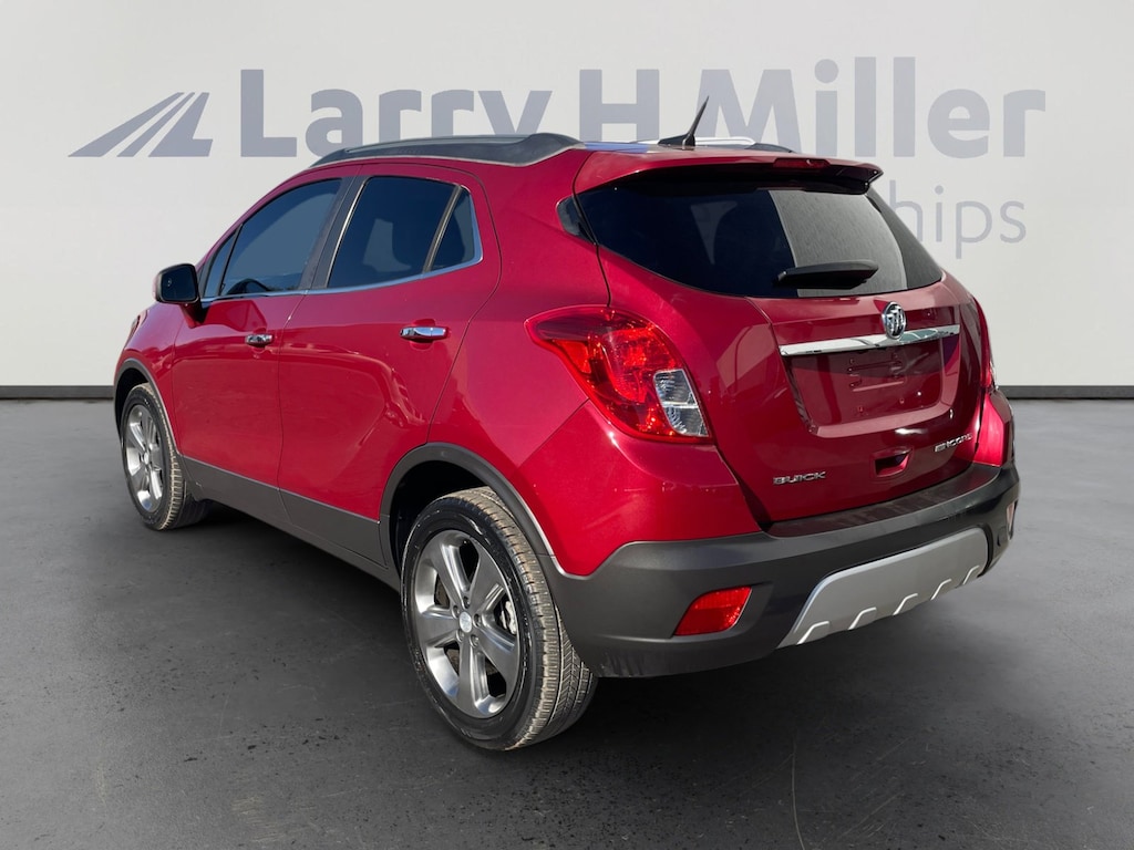 This 2013 Ruby Red Metallic Buick Encore Leather FWD is well equipped and includes these features and benefits: 1SL Equipment Group (120-Volt Power Outlet, Auto-Dimming Inside Rear-View Mirror, Dual-Zone Automatic Climate Control, Front Fog Lamps, and Remote Vehicle Starter System), 3.53 Final Drive Ratio, 4-Wheel Disc Brakes, 6 Speakers, ABS brakes, Air Conditioning, Alloy wheels, AM/FM radio: SiriusXM, Auto-dimming Rear-View mirror, Automatic temperature control, Brake assist, Bumpers: body-color, Cargo Net, CD player, Compass, Delay-off headlights, Driver door bin, Driver vanity mirror, Driver's Seat Mounted Armrest, Dual front impact airbags, Dual front side impact airbags, Electronic Stability Control, Emergency communication system: OnStar Directions & Connections, Exterior Parking Camera Rear, Front anti-roll bar, Front Bucket Seats, Front dual zone A/C, Front fog lights, Front reading lights, Front wheel independent suspension, Fully automatic headlights, Heated door mirrors, Heated Driver & Front Passenger Seats, Heated front seats, Heated steering wheel, Illuminated entry, Knee airbag, Leather steering wheel, Leather-Appointed Seat Trim, Low tire pressure warning, Memory seat, Occupant sensing airbag, Outside temperature display, Overhead airbag, Panic alarm, Passenger door bin, Passenger vanity mirror, Power door mirrors, Power driver seat, Power passenger seat, Power steering, Power windows, Premium audio system: IntelliLink, Radio data system, Radio: AM/FM Audio System w/MP3 CD Player, Radio: AM/FM Audio System w/Nav/Single CD Player, Rear seat center armrest, Rear side impact airbag, Rear window defroster, Rear window wiper, Remote keyless entry, Ride & Handling Suspension, Roof rack: rails only, Security system, SiriusXM Satellite Radio, Speed control, Speed-sensing steering, Split folding rear seat, Spoiler, Steering wheel mounted audio controls, Tachometer, Telescoping steering wheel, Tilt steering wheel, Traction control, Trip computer, Variably intermittent wipers, and Wheels: 18 Painted Cast Aluminum. 120-Volt Power Outlet, 1SL Equipment Group, 3.53 Final Drive Ratio, 4-Wheel Disc Brakes, 6 Speakers, ABS brakes, Air Conditioning, Alloy wheels, AM/FM radio: SiriusXM, Auto-Dimming Inside Rear-View Mirror, Auto-dimming Rear-View mirror, Automatic temperature control, Brake assist, Bumpers: body-color, Cargo Net, CD player, Compass, Delay-off headlights, Driver door bin, Driver vanity mirror, Driver's Seat Mounted Armrest, Dual front impact airbags, Dual front side impact airbags, Dual-Zone Automatic Climate Control, Electronic Stability Control, Emergency communication system: OnStar Directions & Connections, Exterior Parking Camera Rear, Front anti-roll bar, Front Bucket Seats, Front dual zone A/C, Front Fog Lamps, Front fog lights, Front reading lights, Front wheel independent suspension, Fully automatic headlights, Heated door mirrors, Heated Driver & Front Passenger Seats, Heated front seats, Heated steering wheel, Illuminated entry, Knee airbag, Leather steering wheel, Leather-Appointed Seat Trim, Low tire pressure warning, Memory seat, Occupant sensing airbag, Outside temperature display, Overhead airbag, Panic alarm, Passenger door bin, Passenger vanity mirror, Power door mirrors, Power driver seat, Power passenger seat, Power steering, Power windows, Premium audio system: IntelliLink, Radio data system, Radio: AM/FM Audio System w/MP3 CD Player, Radio: AM/FM Audio System w/Nav/Single CD Player, Rear seat center armrest, Rear side impact airbag, Rear window defroster, Rear window wiper, Remote keyless entry, Remote Vehicle Starter System, Ride & Handling Suspension, Roof rack: rails only, Security system, SiriusXM Satellite Radio, Speed control, Speed-sensing steering, Split folding rear seat, Spoiler, Steering wheel mounted audio controls, Tachometer, Telescoping steering wheel, Tilt steering wheel, Traction control, Trip computer, Variably intermittent wipers, Wheels: 18 Painted Cast Aluminum.