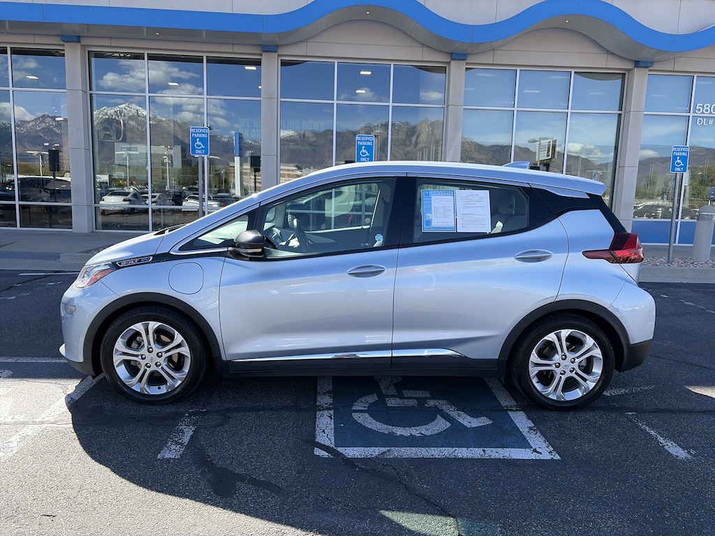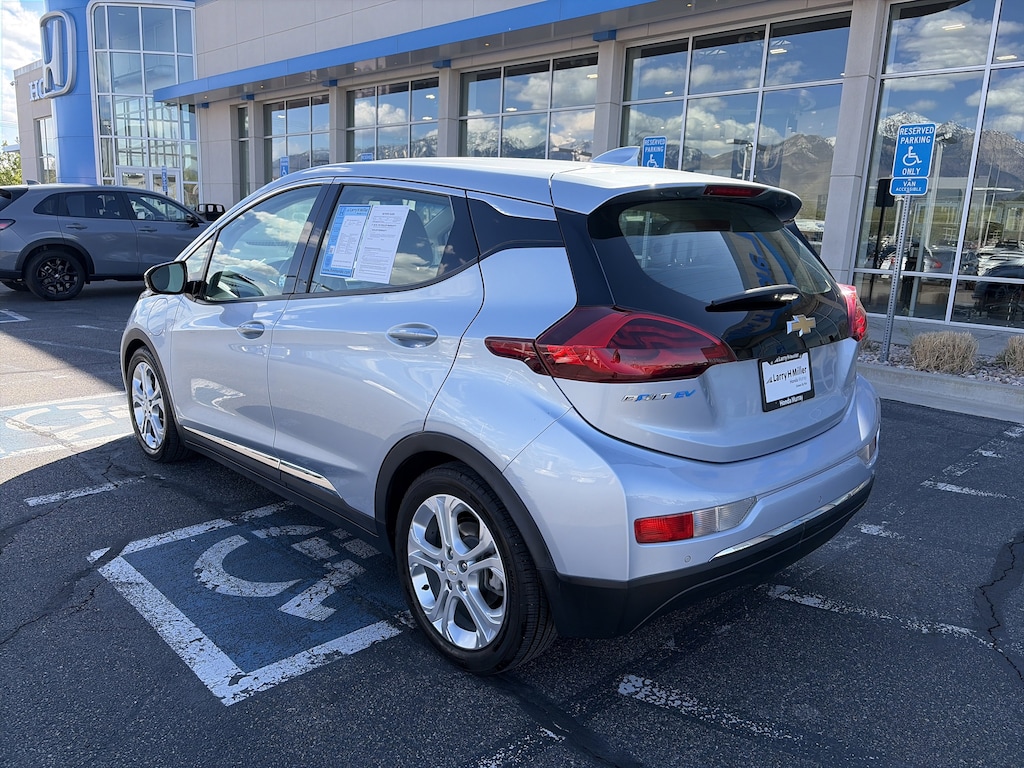 Larry H. Miller Honda Murray offers this 2017 Arctic Blue Metallic Chevrolet Bolt EV LT FWD It is loaded with many standard and optional features including: Comfort & Convenience Package (3-Spoke Leather-Wrapped Steering Wheel, Auto-Dimming Inside Rear-View Mirror, Heated Driver & Front Passenger Seats, and Heated Steering Wheel), Driver Confidence Package (Lane Change Alert w/Side Blind Zone Alert, Rear Cross-Traffic Alert, and Rear Parking Assist), Preferred Equipment Group 2LT, 17 Painted Aluminum Wheels, 2 USB Ports & Auxiliary Input Jack, 4-Wheel Disc Brakes, 6 Speakers, 6-Speaker Audio System, 6-Way Manual Driver Seat Adjuster, 6-Way Manual Passenger Seat Adjuster, ABS brakes, Air Conditioning, Alloy wheels, AM/FM radio: SiriusXM, Apple CarPlay/Android Auto, Automatic temperature control, Black Grille, Brake assist, Bumpers: body-color, Compass, DC Fast Charging, Delay-off headlights, Deluxe Cloth Seat Trim, Driver door bin, Driver vanity mirror, Dual front impact airbags, Dual front side impact airbags, Electronic Stability Control, Emergency communication system: OnStar Guidance, Exterior Parking Camera Rear, Front & Rear All-Weather Floor Mats, Front anti-roll bar, Front Bucket Seats, Front Center Armrest, Front License Plate Bracket, Front reading lights, Front wheel independent suspension, Fully automatic headlights, Heated door mirrors, High-Intensity Discharge Headlights, Illuminated entry, Knee airbag, Low tire pressure warning, Occupant sensing airbag, Outside temperature display, Overhead airbag, Overhead console, Panic alarm, Passenger door bin, Passenger vanity mirror, Power door mirrors, Power steering, Power windows, Premium audio system: Chevrolet MyLink, Radio: Chevrolet MyLink AM/FM Stereo, Rear side impact airbag, Rear window defroster, Rear window wiper, Remote keyless entry, Security system, SiriusXM Satellite Radio, Speed control, Split folding rear seat, Spoiler, Steering wheel mounted audio controls, Telescoping steering wheel, Tilt steering wheel, Traction control, Trip computer, and Variably intermittent wipers.