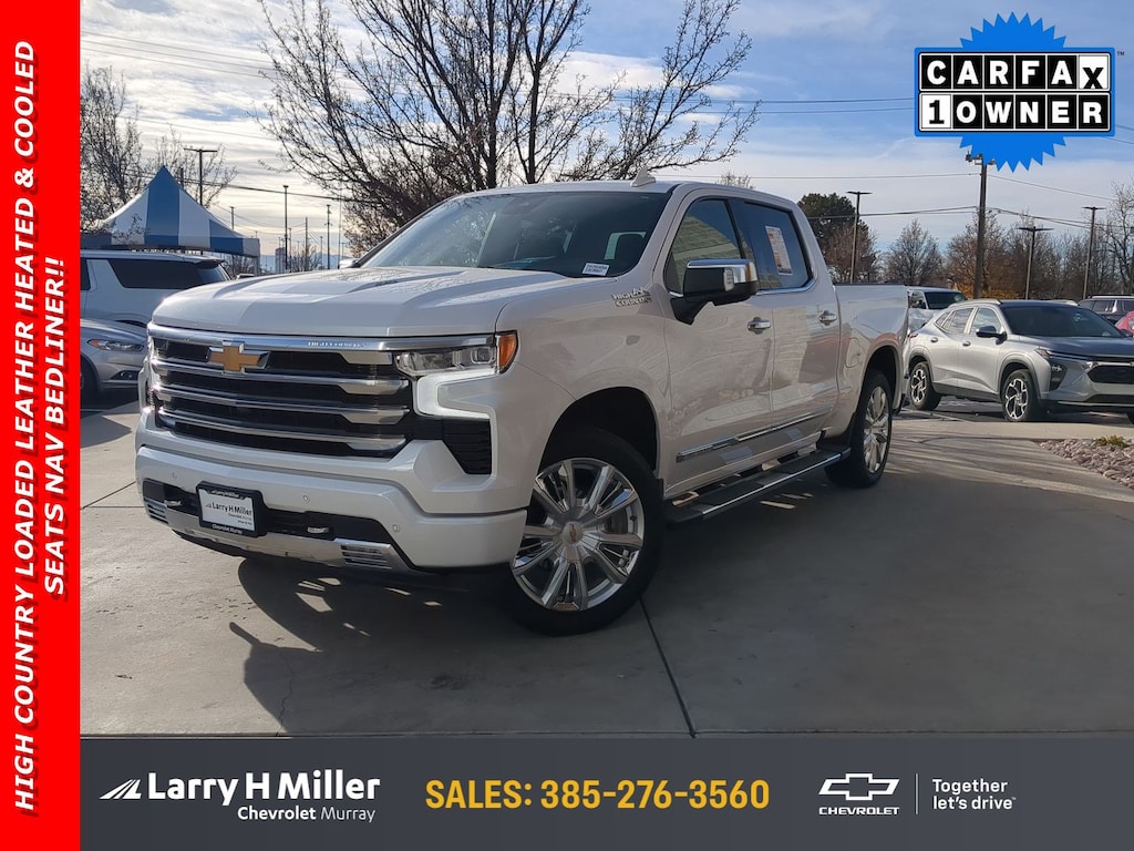 *2023 Chevrolet Silverado 1500 High Country -- White -- One Owner -- 12,000 Miles**VIN:* 1GCUDJELXPZ128105Experience premium comfort, advanced technology, and strong performance in this *one-owner 2023 Chevrolet Silverado 1500 High Country*. With just *12,000 miles*, this truck is exceptionally clean and ready for its next driver.Finished in a sleek *white* exterior, this *Crew Cab* High Country stands out with its luxury-focused design, upscale materials, and high-end features. It's built for those who want the toughness of a Silverado with the refinement of a premium trim.Under the hood is a powerful *6.2L V8 OHV 16V gasoline engine*, delivering excellent towing capability, smooth acceleration, and reliable performance. The truck features *rear-wheel drive with 4x4*, giving you confidence whether you're on the highway, job site, or off-road trail.*Key Highlights:* * 2023 Chevrolet Silverado 1500 High Country * White exterior * One owner * Only 12,000 miles * Crew Cab pickup * 6.2L V8 OHV 16V gasoline engine * Rear-wheel drive with 4x4 * VIN: 1GCUDJELXPZ128105Luxury, capability, and low miles make this High Country an excellent choice for anyone seeking a high-end truck with serious performance.Only 12,445 Miles! Delivers 20 Highway MPG and 16 City MPG! This Chevrolet Silverado 1500 delivers a Gas V8 6.2L/376 engine powering this Automatic transmission. WHEELS, 22" X 9" (55.9 CM X 22.9 CM) PAINTED ALUMINUM with Chrome inserts, TRANSMISSION, 10-SPEED AUTOMATIC with Electronic Transmission Range Selector, (ETRS), electronically controlled with overdrive, tow/haul mode and steering column paddle shifters. Includes Cruise Grade Braking and Powertrain Grade Braking (STD), TIRES, 275/50R22SL ALL-SEASON, BLACKWALL.*This Chevrolet Silverado 1500 Features the Following Options *TECHNOLOGY PACKAGE includes (DRZ) Rear Camera Mirror and (UV6) 15" Diagonal Head-Up Display (Includes (KSG) Adaptive Cruise Control and (UGN) Enhanced Automatic Emergency Braking. Includes (UGN) Enhanced automatic Emergency Braking on vehicles built prior to 6-13-2022. Vehicles built on or after 6-13-2022 will include (UHY) Automatic Emergency Braking.), SUSPENSION PACKAGE, ADAPTIVE RIDE CONTROL , SEATS, FRONT BUCKET with center console (STD) (Includes (EPH) Electronic Transmission Range Selector (console mounted).), REAR CAMERA MIRROR, INSIDE REARVIEW AUTO-DIMMING with full camera display, REAR AXLE, 3.23 RATIO, NOT EQUIPPED WITH WIRELESS CHARGING, SEE DEALER FOR DETAILS (Beginning October 26, 2022 through November 20, 2022, certain vehicles will be forced to include (00C) Not Equipped with Wireless Charging, which removes Wireless Charging. See the window label for the features on a specific vehicle.), NOT EQUIPPED WITH STEERING COLUMN LOCK, SEE DEALER FOR DETAILS, MULTICOLOR 15" DIAGONAL HEAD-UP DISPLAY, LPO, WHEEL LOCKS, SET OF 4 (dealer-installed) (Beginning with start of production, certain vehicles will be forced to include (RFV) Not Equipped with (SFE) Wheel Locks, LPO, which removes (SFE) Wheel Locks, LPO. See dealer for details or the window label for the features on a specific vehicle., LICENSE PLATE KIT, FRONT.*Visit Us Today *A short visit to Larry H Miller Chevrolet Murray located at 5500 South State St, Murray, UT 84107 can get you a tried-and-true Silverado 1500 today!