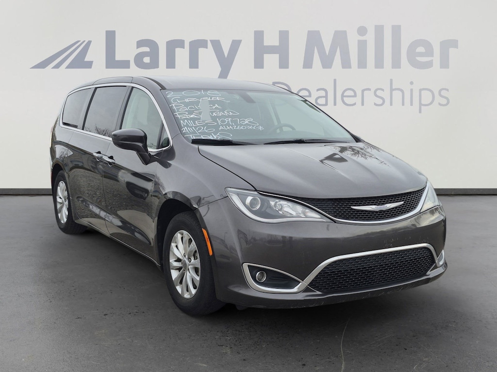 Recent Arrival! Granite Crystal Metallic Clearcoat This Pacifica Touring Plus is nicely equipped with Inflatable Spare Tire Kit (Portable Air Compressor w/o Sealant), Quick Order Package 27W, SafetyTec (DISC) (Blind Spot & Cross Path Detection and ParkSense Rear Park Assist w/Stop), Security Group (DISC) (Remote Start System and Security Alarm), 17 x 7.0 Aluminum Wheels, 3.25 Axle Ratio, 3rd row seats: split-bench, 4-Wheel Disc Brakes, 6 Speakers, ABS brakes, Air Conditioning, Alloy wheels, AM/FM radio: SiriusXM, Apple CarPlay, Apple CarPlay/Android Auto, Automatic temperature control, Black Seats, Brake assist, Bumpers: body-color, Cloth Bucket Seats, Compass, Delay-off headlights, Driver door bin, Driver vanity mirror, Driver's Seat Mounted Armrest, Dual front impact airbags, Dual front side impact airbags, Electronic Stability Control, Four wheel independent suspension, Front anti-roll bar, Front Bucket Seats, Front dual zone A/C, Front fog lights, Front reading lights, Fully automatic headlights, Garage door transmitter, Google Android Auto, GPS Antenna Input, Heated door mirrors, Illuminated entry, Integrated Voice Command w/Bluetooth, Knee airbag, Low tire pressure warning, Occupant sensing airbag, Outside temperature display, Overhead airbag, Overhead console, Panic alarm, ParkView Rear Back-Up Camera, Passenger door bin, Passenger seat mounted armrest, Passenger vanity mirror, Power door mirrors, Power driver seat, Power Liftgate, Power steering, Power windows, Radio data system, Radio: Uconnect 4 w/7 Display, Rear air conditioning, Rear reading lights, Rear window defroster, Rear window wiper, Reclining 3rd row seat, Remote keyless entry, Security system, Single Rear Overhead DVD System, SiriusXM Satellite Radio, Speed control, Split folding rear seat, Spoiler, Steering wheel mounted audio controls, Tachometer, Telescoping steering wheel, Tilt steering wheel, Touring Suspension, Traction control, Trip computer, USB Host Flip, Variably intermittent wipers, and Voltmeter.