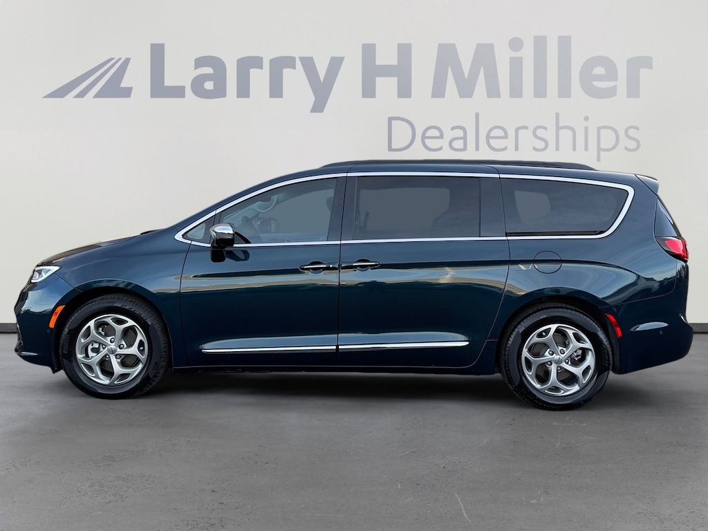This 2023 Fathom Blue Pearlcoat Chrysler Pacifica Limited FWD is well equipped and includes these features and benefits: Quick Order Package 27P, Safety Sphere (360 Surround View Camera System, Parallel & Perpendicular Park Assist w/Stop, and ParkSense Front/Rear Park Assist w/Stop), Uconnect Theater Family Group (115V Auxiliary Power Outlet, 19 harman/kardon Speakers w/Subwoofer, 3-Channel Video Remote Control, 3rd Row Remote Headrest Dumping, 760 Watt Amplifier, Amazon Fire TV Built-In, Blu-Ray/DVD Player/USB Port, FamCAM Interior Camera, Hands Free Sliding Doors, High Definition Multimedia Interface, Integrated Active Noise Cancellation, KeySense, Power Folding 3rd Row Seat, Seatback Video Screens, Stow N Vac Integrated Vacuum, and Video USB Port), 13 Speakers, 3.25 Axle Ratio, 3rd row seats: split-bench, 4-Wheel Disc Brakes, ABS brakes, Air Conditioning, Alloy wheels, AM/FM radio: SiriusXM 360L, Apple CarPlay/Android Auto, Audio memory, Auto-dimming Rear-View mirror, Automatic temperature control, Black Seats, Bodyside moldings, Brake assist, Bumpers: body-color, Compass, Delay-off headlights, Driver door bin, Driver vanity mirror, Driver's Seat Mounted Armrest, Dual front impact airbags, Dual front side impact airbags, Electronic Stability Control, Emergency communication system: SiriusXM Guardian, Four wheel independent suspension, Front anti-roll bar, Front Bucket Seats, Front dual zone A/C, Front fog lights, Front reading lights, Fully automatic headlights, Garage door transmitter, Heated door mirrors, Heated front seats, Heated rear seats, Heated steering wheel, Illuminated entry, Knee airbag, Low tire pressure warning, Memory seat, Nappa Leather Bucket Seats, Navigation System, Occupant sensing airbag, Outside temperature display, Overhead airbag, Overhead console, Panic alarm, ParkView Rear Back-Up Camera, Passenger door bin, Passenger seat mounted armrest, Passenger vanity mirror, Power door mirrors, Power driver seat, Power Liftgate, Power moonroof, Power passenger seat, Power steering, Power windows, Radio data system, Radio: Uconnect 5 Nav w/10.1 Display, Rain sensing wipers, Rear air conditioning, Rear reading lights, Rear window defroster, Rear window wiper, Reclining 3rd row seat, Remote keyless entry, Roof rack, Security system, Speed control, Split folding rear seat, Spoiler, Steering wheel mounted audio controls, Tachometer, Telescoping steering wheel, Tilt steering wheel, Touring Suspension, Traction control, Trip computer, Turn signal indicator mirrors, Variably intermittent wipers, Ventilated front seats, Voltmeter, and Wheels: 18 x 7.5 Painted Aluminum Design 2. 115V Auxiliary Power Outlet, 13 Speakers, 19 harman/kardon Speakers w/Subwoofer, 3-Channel Video Remote Control, 3.25 Axle Ratio, 360 Surround View Camera System, 3rd Row Remote Headrest Dumping, 3rd row seats: split-bench, 4-Wheel Disc Brakes, 760 Watt Amplifier, ABS brakes, Air Conditioning, Alloy wheels, AM/FM radio: SiriusXM 360L, Amazon Fire TV Built-In, Apple CarPlay/Android Auto, Audio memory, Auto-dimming Rear-View mirror, Automatic temperature control, Black Seats, Blu-Ray/DVD Player/USB Port, Bodyside moldings, Brake assist, Bumpers: body-color, Compass, Delay-off headlights, Driver door bin, Driver vanity mirror, Driver's Seat Mounted Armrest, Dual front impact airbags, Dual front side impact airbags, Electronic Stability Control, Emergency communication system: SiriusXM Guardian, FamCAM Interior Camera, Four wheel independent suspension, Front anti-roll bar, Front Bucket Seats, Front dual zone A/C, Front fog lights, Front reading lights, Fully automatic headlights, Garage door transmitter, Hands Free Sliding Doors, Heated door mirrors, Heated front seats, Heated rear seats, Heated steering wheel, High Definition Multimedia Interface, Illuminated entry, Integrated Active Noise Cancellation, KeySense, Knee airbag, Low tire pressure warning, Memory seat, Nappa Leather Bucket Seats, Navigation System, Occupant sensing airbag, Outside