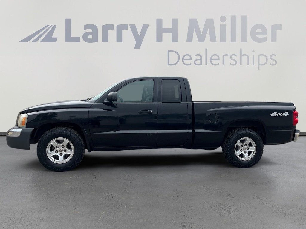 This 2005 Black Clearcoat Dodge Dakota SLT 4WD is well equipped and includes these features and benefits: Heavy Duty Service Group, Interior Convenience Group (Overhead Console), Quick Order Package 26E (6-Way Power Driver Seat and Manual Driver Lumbar Adjust), Security Group (Security Alarm and Sentry Key Theft Deterrent System), Trailer Tow Group (7 Pin Wiring Harness, 750 Amp Maintenance Free Battery, Auxiliary Transmission Oil Cooler, Class IV Receiver Hitch, Exterior Mirrors Heating Element, Foldaway Multi-Functional 6x9 Power Mirrors, Heavy-Duty Engine Cooling, and Power Steering Cooler), 4.7L V8 MPI, 4WD, 16 x 8.0 Cast Aluminum Wheels, 3.55 Axle Ratio, 4 Speakers, ABS brakes, Air Conditioning, Alloy wheels, AM/FM Compact Disc w/Changer Control, AM/FM radio, CD player, Center Armrest Storage, Cloth 40/20/40 Split Bench Seat, Delay-off headlights, Driver door bin, Dual front impact airbags, Front anti-roll bar, Front Center Armrest w/Storage, Front fog lights, Front reading lights, Front wheel independent suspension, Heavy Duty Suspension, Illuminated entry, Occupant sensing airbag, Panic alarm, Passenger cancellable airbag, Passenger door bin, Passenger vanity mirror, Power door mirrors, Power steering, Power windows, Rear anti-roll bar, Rear step bumper, Remote keyless entry, Speed control, Tachometer, Tilt steering wheel, and Variably intermittent wipers. 4.7L V8 MPI, 4WD, 16 x 8.0 Cast Aluminum Wheels, 3.55 Axle Ratio, 4 Speakers, 6-Way Power Driver Seat, 7 Pin Wiring Harness, 750 Amp Maintenance Free Battery, ABS brakes, Air Conditioning, Alloy wheels, AM/FM Compact Disc w/Changer Control, AM/FM radio, Auxiliary Transmission Oil Cooler, CD player, Center Armrest Storage, Class IV Receiver Hitch, Cloth 40/20/40 Split Bench Seat, Delay-off headlights, Driver door bin, Dual front impact airbags, Exterior Mirrors Heating Element, Foldaway Multi-Functional 6x9 Power Mirrors, Front anti-roll bar, Front Center Armrest w/Storage, Front fog lights, Front reading lights, Front wheel independent suspension, Heavy Duty Service Group, Heavy Duty Suspension, Heavy-Duty Engine Cooling, Illuminated entry, Interior Convenience Group, Manual Driver Lumbar Adjust, Occupant sensing airbag, Overhead Console, Panic alarm, Passenger cancellable airbag, Passenger door bin, Passenger vanity mirror, Power door mirrors, Power steering, Power Steering Cooler, Power windows, Quick Order Package 26E, Rear anti-roll bar, Rear step bumper, Remote keyless entry, Security Alarm, Security Group, Sentry Key Theft Deterrent System, Speed control, Tachometer, Tilt steering wheel, Trailer Tow Group, Variably intermittent wipers, 4.7L V8 MPI, 4WD.