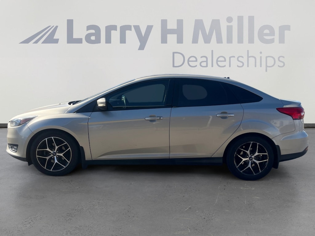 This 2018 White Gold Ford Focus SEL FWD is well equipped and includes these features and benefits: Equipment Group 250A, 10 Speakers, 17 Machined-Aluminum Wheels, 4-Wheel Disc Brakes, ABS brakes, Air Conditioning, Alloy wheels, AM/FM radio: SiriusXM, AppLink/Apple CarPlay and Android Auto, Automatic temperature control, Brake assist, Bumpers: body-color, CD player, Cloth Front Bucket Seats, Compass, Delay-off headlights, Driver door bin, Driver vanity mirror, Dual front impact airbags, Dual front side impact airbags, Electronic Stability Control, Emergency communication system, Exterior Parking Camera Rear, Four wheel independent suspension, Front anti-roll bar, Front Bucket Seats, Front Center Armrest, Front dual zone A/C, Front fog lights, Front reading lights, Fully automatic headlights, Illuminated entry, Knee airbag, Low tire pressure warning, Occupant sensing airbag, Outside temperature display, Overhead airbag, Overhead console, Panic alarm, Passenger door bin, Passenger vanity mirror, Power door mirrors, Power moonroof, Power steering, Power windows, Radio data system, Radio: Sony AM/FM Single-CD/MP3-Capable, Rear anti-roll bar, Rear Parking Sensors, Rear window defroster, Remote keyless entry, Security system, SelectShift, Speed control, Split folding rear seat, Steering wheel mounted audio controls, SYNC 3 Communications & Entertainment System, Tachometer, Telescoping steering wheel, Tilt steering wheel, Traction control, Trip computer, Turn signal indicator mirrors, and Variably intermittent wipers. 10 Speakers, 17 Machined-Aluminum Wheels, 4-Wheel Disc Brakes, ABS brakes, Air Conditioning, Alloy wheels, AM/FM radio: SiriusXM, AppLink/Apple CarPlay and Android Auto, Automatic temperature control, Brake assist, Bumpers: body-color, CD player, Cloth Front Bucket Seats, Compass, Delay-off headlights, Driver door bin, Driver vanity mirror, Dual front impact airbags, Dual front side impact airbags, Electronic Stability Control, Emergency communication system, Equipment Group 250A, Exterior Parking Camera Rear, Four wheel independent suspension, Front anti-roll bar, Front Bucket Seats, Front Center Armrest, Front dual zone A/C, Front fog lights, Front reading lights, Fully automatic headlights, Illuminated entry, Knee airbag, Low tire pressure warning, Occupant sensing airbag, Outside temperature display, Overhead airbag, Overhead console, Panic alarm, Passenger door bin, Passenger vanity mirror, Power door mirrors, Power moonroof, Power steering, Power windows, Radio data system, Radio: Sony AM/FM Single-CD/MP3-Capable, Rear anti-roll bar, Rear Parking Sensors, Rear window defroster, Remote keyless entry, Security system, SelectShift, Speed control, Split folding rear seat, Steering wheel mounted audio controls, SYNC 3 Communications & Entertainment System, Tachometer, Telescoping steering wheel, Tilt steering wheel, Traction control, Trip computer, Turn signal indicator mirrors, Variably intermittent wipers.