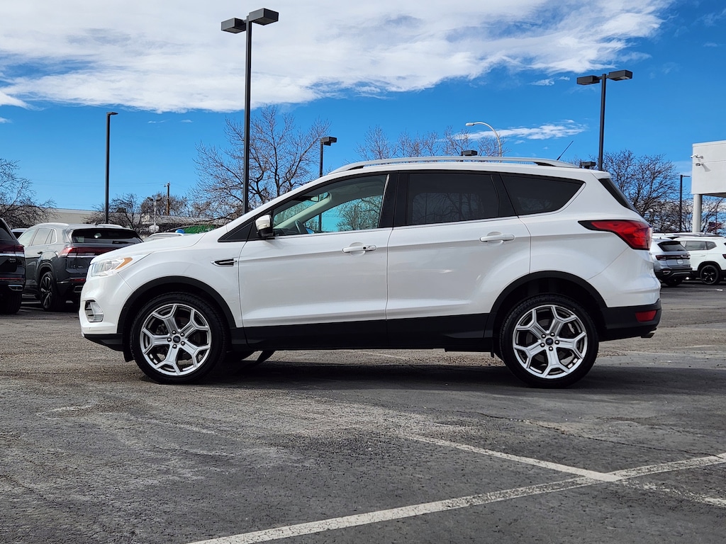 Equipment Group 400A, Escape Titanium, 4D Sport Utility, EcoBoost 2.0L I4 GTDi DOHC Turbocharged VCT, 6-Speed Automatic, FWD, White Platinum Metallic Tri-Coat, Medium Light Stone w/Heated Leather-Trimmed Front Bucket Seats, AppLink/Apple CarPlay and Android Auto, Heated Leather-Trimmed Front Bucket Seats, Heated steering wheel, 10 Speakers, 3.07 Axle Ratio, 4-Wheel Disc Brakes, ABS brakes, Air Conditioning, Alloy wheels, AM/FM radio: SiriusXM, Auto-dimming Rear-View mirror, Automatic temperature control, Brake assist, Bumpers: body-color, Compass, Delay-off headlights, Driver door bin, Driver vanity mirror, Dual front impact airbags, Dual front side impact airbags, Electronic Stability Control, Emergency communication system: SYNC 3 911 Assist, Exterior Parking Camera Rear, FordPass Connect, Four wheel independent suspension, Front anti-roll bar, Front Bucket Seats, Front Center Armrest, Front dual zone A/C, Front fog lights, Front reading lights, Fully automatic headlights, Garage door transmitter, Heated door mirrors, Heated front seats, High-Intensity Discharge Headlights, Illuminated entry, Knee airbag, Leather Shift Knob, Low tire pressure warning, Memory seat, Navigation System, Occupant sensing airbag, Outside temperature display, Overhead airbag, Overhead console, Panic alarm, Passenger door bin, Passenger vanity mirror, Power door mirrors, Power driver seat, Power Liftgate, Power passenger seat, Power steering, Power windows, Radio data system, Radio: AM/FM Stereo w/MP3 Capable, Rear anti-roll bar, Rear reading lights, Rear seat center armrest, Rear window defroster, Rear window wiper, Remote keyless entry, Roof rack: rails only, Security system, Speed control, Speed-sensing steering, Split folding rear seat, Steering wheel mounted audio controls, SYNC 3 Communications & Entertainment System, Tachometer, Telescoping steering wheel, Tilt steering wheel, Traction control, Trip computer, Turn signal indicator mirrors, Variably intermittent wipers, Voice-Activated Touchscreen Navigation System, and Wheels: 19 Bright-Machined Aluminum. Odometer is 18724 miles below market average! 22/29 City/Highway MPG
