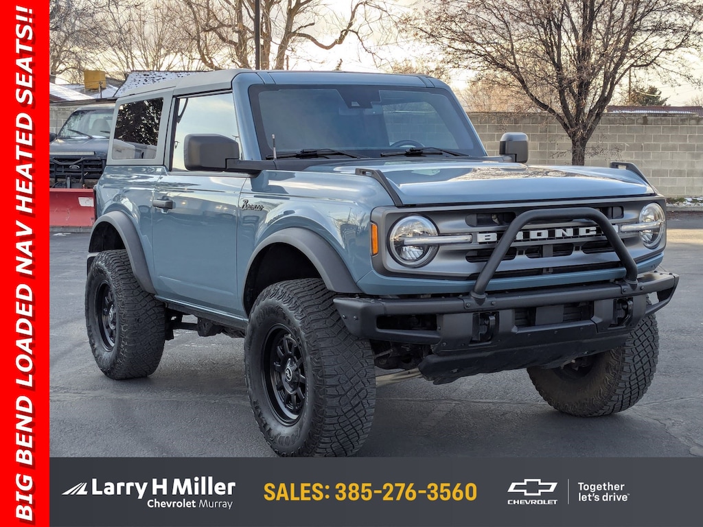 *2022 Ford Bronco Big Bend -- 22,000 Miles*Turn heads on the road or trail with this *2022 Ford Bronco Big Bend*, a rugged and modern SUV built for adventure. Powered by a *2.7L V6 DOHC 24V gasoline engine*, this Bronco delivers impressive performance, smooth power, and proven reliability.Equipped with *4x4 capability* and *rear-wheel drive*, it's ready for off-road exploration while still providing a comfortable and confident on-road driving experience. With only *22,000 miles*, this Bronco is in excellent condition and has plenty of life left for years of driving enjoyment.The Big Bend trim offers the perfect balance of durability, comfort, and iconic Bronco styling, making it ideal for daily driving, weekend getaways, or serious outdoor adventures.*Vehicle Details:* * Year: 2022 * Make/Model: Ford Bronco Big Bend * Engine: 2.7L V6 DOHC 24V * Fuel Type: Gasoline * Drivetrain: Rear Wheel Drive with 4x4 * Mileage: 22,000 miles * VIN: 1FMDE5AP5NLB43247 * Body Style: Utility SUVThis Bronco combines classic Ford toughness with modern performance---ready for whatever road lies ahead.NACTOY 2022 North American Utility of the Year. Only 22,902 Miles! This Ford Bronco boasts a Twin Turbo Regular Unleaded V-6 2.7 L/164 engine powering this Automatic transmission. Wireless Phone Connectivity, Variable Intermittent Wipers, Trip Computer.*This Ford Bronco Features the Following Options *Tracker System, Towing Equipment -inc: Trailer Sway Control, Tire Specific Low Tire Pressure Warning, Tailgate/Rear Door Lock Included w/Power Door Locks, Swing-Out Rear Cargo Access, Streaming Audio, Solid Axle Rear Suspension w/Coil Springs, Smart Device Remote Engine Start, Smart Device Integration, Single Stainless Steel Exhaust.*Visit Us Today *For a must-own Ford Bronco come see us at Larry H Miller Chevrolet Murray, 5500 South State St, Murray, UT 84107. Just minutes away!