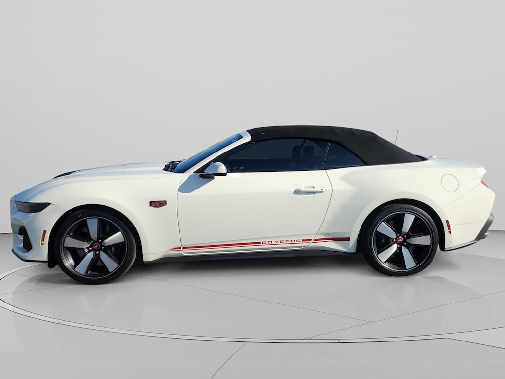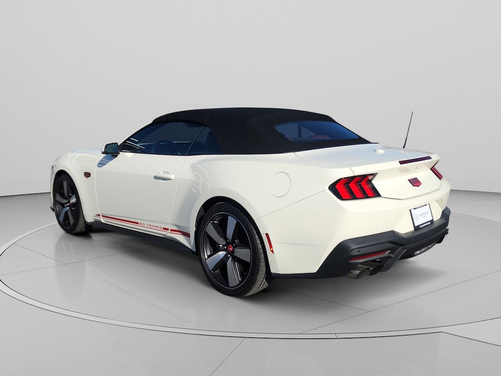 Mercedes-Benz of Draper proudly offers this 2025 Wimbledon White Ford Mustang GT Premium RWD . It is well equipped and includes these features and benefits: 60th Anniversary Package (20 Wheels, Anniversary Special Edition Badge, Headlamps w/Black Bezels, Painted High Gloss Black Honeycomb Grille, Silver Painted Mirror Caps, and Wheels: 20 x 9 Bright Machined Aluminum), Equipment Group 401A High Package (Driver Seat & Mirrors Memory, Illuminated Door-Sill Scuff Plates, Integrated Turn Signals, and Leather-Trimmed Bucket Seats w/Color Accents), Ford Co-Pilot360 Assist+ (Connected Navigation and Pre-Collision Assist w/Automatic Emergency Braking), Security Package (Active Anti-Theft System, Locking Center Console, and Wheel Locking Kit), 3.55 Limited Slip Rear Axle, 4-Wheel Disc Brakes, 9 Speakers, ABS brakes, Active Valve Performance Exhaust, Air Conditioning, Alloy wheels, AM/FM radio: SiriusXM with 360L, AM/FM Stereo, Auto High-beam Headlights, Auto-dimming Rear-View mirror, Automatic temperature control, B&O Sound System by Bang & Olufsen w/12 Speakers, Brake assist, Brembo Brake System w/Performance Linings, Bumpers: body-color, Climate Controlled Heated/Cooled Front Seats, Compass, Convertible roof lining, Delay-off headlights, Driver door bin, Driver vanity mirror, Dual front impact airbags, Dual front side impact airbags, Electronic Stability Control, Emergency communication system: 911 Assist, Exterior Parking Camera Rear, Four wheel independent suspension, Front anti-roll bar, Front Bucket Seats, Front Center Armrest, Front dual zone A/C, Front reading lights, Fully automatic headlights, Garage door transmitter, Glass rear window, HD Radio, Heated door mirrors, Heated front seats, Heated steering wheel, Illuminated entry, Instrument Panel w/Accent Stitch, Internet access capable: FordPass Connect, Knee airbag, Leather Shift Knob, Leather steering wheel, Low tire pressure warning, Occupant sensing airbag, Outside temperature display, Overhead console, Panic alarm, Passenger door bin, Passenger vanity mirror, Power convertible roof, Power door mirrors, Power driver seat, Power passenger seat, Power steering, Power windows, Radio data system, Rain sensing wipers, Rear anti-roll bar, Rear Parking Sensors, Rear window defroster, Remote keyless entry, Security system, SiriusXM w/360L, Speed control, Speed-sensing steering, Speed-Sensitive Wipers, Spoiler, Sport steering wheel, Steering wheel mounted audio controls, SYNC 4, Tachometer, Telescoping steering wheel, Tilt steering wheel, Traction control, Trip computer, Turn signal indicator mirrors, Variably intermittent wipers, Ventilated front seats, Voltmeter, and Wheels: 19 x 8.5 Shadow Silver-Painted Aluminum. Burmester is a registered trademark of Burmester Audiosysteme GmbH, Berlin, Germany. Bluetooth is a registered Mark of Bluetooth SIG, Inc.