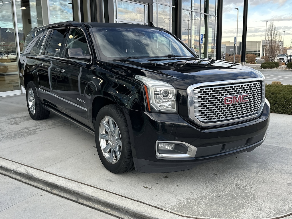 Mercedes-Benz of Draper proudly offers this 2015 Onyx Black GMC Yukon XL Denali 4WD . It is well equipped and includes these features and benefits: Adaptive Cruise Control w/Front Automatic Braking (VAC Power Disc Brakes w/ESS), Driver Alert Package (Safety Alert Seat), Enhanced Safety Package (Interior Movement Sensor, Self-Powered Horn, and Vehicle Inclination Sensor), License Plate Front Mounting Package, Magnetic Ride Control Suspension Package, Memory Package, Open Road Package (3rd Row DVD Screen, Power Tilt-Sliding Sunroof w/Express-Open/Close, and Rear Seat Blu-Ray/DVD Entertainment System), Preferred Equipment Group 5SA (5 Auxiliary 12-volt Power Outlets, Black Assist Steps w/Chrome Strip, Bose Centerpoint Surround Sound 10 Speaker System, Color-Keyed Heated Leather-Wrapped Steering Wheel, Hands Free Power Liftgate, Inside Rear-View Auto-Dimming Mirror, Integrated Trailer Brake Controller, OnStar Basic Plan For 5 Years, OnStar w/4G LTE, Passive Entry System, Power Rear Liftgate, Power Second Row Bucket Seats, Power Tilt & Telescopic Steering Column, Power-Adjustable Pedals For Accelerator & Brake, Push Button Keyless Start, Rear Cross-Traffic Alert, Remote Keyless Entry, Side Blind Zone Alert w/Lane Change Alert, Universal Home Remote, and Wireless Charging), Premium Package (Head-Up Display and Pwr Retractable Assist Steps w/Perimeter Lighting), 4WD, 10 Speakers, 3.23 Axle Ratio, 3rd row seats: split-bench, 4-Wheel Disc Brakes, ABS brakes, Adjustable pedals, Air Conditioning, Alloy wheels, AM/FM radio: SiriusXM, Auto-dimming door mirrors, Auto-dimming Rear-View mirror, Automatic temperature control, Bodyside moldings, Brake assist, Bumpers: body-color, CD player, Compass, Delay-off headlights, Driver door bin, Driver vanity mirror, Dual front impact airbags, Dual front side impact airbags, Electronic Stability Control, Emergency communication system, Exterior Parking Camera Rear, Front anti-roll bar, Front Bucket Seats, Front Center Armrest, Front dual zone A/C, Front fog lights, Front reading lights, Front wheel independent suspension, Fully automatic headlights, Garage door transmitter, Genuine wood console insert, Genuine wood dashboard insert, Genuine wood door panel insert, Heated & Cooled Full-Feature Reclining Bucket Seats, Heated door mirrors, Heated front seats, Heated rear seats, Heated steering wheel, High-Intensity Discharge Headlights, Illuminated entry, Leather Shift Knob, Low tire pressure warning, Memory seat, Navigation System, Occupant sensing airbag, Outside temperature display, Overhead airbag, Overhead console, Panic alarm, Passenger door bin, Passenger vanity mirror, Pedal memory, Perforated Leather-Appointed Seat Trim, Power door mirrors, Power driver seat, Power Liftgate, Power passenger seat, Power steering, Power windows, Premium audio system: IntelliLink, Radio: AM/FM/SiriusXM/HD w/Navigation, Rain sensing wipers, Rear air conditioning, Rear anti-roll bar, Rear reading lights, Rear window defroster, Rear window wiper, Remote keyless entry, Roof rack: rails only, Security system, Speed control, Speed-sensing steering, Split folding rear seat, Spoiler, Steering wheel memory, Steering wheel mounted audio controls, Tachometer, Telescoping steering wheel, Tilt steering wheel, Traction control, Trip computer, Turn signal indicator mirrors, Variably intermittent wipers, Ventilated front seats, Voltmeter, and Wheels: 20 x 9 Ultra Bright Machined Aluminum.