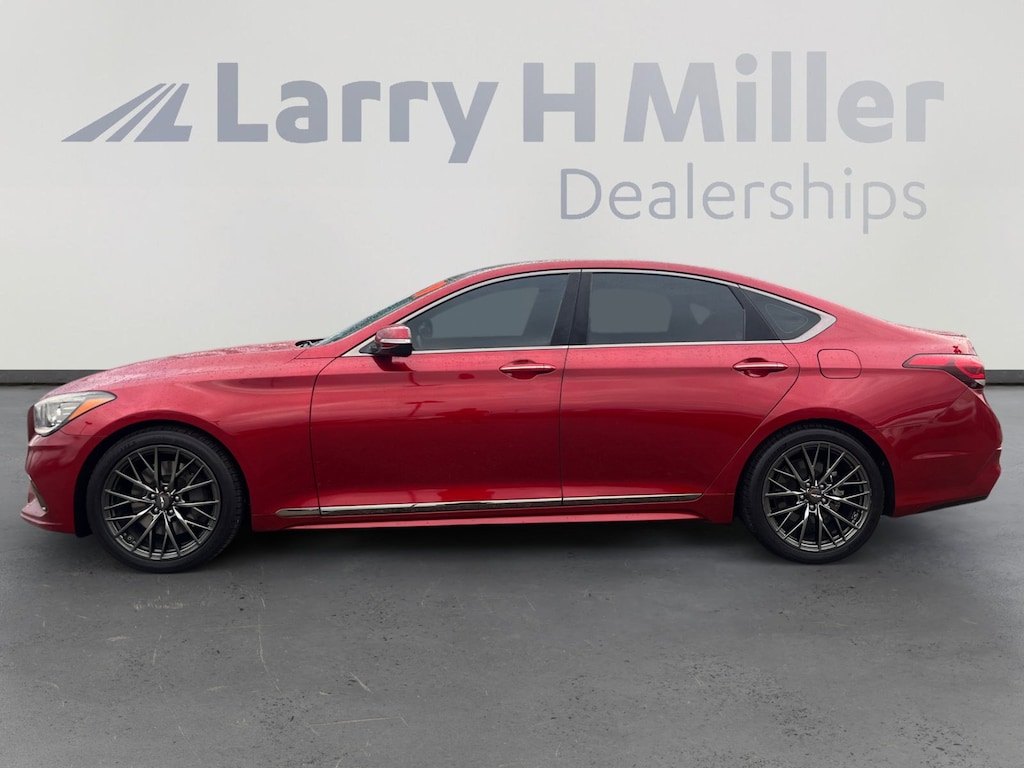 This 2019 Red Genesis G80 3.8 is well equipped and includes these features and benefits: G80 3.8, V6, Red, Bro/Brown Leather, 18 x 8J Alloy Wheels, 4-Wheel Disc Brakes, 7 Speakers, ABS brakes, Air Conditioning, Automatic temperature control, Brake assist, Electronic Stability Control, Exterior Parking Camera Rear, Four wheel independent suspension, Front dual zone A/C, Memory seat, Navigation System, Power driver seat, Radio: AM/FM/HD/SiriusXM/MP3 Audio System, Speed-sensing steering, Traction control, Alloy wheels, AM/FM radio: SiriusXM, Android Auto & Apple CarPlay, Anti-whiplash front head restraints, Auto High-beam Headlights, Auto tilt-away steering wheel, Auto-dimming door mirrors, Auto-dimming Rear-View mirror, Bumpers: body-color, Compass, Delay-off headlights, Driver door bin, Driver vanity mirror, Dual front impact airbags, Dual front side impact airbags, Emergency communication system: Genesis Connected Services, Front anti-roll bar, Front Bucket Seats, Front Center Armrest, Front reading lights, Fully automatic headlights, Garage door transmitter: HomeLink, Heated door mirrors, Heated Front Bucket Seats, Heated front seats, High intensity discharge headlights: Bi-Xenon, Illuminated entry, Knee airbag, Leather Seating Surfaces, Leather Shift Knob, Leather steering wheel, Low tire pressure warning, Occupant sensing airbag, Outside temperature display, Overhead airbag, Overhead console, Panic alarm, Passenger door bin, Passenger vanity mirror, Power door mirrors, Power passenger seat, Power steering, Power windows, Radio data system, Rain sensing wipers, Rear anti-roll bar, Rear reading lights, Rear seat center armrest, Rear side impact airbag, Rear window defroster, Remote keyless entry, Security system, Speed control, Speed-Sensitive Wipers, Steering wheel memory, Steering wheel mounted audio controls, Tachometer, Telescoping steering wheel, Tilt steering wheel, Trip computer, Turn signal indicator mirrors, and Variably intermittent wipers. G80 3.8, V6, Red, Bro/Brown Leather, 18 x 8J Alloy Wheels, 4-Wheel Disc Brakes, 7 Speakers, ABS brakes, Air Conditioning, Automatic temperature control, Brake assist, Electronic Stability Control, Exterior Parking Camera Rear, Four wheel independent suspension, Front dual zone A/C, Memory seat, Navigation System, Power driver seat, Radio: AM/FM/HD/SiriusXM/MP3 Audio System, Speed-sensing steering, Traction control, Alloy wheels, AM/FM radio: SiriusXM, Android Auto & Apple CarPlay, Anti-whiplash front head restraints, Auto High-beam Headlights, Auto tilt-away steering wheel, Auto-dimming door mirrors, Auto-dimming Rear-View mirror, Bumpers: body-color, Compass, Delay-off headlights, Driver door bin, Driver vanity mirror, Dual front impact airbags, Dual front side impact airbags, Emergency communication system: Genesis Connected Services, Front anti-roll bar, Front Bucket Seats, Front Center Armrest, Front reading lights, Fully automatic headlights, Garage door transmitter: HomeLink, Heated door mirrors, Heated Front Bucket Seats, Heated front seats, High intensity discharge headlights: Bi-Xenon, Illuminated entry, Knee airbag, Leather Seating Surfaces, Leather Shift Knob, Leather steering wheel, Low tire pressure warning, Occupant sensing airbag, Outside temperature display, Overhead airbag, Overhead console, Panic alarm, Passenger door bin, Passenger vanity mirror, Power door mirrors, Power passenger seat, Power steering, Power windows, Radio data system, Rain sensing wipers, Rear anti-roll bar, Rear reading lights, Rear seat center armrest, Rear side impact airbag, Rear window defroster, Remote keyless entry, Security system, Speed control, Speed-Sensitive Wipers, Steering wheel memory, Steering wheel mounted audio controls, Tachometer, Telescoping steering wheel, Tilt steering wheel, Trip computer, Turn signal indicator mirrors, Variably intermittent wipers, G80 3.8, V6, Red, Bro/Brown Leather, 18 x 8J Alloy Wheels, 4-Wheel Disc Brakes, 7 Speakers, ABS brakes, Air Conditioni