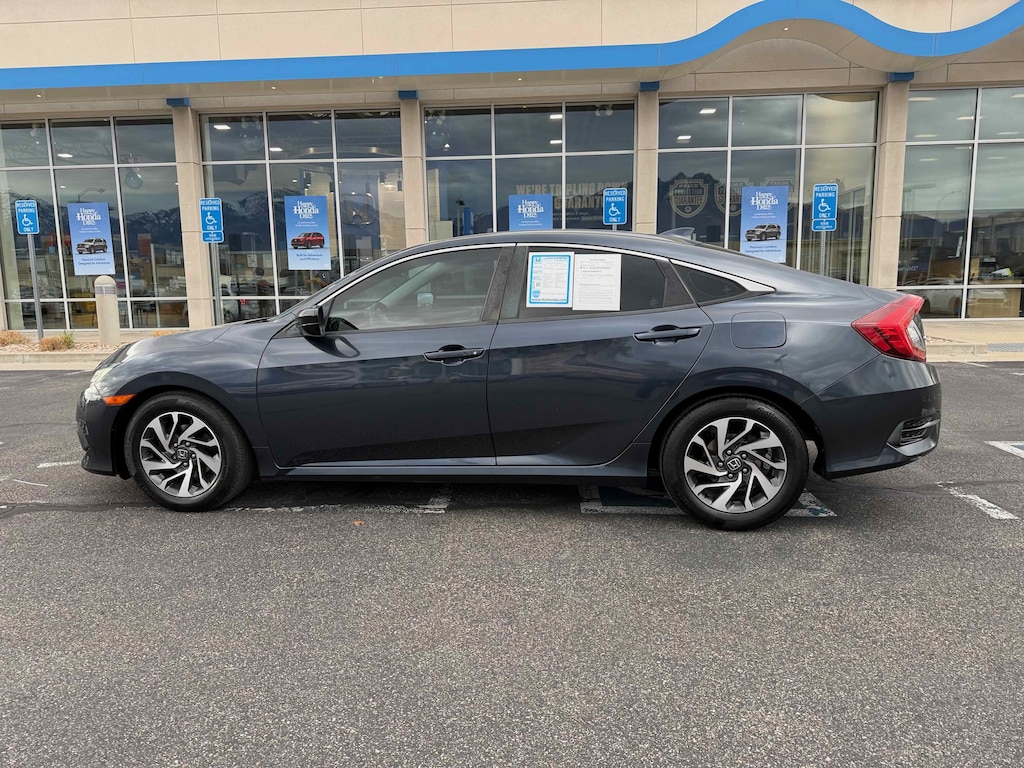 Larry H. Miller Honda Murray offers this 2017 Aegean Blue Metallic Honda Civic EX FWD It is loaded with many standard and optional features including: Ivory Cloth, 16 Alloy Wheels, 4-Wheel Disc Brakes, 8 Speakers, ABS brakes, Air Conditioning, Alloy wheels, AM/FM radio, Apple CarPlay/Android Auto, Automatic temperature control, Brake assist, Bumpers: body-color, Cloth Seat Trim, Compass, Delay-off headlights, Driver door bin, Driver vanity mirror, Dual front impact airbags, Dual front side impact airbags, Electronic Stability Control, Emergency communication system, Exterior Parking Camera Rear, Four wheel independent suspension, Front anti-roll bar, Front Bucket Seats, Front Center Armrest, Front reading lights, Fully automatic headlights, Heated door mirrors, Illuminated entry, Low tire pressure warning, Occupant sensing airbag, Outside temperature display, Overhead airbag, Panic alarm, Passenger door bin, Passenger vanity mirror, Power door mirrors, Power moonroof, Power steering, Power windows, Radio data system, Radio: 180-Watt AM/FM/HD/SiriusXM Audio System, Rear anti-roll bar, Rear seat center armrest, Rear window defroster, Reclining Front Bucket Seats, Remote keyless entry, Security system, Speed control, Speed-sensing steering, Speed-Sensitive Wipers, Split folding rear seat, Steering wheel mounted audio controls, Tachometer, Telescoping steering wheel, Tilt steering wheel, Traction control, Trip computer, and Variably intermittent wipers.