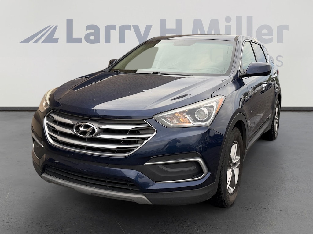 This 2018 Nightfall Blue Hyundai Santa Fe Sport 2.4 Base FWD is well equipped and includes these features and benefits: Option Group 01, 17 x 7 Alloy Wheels, 4-Wheel Disc Brakes, 6 Speakers, ABS brakes, Air Conditioning, Alloy wheels, AM/FM radio, AM/FM/CD/MP3 Audio System, Axle Ratio 3.51, Brake assist, Bumpers: body-color, CD player, Delay-off headlights, Driver door bin, Driver vanity mirror, Dual front impact airbags, Dual front side impact airbags, Electronic Stability Control, Exterior Parking Camera Rear, Four wheel independent suspension, Front anti-roll bar, Front Bucket Seats, Front Center Armrest, Front reading lights, Fully automatic headlights, Illuminated entry, Knee airbag, Low tire pressure warning, Multi-Adjustable Bucket Seats, Occupant sensing airbag, Outside temperature display, Overhead airbag, Overhead console, Panic alarm, Passenger door bin, Passenger vanity mirror, Power door mirrors, Power steering, Power windows, Rear anti-roll bar, Rear seat center armrest, Rear window defroster, Rear window wiper, Remote keyless entry, Security system, Speed control, Speed-sensing steering, Split folding rear seat, Spoiler, Stain-Resistant Cloth Seating Surfaces, Steering wheel mounted audio controls, Tachometer, Telescoping steering wheel, Tilt steering wheel, Traction control, Trip computer, and Variably intermittent wipers. 17 x 7 Alloy Wheels, 4-Wheel Disc Brakes, 6 Speakers, ABS brakes, Air Conditioning, Alloy wheels, AM/FM radio, AM/FM/CD/MP3 Audio System, Axle Ratio 3.51, Brake assist, Bumpers: body-color, CD player, Delay-off headlights, Driver door bin, Driver vanity mirror, Dual front impact airbags, Dual front side impact airbags, Electronic Stability Control, Exterior Parking Camera Rear, Four wheel independent suspension, Front anti-roll bar, Front Bucket Seats, Front Center Armrest, Front reading lights, Fully automatic headlights, Illuminated entry, Knee airbag, Low tire pressure warning, Multi-Adjustable Bucket Seats, Occupant sensing airbag, Option Group 01, Outside temperature display, Overhead airbag, Overhead console, Panic alarm, Passenger door bin, Passenger vanity mirror, Power door mirrors, Power steering, Power windows, Rear anti-roll bar, Rear seat center armrest, Rear window defroster, Rear window wiper, Remote keyless entry, Security system, Speed control, Speed-sensing steering, Split folding rear seat, Spoiler, Stain-Resistant Cloth Seating Surfaces, Steering wheel mounted audio controls, Tachometer, Telescoping steering wheel, Tilt steering wheel, Traction control, Trip computer, Variably intermittent wipers.
