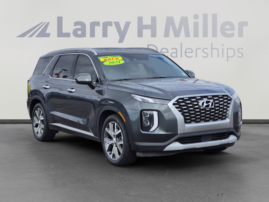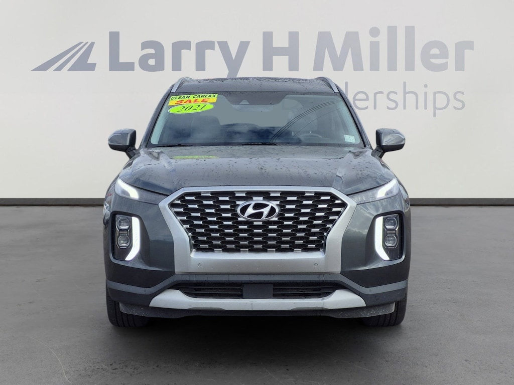 Rainforest This Palisade SEL is nicely equipped with Convenience Package P2 (115-Volt AC Power Outlet, 3rd Row USB Outlets, 7 High-Resolution Cluster Display, Acoustic Front Side Glass, Auto Leveling Rear Suspension, Front Parking Sensors, Hands-Free Smart Liftgate, LED Taillights, Rear Side Window Sunshades, Ultrasonic Rear Occupant Alert, Wheels: 20 x 7.5J Split 5-Spoke Machined Alloy, and Wireless Phone Charger), Premium & 8P Bench Seat (8-Passenger Bench Seating P4), Premium Package P3 (8-Way Power Passenger Seat, Driver's Seat Integrated Memory System, Heated 2nd Row Seats, Heated Steering Wheel, Highway Drive Assist I, Leather Seat Trim, Power 3rd Row Seating, Premium Dashboard & Door Armrests, and Radio: AM/FM/MP3 Premium Audio System), 3.648 Axle Ratio, 3rd row seats: split-bench, 4-Wheel Disc Brakes, 6 Speakers, ABS brakes, Air Conditioning, Alloy wheels, AM/FM radio, Apple CarPlay & Android Auto, Auto High-beam Headlights, Auto-dimming Rear-View mirror, Automatic temperature control, Brake assist, Bumper Applique, Bumpers: body-color, Cargo Net, Cargo Tray, Carpeted Floor Mats, Cloth Seat Trim, Delay-off headlights, Driver door bin, Driver vanity mirror, Dual front impact airbags, Dual front side impact airbags, Electronic Stability Control, Four wheel independent suspension, Front anti-roll bar, Front Bucket Seats, Front Center Armrest, Front dual zone A/C, Front reading lights, Fully automatic headlights, Garage door transmitter: HomeLink, Heated door mirrors, Heated Front Bucket Seats, Heated front seats, Illuminated entry, Knee airbag, Low tire pressure warning, Occupant sensing airbag, Outside temperature display, Overhead airbag, Overhead console, Panic alarm, Passenger door bin, Passenger vanity mirror, Power door mirrors, Power driver seat, Power moonroof, Power steering, Power windows, Radio data system, Radio: AM/FM/MP3 Display Audio, Rear air conditioning, Rear anti-roll bar, Rear reading lights, Rear window defroster, Rear window wiper, Reclining 3rd row seat, Remote keyless entry, Security system, Speed control, Speed-sensing steering, Split folding rear seat, Spoiler, Steering wheel mounted audio controls, Tachometer, Telescoping steering wheel, Tilt steering wheel, Traction control, Trip computer, Turn signal indicator mirrors, Variably intermittent wipers, and Wheels: 18 x 7.5J Machine Finish Alloy.