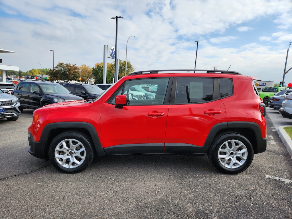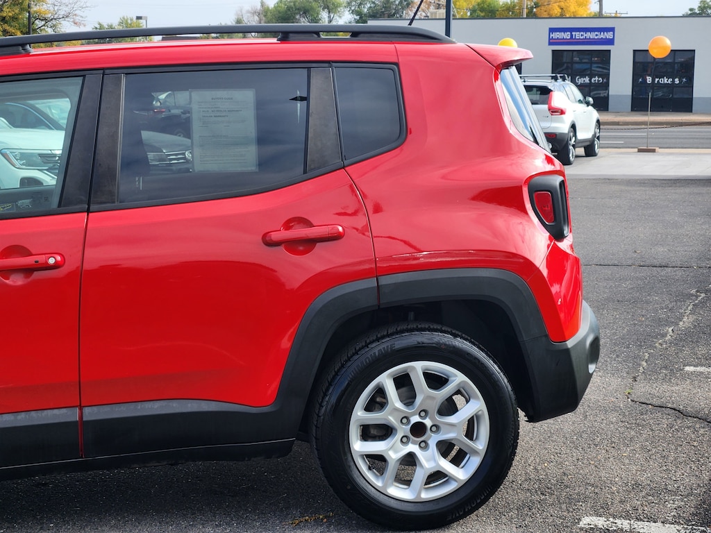 Passive Entry Keyless Go Package (Passive Entry/Keyless Go), Quick Order Package 27J, Renegade Latitude, 4D Sport Utility, 2.4L I4 MultiAir, 9-Speed 948TE Automatic, FWD, Colorado Red, Sandstorm/Black w/Cloth Low-Back Bucket Seats, Heated door mirrors, 16 x 6.5 Aluminum Wheels, 17 x 7.0 Aluminum Wheels, 3.734 Axle Ratio, 4-Wheel Disc Brakes, 4.438 Axle Ratio, 6 Speakers, ABS brakes, Air Conditioning, Alloy wheels, AM/FM radio: SiriusXM, Anti-whiplash front head restraints, Brake assist, Cloth Low-Back Bucket Seats, Compass, Delay-off headlights, Driver door bin, Driver vanity mirror, Dual front impact airbags, Dual front side impact airbags, Electronic Stability Control, Four wheel independent suspension, Front anti-roll bar, Front Bucket Seats, Front Center Armrest, Front fog lights, Front reading lights, Fully automatic headlights, Illuminated entry, Knee airbag, Leather steering wheel, Low tire pressure warning, Manufacturer's Statement of Origin, Normal Duty Suspension, Occupant sensing airbag, Outside temperature display, Overhead airbag, Overhead console, Panic alarm, ParkView Rear Back-Up Camera, Passenger door bin, Passenger vanity mirror, Passive Entry/Keyless Go (DISC), Power door mirrors, Power steering, Power windows, Radio data system, Radio: Uconnect 5.0, Rear anti-roll bar, Rear window defroster, Rear window wiper, Remote keyless entry, Remote Start System, Roof rack: rails only, Speed control, Split folding rear seat, Spoiler, Steering wheel mounted audio controls, Tachometer, Telescoping steering wheel, Tilt steering wheel, Traction control, Trip computer, Variably intermittent wipers, and Voltmeter. Recent Arrival! Odometer is 4052 miles below market average! 22/31 City/Highway MPG