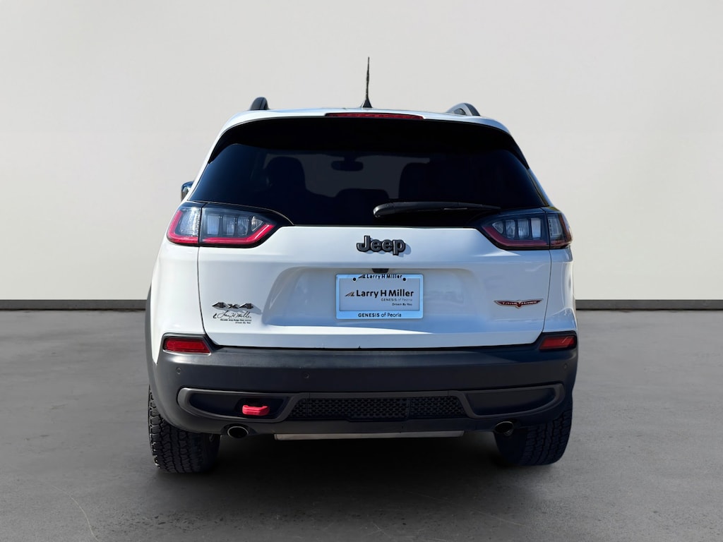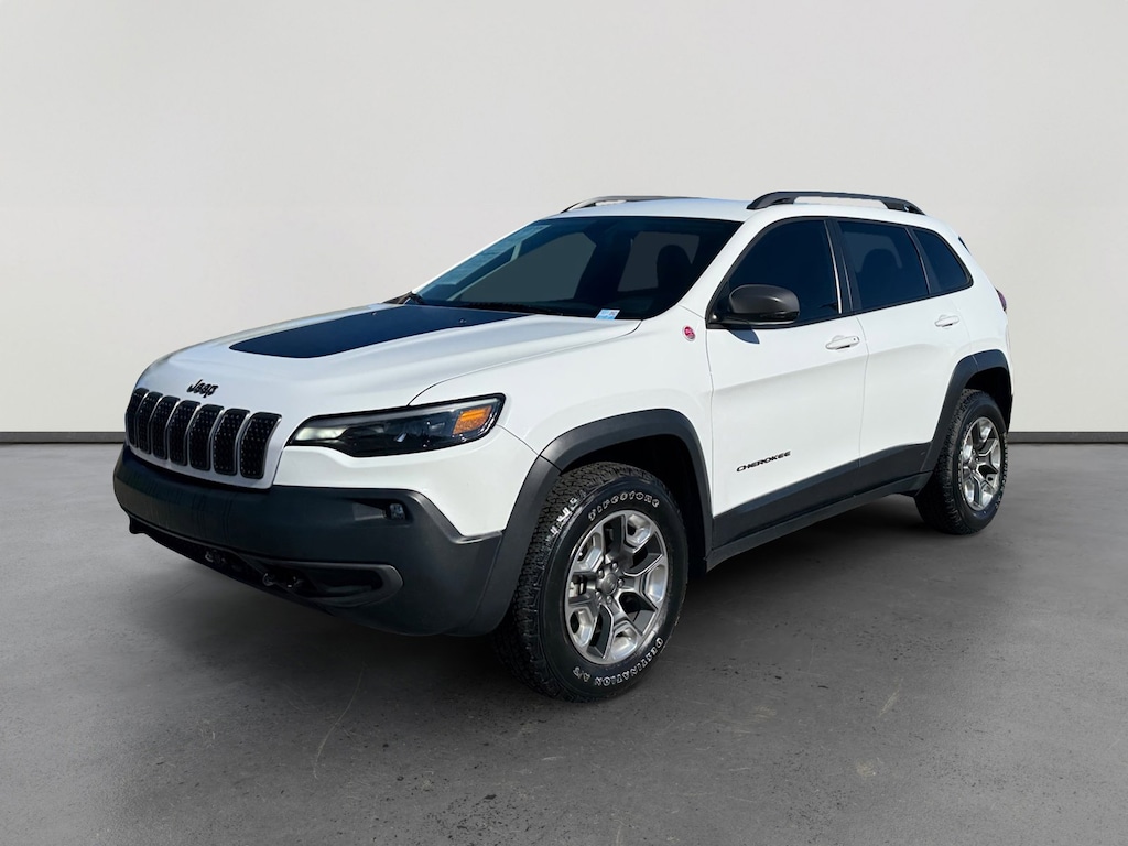 This 2019 Bright White Clearcoat Jeep Cherokee Trailhawk 4WD is well equipped and includes these features and benefits: Comfort/Convenience Group (Auto-Dimming Rear-View Mirror, Power Liftgate, Remote Start System, Security Alarm, and Universal Garage Door Opener), Quick Order Package 2ZE Trailhawk, 4-Wheel Disc Brakes, 6 Speakers, 8.4 Touchscreen Display, ABS brakes, Air Conditioning, Alloy wheels, AM/FM radio: SiriusXM, Anti-whiplash front head restraints, Apple CarPlay, Apple CarPlay/Android Auto, Automatic temperature control, AutoStick Automatic Transmission, Auxiliary Transmission Oil Cooler, Brake assist, Cloth/Premium Vinyl Bucket Seats, Compass, Delay-off headlights, Driver door bin, Driver vanity mirror, Dual Bright Exhaust Tips, Dual front impact airbags, Dual front side impact airbags, Electronic Stability Control, Engine Oil Cooler, Exterior Mirrors Courtesy Lamps, Exterior Mirrors w/Supplemental Signals, Four wheel independent suspension, Front anti-roll bar, Front Bucket Seats, Front Center Armrest, Front dual zone A/C, Front fog lights, Front reading lights, Fully automatic headlights, Google Android Auto, GPS Antenna Input, Heated door mirrors, Hill Descent Control, Illuminated entry, Illuminated Front Cupholders (DISC), Integrated Voice Command w/Bluetooth, Knee airbag, Leather Shift Knob, Low tire pressure warning, Manufacturer's Statement of Origin (DISC), Occupant sensing airbag, Off Road Suspension, Outside temperature display, Overhead airbag, Overhead console, Panic alarm, ParkView Rear Back-Up Camera, Passenger door bin, Passenger vanity mirror, Power door mirrors, Power driver seat, Power steering, Power windows, Radio data system, Radio: Uconnect 4 w/8.4 Display, Rear anti-roll bar, Rear reading lights, Rear seat center armrest, Rear side impact airbag, Rear window defroster, Rear window wiper, Remote keyless entry, Roof rack: rails only, SiriusXM Satellite Radio, Speed control, Speed-sensing steering, Split folding rear seat, Spoiler, Steering wheel mounted audio controls, Stop-Start Multiple VSM System, Tachometer, Telescoping steering wheel, Tilt steering wheel, Traction control, Trip computer, Turn signal indicator mirrors, USB Host Flip, Variably intermittent wipers, Voltmeter, and Wheels: 17 x 7.5 Painted/Polished Aluminum. 4-Wheel Disc Brakes, 6 Speakers, 8.4 Touchscreen Display, ABS brakes, Air Conditioning, Alloy wheels, AM/FM radio: SiriusXM, Anti-whiplash front head restraints, Apple CarPlay, Apple CarPlay/Android Auto, Auto-Dimming Rear-View Mirror, Automatic temperature control, AutoStick Automatic Transmission, Auxiliary Transmission Oil Cooler, Brake assist, Cloth/Premium Vinyl Bucket Seats, Comfort/Convenience Group, Compass, Delay-off headlights, Driver door bin, Driver vanity mirror, Dual Bright Exhaust Tips, Dual front impact airbags, Dual front side impact airbags, Electronic Stability Control, Engine Oil Cooler, Exterior Mirrors Courtesy Lamps, Exterior Mirrors w/Supplemental Signals, Four wheel independent suspension, Front anti-roll bar, Front Bucket Seats, Front Center Armrest, Front dual zone A/C, Front fog lights, Front reading lights, Fully automatic headlights, Google Android Auto, GPS Antenna Input, Heated door mirrors, Hill Descent Control, Illuminated entry, Illuminated Front Cupholders (DISC), Integrated Voice Command w/Bluetooth, Knee airbag, Leather Shift Knob, Low tire pressure warning, Manufacturer's Statement of Origin (DISC), Occupant sensing airbag, Off Road Suspension, Outside temperature display, Overhead airbag, Overhead console, Panic alarm, ParkView Rear Back-Up Camera, Passenger door bin, Passenger vanity mirror, Power door mirrors, Power driver seat, Power Liftgate, Power steering, Power windows, Quick Order Package 2ZE Trailhawk, Radio data system, Radio: Uconnect 4 w/8.4 Display, Rear anti-roll bar, Rear reading lights, Rear seat center armrest, Rear side impact airbag, Rear window defroster, Rear window wiper, Remote keyless entry, Remote Start S