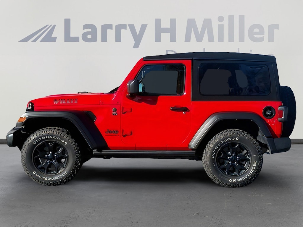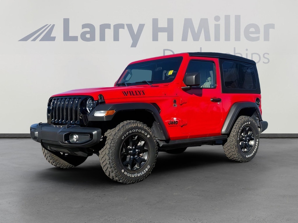 This 2023 Firecracker Red Clearcoat Jeep Wrangler Willys 4WD is well equipped and includes these features and benefits: Dual Door Group w/Premium Uppers (Front 1-Touch Down Power Windows, Half Doors w/Uppers, Power Heated Mirrors, Remote Keyless Entry, and Speed Sensitive Power Locks), LED Headlamp & Fog Lamp Group (Front LED Fog Lamps and LED Premium Reflector Headlamps), Quick Order Package 23W Willys (4-Wheel Drive Swing Gate Decal, Anti-Spin Differential Rear Axle, Automatic Headlamps, Black Grille, Deep Tint Sunscreen Windows, Mold In Color Bumper w/Gloss Black, MOPAR All-Weather Floor Mats, Premium Wrapped Steering Wheel, Security Alarm, Sun Visors w/Illuminated Vanity Mirrors, Wheels: 17 x 7.5 Black Aluminum, Willys, and Willys Hood Decal), Technology Group (2-Door Passive Entry, Front Door Locks, Air Conditioning w/Auto Temperature Control, Air Filtering, Cluster 7.0 TFT Color Display, and SiriusXM Satellite Radio), Trailer Tow & Aux Switch Group (240 Amp Alternator, 7 & 4 Pin Wiring Harness, 700 Amp Maintenance Free Battery, Auxiliary Switches, and Class II Receiver Hitch), 3.45 Overall Top Gear Ratio, 4-Wheel Disc Brakes, 8 Speakers, ABS brakes, AM/FM radio, Apple CarPlay, Apple CarPlay/Android Auto, Auxiliary Battery, Brake assist, Cloth Low-Back Bucket Seats, Compass, Delay-off headlights, Driver door bin, Driver vanity mirror, Dual front impact airbags, Dual front side impact airbags, Electronic Stability Control, Emergency communication system: SiriusXM Guardian, Engine Oil Cooler, Front anti-roll bar, Front Bucket Seats, Front Center Armrest w/Storage, Front fog lights, Front reading lights, Google Android Auto, GPS Antenna Input, Integrated Center Stack Radio, Integrated roll-over protection, Integrated Voice Command w/Bluetooth, Jeep Trail Rated Kit, Low tire pressure warning, MOPAR Cargo Tub Liner, MOPAR Doors Off Mirror Kit, MOPAR Grab Handle Kit, MOPAR Grab Handles, MOPAR Plastic Door Sill Guards, Non-Locking Fuel Cap w/o Discriminator, Normal Duty Suspension, Occupant sensing airbag, Outside temperature display, ParkView Rear Back-Up Camera, Passenger door bin, Passenger vanity mirror, Power steering, Premium Black Sunrider Soft Top, Radio data system, Radio: Uconnect 4 w/7 Display, Rear anti-roll bar, Rear reading lights, Soft Top Window Storage Bag, Speed control, Start-Stop Dual Battery System, Steering wheel mounted audio controls, Tachometer, Telescoping steering wheel, Tilt steering wheel, Traction control, Trip computer, USB Host Flip, Variably intermittent wipers, Wheels: 17 x 7.5 Black Steel Styled, and Wheels: 17 x 7.5 Moab Black Aluminum (DISC) 2-Door Passive Entry, Front Door Locks, 240 Amp Alternator, 3.45 Overall Top Gear Ratio, 4-Wheel Disc Brakes, 4-Wheel Drive Swing Gate Decal, 7 & 4 Pin Wiring Harness, 700 Amp Maintenance Free Battery, 8 Speakers, ABS brakes, Air Conditioning w/Auto Temperature Control, Air Filtering, AM/FM radio, Anti-Spin Differential Rear Axle, Apple CarPlay, Apple CarPlay/Android Auto, Automatic Headlamps, Auxiliary Battery, Auxiliary Switches, Black Grille, Brake assist, Class II Receiver Hitch, Cloth Low-Back Bucket Seats, Cluster 7.0 TFT Color Display, Compass, Deep Tint Sunscreen Windows, Delay-off headlights, Driver door bin, Driver vanity mirror, Dual Door Group w/Premium Uppers, Dual front impact airbags, Dual front side impact airbags, Electronic Stability Control, Emergency communication system: SiriusXM Guardian, Engine Oil Cooler, Front 1-Touch Down Power Windows, Front anti-roll bar, Front Bucket Seats, Front Center Armrest w/Storage, Front fog lights, Front LED Fog Lamps, Front reading lights, Google Android Auto, GPS Antenna Input, Half Doors w/Uppers, Integrated Center Stack Radio, Integrated roll-over protection, Integrated Voice Command w/Bluetooth, Jeep Trail Rated Kit, LED Headlamp & Fog Lamp Group, LED Premium Reflector Headlamps, Low tire pressure warning, Mold In Color Bumper w/Gloss Black, MOPAR All-Weather Floor Mats, MOPAR Cargo Tub L