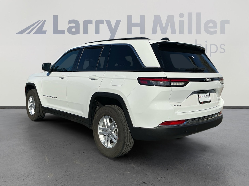 This 2025 Bright White Clearcoat Jeep Grand Cherokee Laredo 4WD is well equipped and includes these features and benefits: Quick Order Package 23A Laredo, Trailer Tow Package (180 Amp Alternator, 7 and 4-Pin Wiring Harness, Automatic Headlamp Levelling System, Class IV Receiver Hitch, Heavy-Duty Engine Cooling, Rear Load Levelling Suspension, and Trailer Hitch Zoom), 4WD, 4-Wheel Disc Brakes, 6 Speakers, ABS brakes, Air Conditioning, Alloy wheels, AM/FM radio: SiriusXM, Anti-whiplash front head restraints, Automatic temperature control, Brake assist, Bumpers: body-color, Cloth Seats, Compass, Delay-off headlights, Driver door bin, Driver vanity mirror, Dual front impact airbags, Dual front side impact airbags, Electronic Stability Control, Emergency communication system, Four wheel independent suspension, Front anti-roll bar, Front Bucket Seats, Front Center Armrest w/Storage, Front dual zone A/C, Front reading lights, Fully automatic headlights, Heated door mirrors, Illuminated entry, Knee airbag, Low tire pressure warning, Model Year Tracking, Normal Duty Suspension, Occupant sensing airbag, Outside temperature display, Overhead airbag, Overhead console, Panic alarm, ParkView Rear Back-Up Camera, Passenger door bin, Passenger vanity mirror, Power door mirrors, Power driver seat, Power steering, Power windows, Radio data system, Radio: Uconnect 5 with 8.4 Display, Rear anti-roll bar, Rear reading lights, Rear window defroster, Rear window wiper, Remote keyless entry, Security system, Speed control, Speed-Sensitive Wipers, Split folding rear seat, Spoiler, Steering wheel mounted audio controls, Tachometer, Telescoping steering wheel, Tilt steering wheel, Traction control, Trip computer, Variably intermittent wipers, Voltmeter, and Wheels: 17 x 6.5 Fully Painted Aluminum. 4WD, 180 Amp Alternator, 4-Wheel Disc Brakes, 6 Speakers, 7 and 4-Pin Wiring Harness, ABS brakes, Air Conditioning, Alloy wheels, AM/FM radio: SiriusXM, Anti-whiplash front head restraints, Automatic Headlamp Levelling System, Automatic temperature control, Brake assist, Bumpers: body-color, Class IV Receiver Hitch, Cloth Seats, Compass, Delay-off headlights, Driver door bin, Driver vanity mirror, Dual front impact airbags, Dual front side impact airbags, Electronic Stability Control, Emergency communication system, Four wheel independent suspension, Front anti-roll bar, Front Bucket Seats, Front Center Armrest w/Storage, Front dual zone A/C, Front reading lights, Fully automatic headlights, Heated door mirrors, Heavy-Duty Engine Cooling, Illuminated entry, Knee airbag, Low tire pressure warning, Model Year Tracking, Normal Duty Suspension, Occupant sensing airbag, Outside temperature display, Overhead airbag, Overhead console, Panic alarm, ParkView Rear Back-Up Camera, Passenger door bin, Passenger vanity mirror, Power door mirrors, Power driver seat, Power steering, Power windows, Quick Order Package 23A Laredo, Radio data system, Radio: Uconnect 5 with 8.4 Display, Rear anti-roll bar, Rear Load Levelling Suspension, Rear reading lights, Rear window defroster, Rear window wiper, Remote keyless entry, Security system, Speed control, Speed-Sensitive Wipers, Split folding rear seat, Spoiler, Steering wheel mounted audio controls, Tachometer, Telescoping steering wheel, Tilt steering wheel, Traction control, Trailer Hitch Zoom, Trailer Tow Package, Trip computer, Variably intermittent wipers, Voltmeter, Wheels: 17 x 6.5 Fully Painted Aluminum, 4WD.