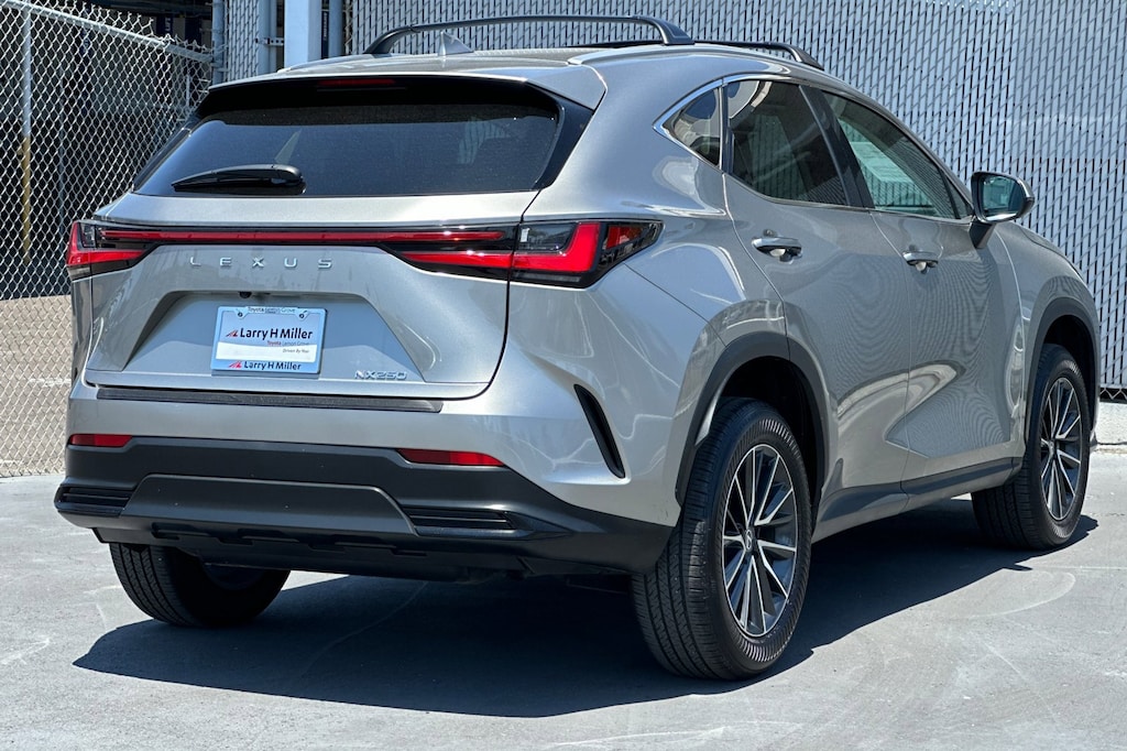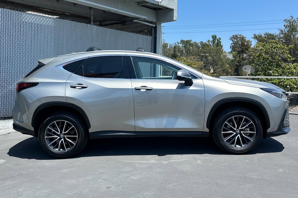 This 2024 Atomic Silver Lexus NX 250 Base FWD is well equipped and includes these features and benefits: Power Tilt & Slide Moonroof/Sunroof, 10 Speakers, 18 Wheels, 4-Wheel Disc Brakes, ABS brakes, Air Conditioning, Alloy wheels, AM/FM radio: SiriusXM, Anti-whiplash front head restraints, Auto High-beam Headlights, Auto-dimming door mirrors, Auto-dimming Rear-View mirror, Automatic temperature control, Axle Ratio: 3.417, Brake assist, Bumpers: body-color, Delay-off headlights, Driver door bin, Driver vanity mirror, Dual front impact airbags, Dual front side impact airbags, Electronic Stability Control, Emergency communication system: Safety Connect (up to 10-year trial subscription included), Exterior Parking Camera Rear, Four wheel independent suspension, Front anti-roll bar, Front Bucket Seats, Front Center Armrest, Front dual zone A/C, Front fog lights, Front reading lights, Fully automatic headlights, Garage door transmitter: HomeLink, Heated door mirrors, Heated Front Bucket Seats, Heated front seats, Illuminated entry, Knee airbag, Leather Shift Knob, Leather steering wheel, Low tire pressure warning, Navigation system: Drive Connect Cloud Navigation (subscription required), NuLuxe Seat Trim, Occupant sensing airbag, Outside temperature display, Overhead airbag, Overhead console, Panic alarm, Passenger door bin, Passenger vanity mirror, Power door mirrors, Power driver seat, Power passenger seat, Power steering, Power windows, Radio data system, Radio: 10-Speaker Sound System, Rear anti-roll bar, Rear reading lights, Rear seat center armrest, Rear window defroster, Rear window wiper, Remote keyless entry, Security system, Speed control, Speed-sensing steering, Split folding rear seat, Spoiler, Steering wheel mounted audio controls, Tachometer, Telescoping steering wheel, Tilt steering wheel, Traction control, Trip computer, Turn signal indicator mirrors, Variably intermittent wipers, and Wireless Apple CarPlay/Wireless Android Auto.