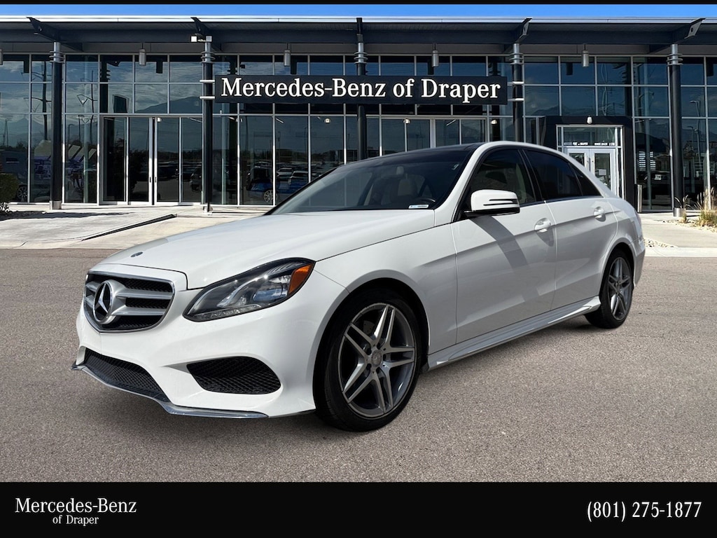 Mercedes-Benz of Draper proudly offers this 2014 Iridium Silver Metallic Mercedes-Benz E 350 AWD . It is well equipped and includes these features and benefits: 4MATIC®, 4-Wheel Disc Brakes, 8 Speakers, ABS brakes, Air Conditioning, Alloy wheels, AM/FM radio, Anti-whiplash front head restraints, Auto tilt-away steering wheel, Auto-dimming door mirrors, Auto-dimming Rear-View mirror, Automatic temperature control, Bodyside moldings, Brake assist, Bumpers: body-color, CD player, Delay-off headlights, Driver door bin, Driver vanity mirror, Dual front impact airbags, Dual front side impact airbags, DVD-Audio, Electronic Stability Control, Emergency communication system: mbrace2, Four wheel independent suspension, Front anti-roll bar, Front Bucket Seats, Front Center Armrest, Front dual zone A/C, Front reading lights, Fully automatic headlights, Garage door transmitter: Homelink, Genuine wood console insert, Genuine wood dashboard insert, Genuine wood door panel insert, Head restraints memory, Heated door mirrors, Illuminated entry, Knee airbag, Leather Shift Knob, Leather steering wheel, Low tire pressure warning, MB-Tex Upholstery, Memory seat, Occupant sensing airbag, Outside temperature display, Overhead airbag, Overhead console, Panic alarm, Passenger door bin, Passenger vanity mirror, Power adjustable front head restraints, Power Adjustable Front Seats, Power adjustable rear head restraints, Power door mirrors, Power driver seat, Power moonroof, Power passenger seat, Power steering, Power windows, Premium audio system: COMAND®, Radio data system, Radio: COMAND® AM/FM/WB/In-Dash DVD/CD Player, Rain sensing wipers, Rear anti-roll bar, Rear fog lights, Rear reading lights, Rear seat center armrest, Rear window defroster, Remote keyless entry, Security system, Speed control, Speed-sensing steering, Steering wheel memory, Steering wheel mounted audio controls, Tachometer, Telescoping steering wheel, Tilt steering wheel, Traction control, Trip computer, Turn signal indicator mirrors, Variably intermittent wipers, Weather band radio, and Wheels: 17 5-Spoke Wheels. Burmester is a registered trademark of Burmester Audiosysteme GmbH, Berlin, Germany. Bluetooth is a registered Mark of Bluetooth SIG, Inc.