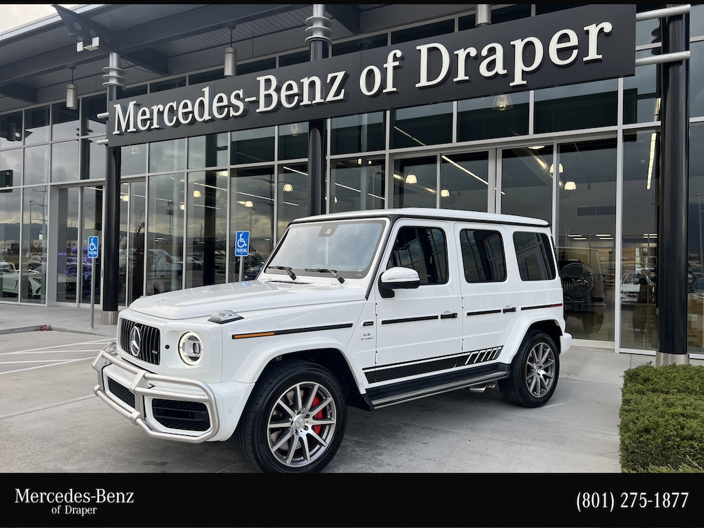 Mercedes-Benz of Draper proudly offers this 2019 White Mercedes-Benz G 63 AMG® AWD . It is well equipped and includes these features and benefits: 15 Speakers, 4-Wheel Disc Brakes, ABS brakes, Adaptive suspension, Air Conditioning, Alloy wheels, AM/FM radio: SiriusXM, Apple CarPlay®/Android Auto®, Auto High-beam Headlights, Auto tilt-away steering wheel, Auto-dimming door mirrors, Auto-dimming Rear-View mirror, Automatic temperature control, Axle Ratio: TBD, Bodyside moldings, Brake assist, Bumpers: body-color, Child-Seat-Sensing Airbag, Compass, Delay-off headlights, designo® Nappa Leather Upholstery, Driver door bin, Driver vanity mirror, Dual front impact airbags, Dual front side impact airbags, Electronic Stability Control, Emergency communication system: eCall Emergency System, Front anti-roll bar, Front Bucket Seats, Front Center Armrest, Front dual zone A/C, Front reading lights, Front wheel independent suspension, Garage door transmitter: Homelink, Genuine wood console insert, Genuine wood dashboard insert, Genuine wood door panel insert, Head restraints memory, Headlight cleaning, Heated door mirrors, Heated front seats, Heated rear seats, Illuminated entry, Knee airbag, Low tire pressure warning, Memory seat, Navigation System, Occupant sensing airbag, Outside temperature display, Overhead airbag, Overhead console, Panic alarm, Passenger door bin, Passenger vanity mirror, Power adjustable front head restraints, Power door mirrors, Power driver seat, Power Heated Front Seats, Power moonroof, Power passenger seat, Power steering, Power windows, Radio data system, Radio: COMAND® w/Navigation, Rain sensing wipers, Rear air conditioning, Rear anti-roll bar, Rear fog lights, Rear reading lights, Rear seat center armrest, Rear side impact airbag, Rear window defroster, Rear window wiper, Remote keyless entry, Security system, Speed control, Speed-sensing steering, Split folding rear seat, Sport steering wheel, Steering wheel memory, Steering wheel mounted audio controls, Tachometer, Telescoping steering wheel, Tilt steering wheel, Traction control, Trip computer, Turn signal indicator mirrors, Variably intermittent wipers, and Wheels: 20 AMG® 10-Spoke Alloy w/Grey Accents. Burmester is a registered trademark of Burmester Audiosysteme GmbH, Berlin, Germany. Bluetooth is a registered Mark of Bluetooth SIG, Inc.