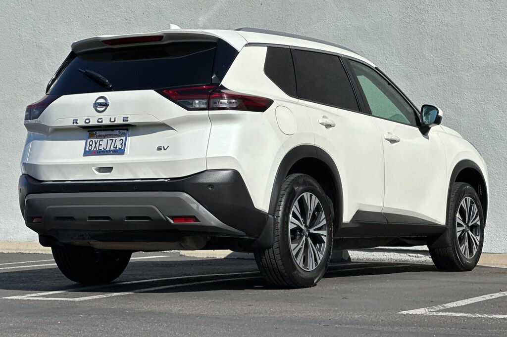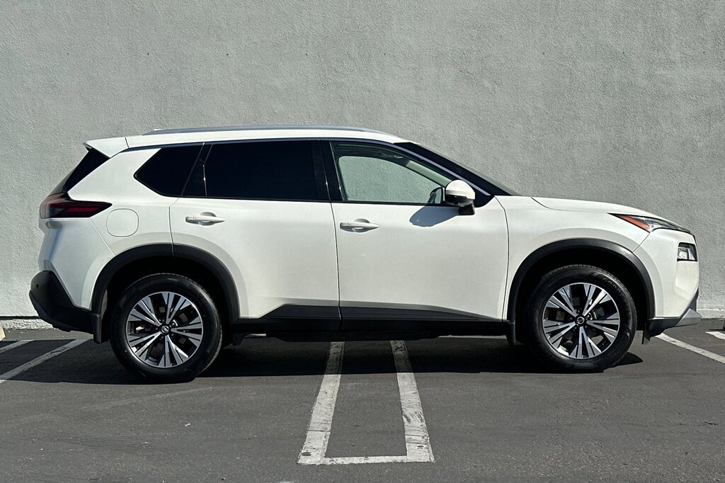 This 2021 Pearl White Tricoat Nissan Rogue SV FWD is well equipped and includes these features and benefits: Premium Package (Heated Driver & Front Passenger Seats, Heated Leather-Wrapped Steering Wheel, Leatherette Seat Trim, Power Liftgate, Power Panoramic Moonroof, Roof Rails, and Second Row Sunshades), 18 Aluminum Alloy Wheels, 4-Wheel Disc Brakes, 5.604 Axle Ratio, 6 Speakers, ABS brakes, Air Conditioning, Alloy wheels, AM/FM Radio, AM/FM radio, Auto High-beam Headlights, Automatic temperature control, Black Splash Guards (Set of 4), Brake assist, Bumpers: body-color, Chrome Rear Bumper Protector, Cloth Seat Trim, Delay-off headlights, Driver door bin, Driver vanity mirror, Dual front impact airbags, Dual front side impact airbags, Electronic Stability Control, Emergency communication system: NissanConnect Services, First Aid Kit, Floor Mats w/1-Piece Cargo Area Protector, Four wheel independent suspension, Front anti-roll bar, Front Bucket Seats, Front Center Armrest, Front dual zone A/C, Front reading lights, Fully automatic headlights, Heated door mirrors, Illuminated entry, Knee airbag, Low tire pressure warning, NissanConnect featuring Apple CarPlay and Android Auto, Occupant sensing airbag, Outside temperature display, Overhead airbag, Overhead console, Panic alarm, Passenger door bin, Passenger vanity mirror, Power door mirrors, Power driver seat, Power steering, Power windows, Radio data system, Rear anti-roll bar, Rear Parking Sensors, Rear seat center armrest, Rear side impact airbag, Rear window defroster, Rear window wiper, Remote keyless entry, Security system, Speed control, Speed-Sensitive Wipers, Split folding rear seat, Spoiler, Steering wheel mounted audio controls, Tachometer, Telescoping steering wheel, Tilt steering wheel, Traction control, Trip computer, Turn signal indicator mirrors, and Variably intermittent wipers.