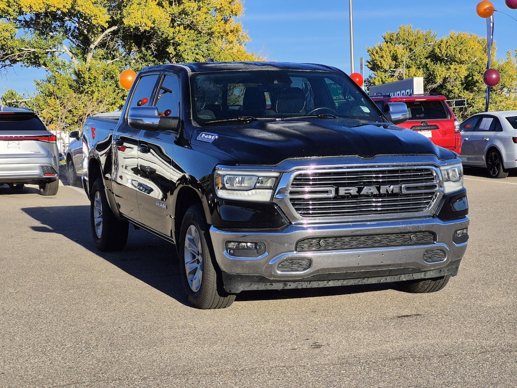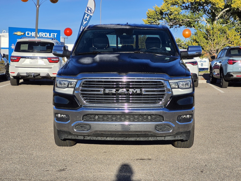 Priced below KBB Fair Purchase Price! Diamond Black Crystal Pearlcoat This 1500 Laramie is nicely equipped with Bed Utility Group (MOPAR 4 Adjustable Cargo Tie-Down Hooks, MOPAR Spray In Bedliner, and Pick-Up Box Lighting), Laramie Level B Equipment Group (12 Touchscreen Display, 2nd Row In Floor Storage Bins, 4G LTE Wi-Fi Hot Spot, Apple CarPlay, Auto High Beam Headlamp Control, Blind Spot & Cross Path Detection, Connected Travel & Traffic Services, Connectivity - US/Canada, Disassociated Touchscreen Display, Electric Shift-On-Demand Transfer Case, Foam Bottle Insert (Door Trim Panel), For Details, Visit DriveUconnect.com, For More Info, Call 800-643-2112, Front Door Accent Lighting, Front LED Fog Lamps, Global Telematics Box Module (TBM), Google Android Auto, GPS Antenna Input, GPS Navigation, harman/kardon 19 Speaker Premium Sound, HD Radio, Integrated Center Stack Radio, Integrated Voice Command w/Bluetooth, LED Reflector Headlamps, Radio: Uconnect 5 Nav w/12.0 Display, Rain Sensitive Windshield Wipers, Rear Door Accent Lighting, Rear Power Sliding Window, Rear Underseat Compartment Storage, Rear Window Defroster, Remote Tailgate Release, SiriusXM Radio Service, SiriusXM w/360L, and USB Host Flip), Quick Order Package 27H Laramie, #1 Seat Foam Cushion, 10 Speakers, 26 Gal. Fuel Tank (Replace 23 Gal.), 3 Rear Seat Head Restraints, 3.21 Rear Axle Ratio, 4 Way Front Headrests, 4-Wheel Disc Brakes, 48V Belt Starter Generator, ABS brakes, Adjustable pedals, Air Conditioning, Alloy wheels, AM/FM radio: SiriusXM with 360L, Apple CarPlay/Android Auto, Audio memory, Auto-dimming door mirrors, Auto-Dimming Exterior Driver Mirror, Auto-dimming Rear-View mirror, Automatic temperature control, Brake assist, Bumpers: chrome, Chrome Exterior Mirrors, Compass, Convex Wide-Angle Exterior Mirror Insert, Delay-off headlights, Driver door bin, Driver Seat Memory, Driver vanity mirror, Dual front impact airbags, Dual front side impact airbags, Electronic Stability Control, Exterior Mirrors Courtesy Lamps, Exterior Mirrors w/Heating Element, Exterior Mirrors w/Memory, Exterior Mirrors w/Supplemental Signals, Front anti-roll bar, Front Center Armrest w/Storage, Front dual zone A/C, Front fog lights, Front reading lights, Front Seat Back Map Pockets, Front wheel independent suspension, Fully automatic headlights, Garage door transmitter, Heated door mirrors, Heated Front Seats, Heated front seats, Heated Steering Wheel, Heated steering wheel, Illuminated entry, Leather steering wheel, Leather Trim 40/20/40 Bench Seat, Low tire pressure warning, Manufacturer's Statement of Origin, Memory seat, MOPAR Front & Rear Rubber Floor Mats, Multi-Function Tailgate, Navigation System, Occupant sensing airbag, Outside temperature display, Overhead airbag, Overhead console, Panic alarm, ParkSense Front/Rear Park Assist w/Stop (DISC), ParkView Rear Back-Up Camera, Passenger door bin, Passenger vanity mirror, Pedal memory, Power 2-Way Driver Lumbar Adjust, Power 2-Way Passenger Lumbar Adjust, Power 8-Way Driver & Passenger Seats, Power door mirrors, Power driver seat, Power passenger seat, Power steering, Power windows, Power-Folding Mirrors, Radio data system, Radio: Uconnect 5 Nav w/8.4 Display, RAM Grille Badge - Chrome, Rear 60/40 Folding Seat, Rear anti-roll bar, Rear seat center armrest, Rear step bumper, Remote keyless entry, Security system, Speed control, Split folding rear seat, Steering wheel mounted audio controls, Tachometer, Tailgate Ajar Warning Lamp, Telescoping steering wheel, Tilt steering wheel, Traction control, Trip computer, Turn signal indicator mirrors, Variably intermittent wipers, Ventilated Front Seats, Ventilated front seats, Voltmeter, and Wheels: 18 x 8 Aluminum Base PainteD.