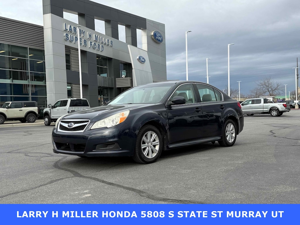 Larry H. Miller Honda Murray offers this 2012 Deep Indigo Pearl Subaru Legacy 2.5i AWD It is loaded with many standard and optional features including: All-Weather Package (Heated Exterior Mirrors, Heated Front Seats, and Windshield Wiper De-Icer), 16 x 6.5 Aluminum Alloy w/Silver Finish Wheels, 4-Wheel Disc Brakes, 6 Speakers, ABS brakes, Air Conditioning, Alloy wheels, AM/FM radio, AM/FM Stereo w/Single-Disc CD Player, Anti-whiplash front head restraints, Brake assist, Bumpers: body-color, CD player, Cloth Upholstery, Driver door bin, Driver vanity mirror, Dual front impact airbags, Dual front side impact airbags, Electronic Stability Control, Four wheel independent suspension, Front anti-roll bar, Front Bucket Seats, Front Center Armrest w/Storage, Front reading lights, Fully automatic headlights, harman/kardon Audio System, Illuminated entry, Low tire pressure warning, Occupant sensing airbag, Outside temperature display, Overhead airbag, Overhead console, Panic alarm, Passenger door bin, Passenger vanity mirror, Power door mirrors, Power driver seat, Power steering, Power windows, Radio data system, Rear anti-roll bar, Rear seat center armrest, Rear window defroster, Remote keyless entry, Security system, Speed control, Speed-sensing steering, Split folding rear seat, Steering wheel mounted audio controls, Steering-Wheel Paddle-Shift Control Switches, Tachometer, Telescoping steering wheel, Tilt steering wheel, Traction control, Trip computer, and Variably intermittent wipers.