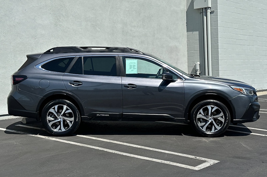 This 2022 Magnetite Gray Metallic Subaru Outback Limited AWD is well equipped and includes these features and benefits: 12 Speakers, 3.90 Axle Ratio, 4-Wheel Disc Brakes, ABS brakes, Air Conditioning, Alloy wheels, AM/FM radio: SiriusXM, Auto High-beam Headlights, Auto-dimming Rear-View mirror, Automatic temperature control, Brake assist, Bumpers: body-color, Compass, Driver door bin, Driver vanity mirror, Dual front impact airbags, Dual front side impact airbags, Electronic Stability Control, Emergency communication system: STARLINK Safety and Security (Subscription Required), Exterior Parking Camera Rear, Four wheel independent suspension, Front anti-roll bar, Front Bucket Seats, Front Center Armrest w/Storage, Front dual zone A/C, Front fog lights, Front reading lights, Fully automatic headlights, Garage door transmitter: HomeLink, harman/kardon® Speakers, Heated door mirrors, Heated Front Bucket Seats, Heated front seats, Heated rear seats, Illuminated entry, Knee airbag, Leather steering wheel, Low tire pressure warning, Memory seat, Occupant sensing airbag, Outside temperature display, Overhead airbag, Overhead console, Panic alarm, Passenger door bin, Passenger vanity mirror, Perforated Leather-Trimmed Upholstery, Power door mirrors, Power driver seat, Power Liftgate, Power passenger seat, Power steering, Power windows, Radio: Subaru STARLINK 11.6 Multimedia Plus Sys, Rear anti-roll bar, Rear seat center armrest, Rear window defroster, Rear window wiper, Remote keyless entry, Roof rack, Security system, Speed control, Speed-sensing steering, Split folding rear seat, Spoiler, STARLINK/Apple CarPlay/Android Auto, Steering wheel mounted audio controls, Steering Wheel Paddle Shift Control Switches, Tachometer, Telescoping steering wheel, Tilt steering wheel, Traction control, Trip computer, Turn signal indicator mirrors, Variably intermittent wipers, and Wheels: 18 x 7J Black Aluminum Alloy.