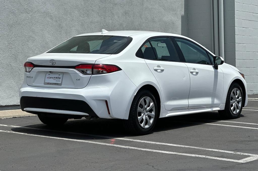 This 2020 White Toyota Corolla LE FWD is well equipped and includes these features and benefits: 4-Wheel Disc Brakes, 6 Speakers, ABS brakes, Air Conditioning, AM/FM radio: SiriusXM, Apple CarPlay, Auto High-beam Headlights, Automatic temperature control, Brake assist, Bumpers: body-color, Delay-off headlights, Driver door bin, Driver vanity mirror, Dual front impact airbags, Dual front side impact airbags, Electronic Stability Control, Emergency communication system: Safety Connect with 3-year trial, Exterior Parking Camera Rear, Four wheel independent suspension, Front anti-roll bar, Front Bucket Seats, Front Center Armrest, Front reading lights, Fully automatic headlights, Illuminated entry, Knee airbag, Low tire pressure warning, Occupant sensing airbag, Outside temperature display, Overhead airbag, Panic alarm, Passenger door bin, Passenger vanity mirror, Power door mirrors, Power steering, Power windows, Premium Fabric Seat Trim, Radio data system, Radio: Audio AM/FM w/Navigation, Rear anti-roll bar, Rear seat center armrest, Rear window defroster, Remote keyless entry, Security system, Speed control, Split folding rear seat, Steering wheel mounted audio controls, Tachometer, Telescoping steering wheel, Tilt steering wheel, Traction control, Trip computer, Variably intermittent wipers, and Wheels: 16 Wide Vent Steel.