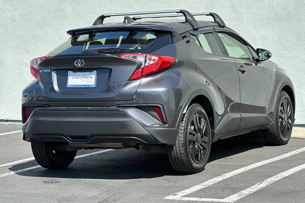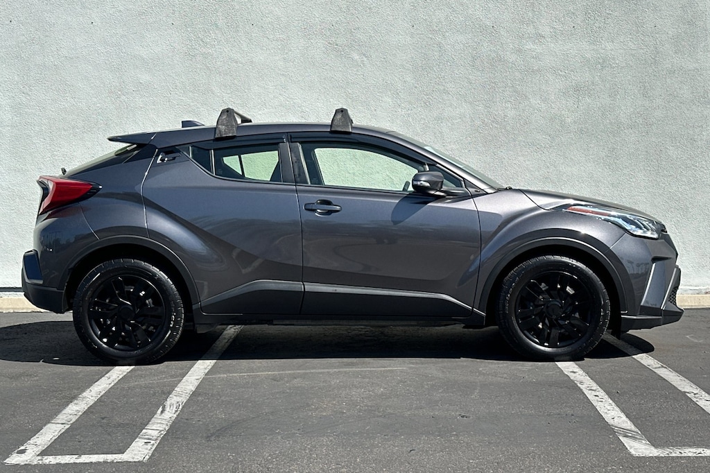 This 2021 Magnetic Gray Metallic Toyota C-HR LE FWD is well equipped and includes these features and benefits: 4-Wheel Disc Brakes, 6 Speakers, ABS brakes, Air Conditioning, AM/FM radio: SiriusXM, Auto High-beam Headlights, Auto-dimming Rear-View mirror, Automatic temperature control, Axle Ratio: TBD, Brake assist, Bumpers: body-color, Delay-off headlights, Driver door bin, Driver vanity mirror, Dual front impact airbags, Dual front side impact airbags, Electronic Stability Control, Emergency communication system: Safety Connect with 1-year trial, Exterior Parking Camera Rear, Fabric Seat Material, Four wheel independent suspension, Front anti-roll bar, Front Bucket Seats, Front Center Armrest, Front dual zone A/C, Front reading lights, Fully automatic headlights, Heated door mirrors, Illuminated entry, Knee airbag, Leather Shift Knob, Low tire pressure warning, Occupant sensing airbag, Outside temperature display, Overhead airbag, Panic alarm, Passenger door bin, Passenger vanity mirror, Power door mirrors, Power steering, Power windows, Radio data system, Radio: AM/FM Stereo w/8 Touch-Screen Display, Rear anti-roll bar, Rear side impact airbag, Rear window defroster, Rear window wiper, Remote keyless entry, Speed control, Speed-sensing steering, Split folding rear seat, Spoiler, Steering wheel mounted audio controls, Tachometer, Telescoping steering wheel, Tilt steering wheel, Traction control, Trip computer, Turn signal indicator mirrors, Variably intermittent wipers, and Wheels: 6.5 x 17 Steel.