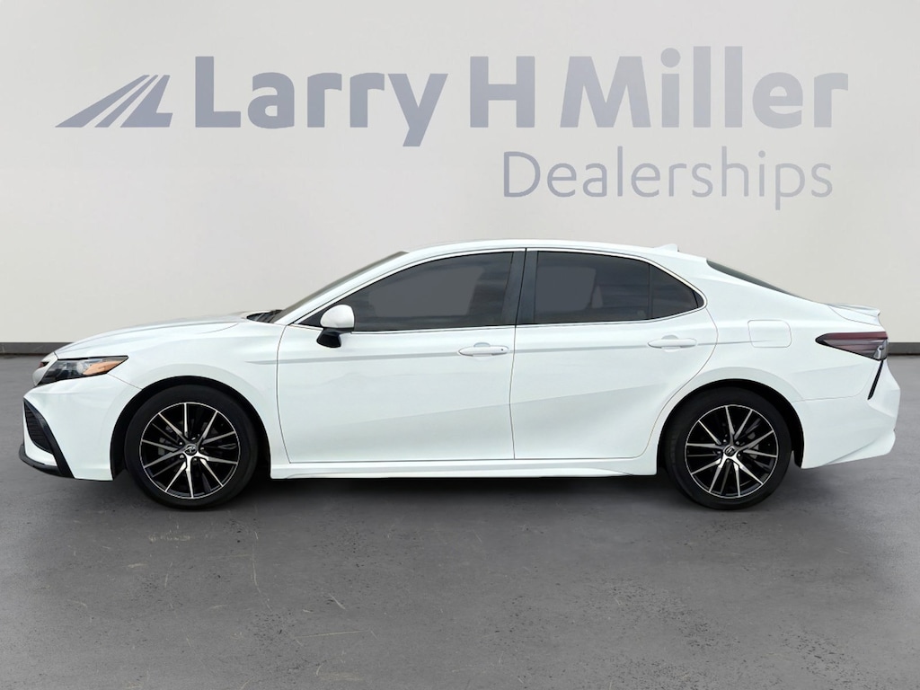 This 2021 Super White Toyota Camry SE FWD is well equipped and includes these features and benefits: Black Cloth, 4-Wheel Disc Brakes, 6 Speakers, ABS brakes, Air Conditioning, Alloy wheels, AM/FM radio: SiriusXM, Apple CarPlay/Android Auto, Auto High-beam Headlights, Automatic temperature control, Brake assist, Bumpers: body-color, Delay-off headlights, Driver door bin, Driver vanity mirror, Dual front impact airbags, Dual front side impact airbags, Electronic Stability Control, Emergency communication system: Safety Connect with 1-year trial, Exterior Parking Camera Rear, Fabric Seat Trim w/Sport SofTex, Four wheel independent suspension, Front anti-roll bar, Front Bucket Seats, Front Center Armrest, Front reading lights, Fully automatic headlights, Illuminated entry, Knee airbag, Low tire pressure warning, Occupant sensing airbag, Outside temperature display, Overhead airbag, Overhead console, Panic alarm, Passenger door bin, Passenger vanity mirror, Power door mirrors, Power driver seat, Power steering, Power windows, Radio data system, Radio: AM/FM Audio System, Rear anti-roll bar, Rear seat center armrest, Rear side impact airbag, Rear window defroster, Remote keyless entry, Security system, Speed control, Speed-sensing steering, Split folding rear seat, Spoiler, Steering wheel mounted audio controls, Tachometer, Telescoping steering wheel, Tilt steering wheel, Traction control, Trip computer, Variably intermittent wipers, and Wheels: 8.0J x 18 Black Machined-Finish Alloy. Black Cloth, 4-Wheel Disc Brakes, 6 Speakers, ABS brakes, Air Conditioning, Alloy wheels, AM/FM radio: SiriusXM, Apple CarPlay/Android Auto, Auto High-beam Headlights, Automatic temperature control, Brake assist, Bumpers: body-color, Delay-off headlights, Driver door bin, Driver vanity mirror, Dual front impact airbags, Dual front side impact airbags, Electronic Stability Control, Emergency communication system: Safety Connect with 1-year trial, Exterior Parking Camera Rear, Fabric Seat Trim w/Sport SofTex, Four wheel independent suspension, Front anti-roll bar, Front Bucket Seats, Front Center Armrest, Front reading lights, Fully automatic headlights, Illuminated entry, Knee airbag, Low tire pressure warning, Occupant sensing airbag, Outside temperature display, Overhead airbag, Overhead console, Panic alarm, Passenger door bin, Passenger vanity mirror, Power door mirrors, Power driver seat, Power steering, Power windows, Radio data system, Radio: AM/FM Audio System, Rear anti-roll bar, Rear seat center armrest, Rear side impact airbag, Rear window defroster, Remote keyless entry, Security system, Speed control, Speed-sensing steering, Split folding rear seat, Spoiler, Steering wheel mounted audio controls, Tachometer, Telescoping steering wheel, Tilt steering wheel, Traction control, Trip computer, Variably intermittent wipers, Wheels: 8.0J x 18 Black Machined-Finish Alloy, Black Cloth.