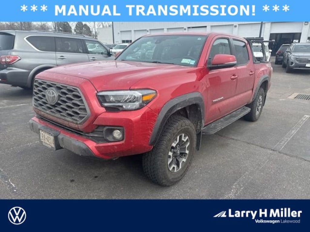 Barcelona Red Metallic 2021 Toyota Tacoma TRD Off-Road V6 4WD 6-Speed Manual 3.5L V6 PDI DOHC 24V LEV3-ULEV70 278hp Local Trade, AWD, 4WD, Apple Carplay / Android Auto, Bluetooth, Backup Camera, Manual Transmission, Tacoma TRD Offroad V6, 4D Double Cab, 3.5L V6 PDI DOHC 24V LEV3-ULEV70 278hp, 6-Speed Manual, 4WD, Barcelona Red Metallic, Black w/Leather Seat Trim, 120V/400W Deck Mounted AC Power, Blind Spot Monitor w/Rear Cross Traffic Alert, Color-Keyed Rear Bumper, Front dual zone A/C, Heated Front Seats, Leather Seat Trim, Power Sliding Rear Window w/Privacy Glass, Power Tilt/Slide Moonroof, Rear Parking Assist Sonar, Technology Package, TRD Premium Off Road Package.